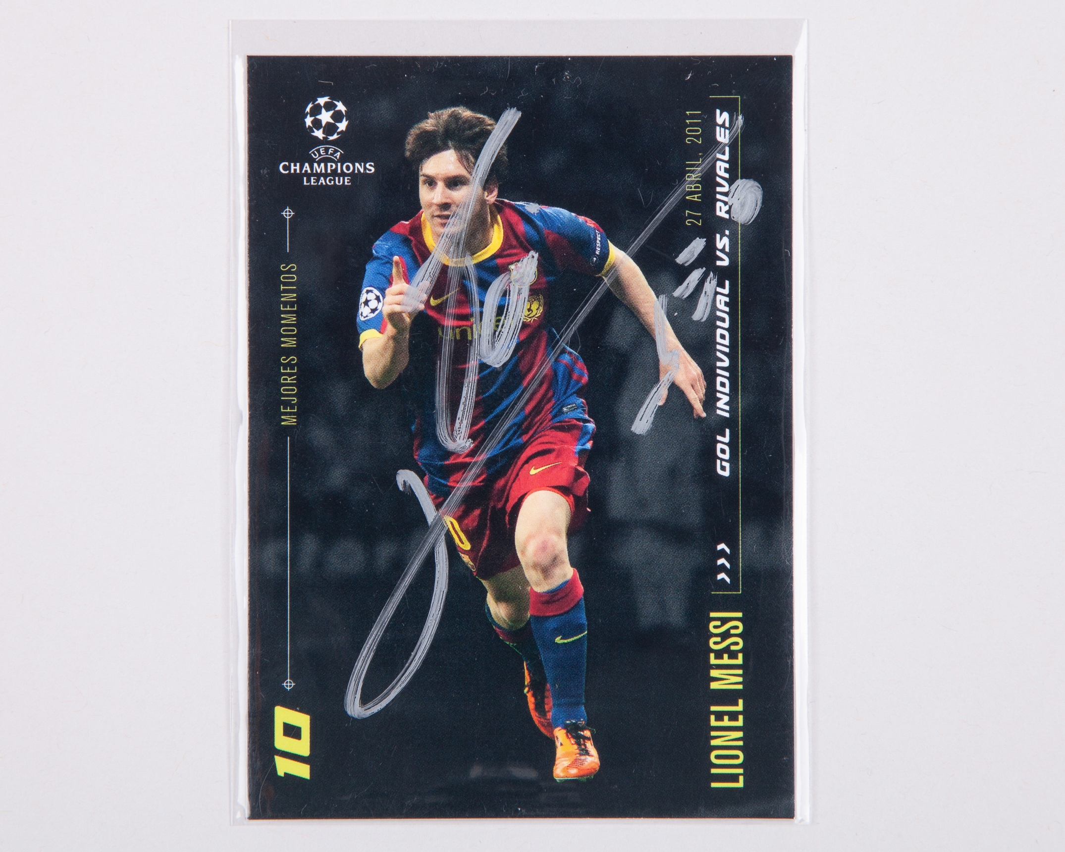 Lionel Messi autographed Barcelona Champions League Topps Mejores Momentos trading card, 27th April 2011