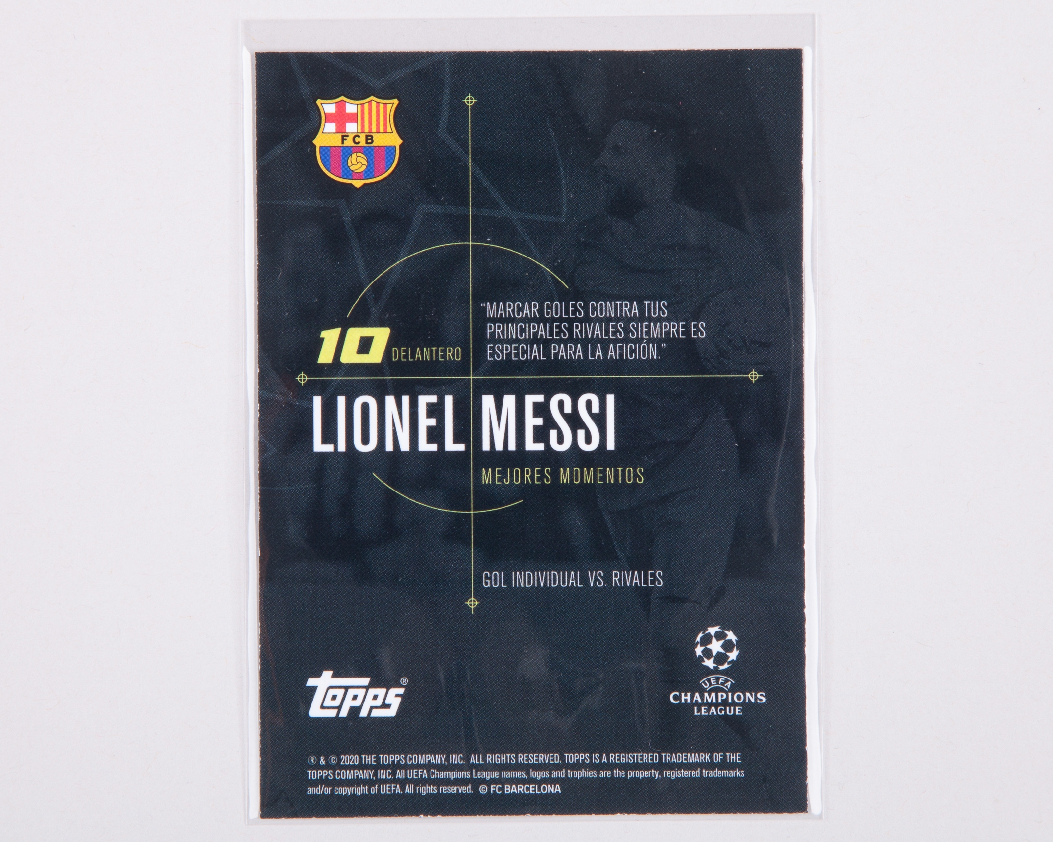 Lionel Messi autographed Barcelona Champions League Topps Mejores Momentos trading card