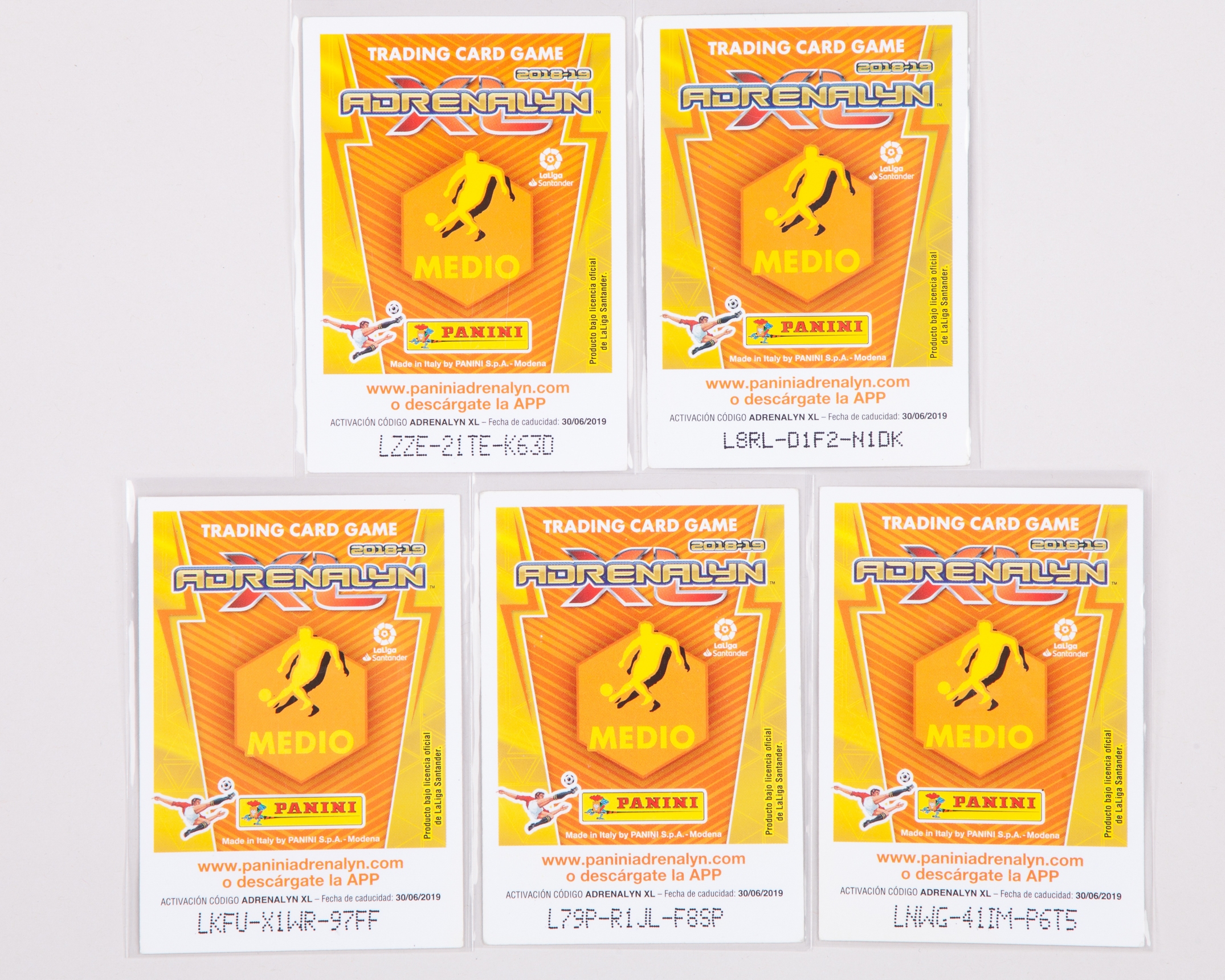Five autographed Barcelona Panini La Liga player trading cards, 2018-19
