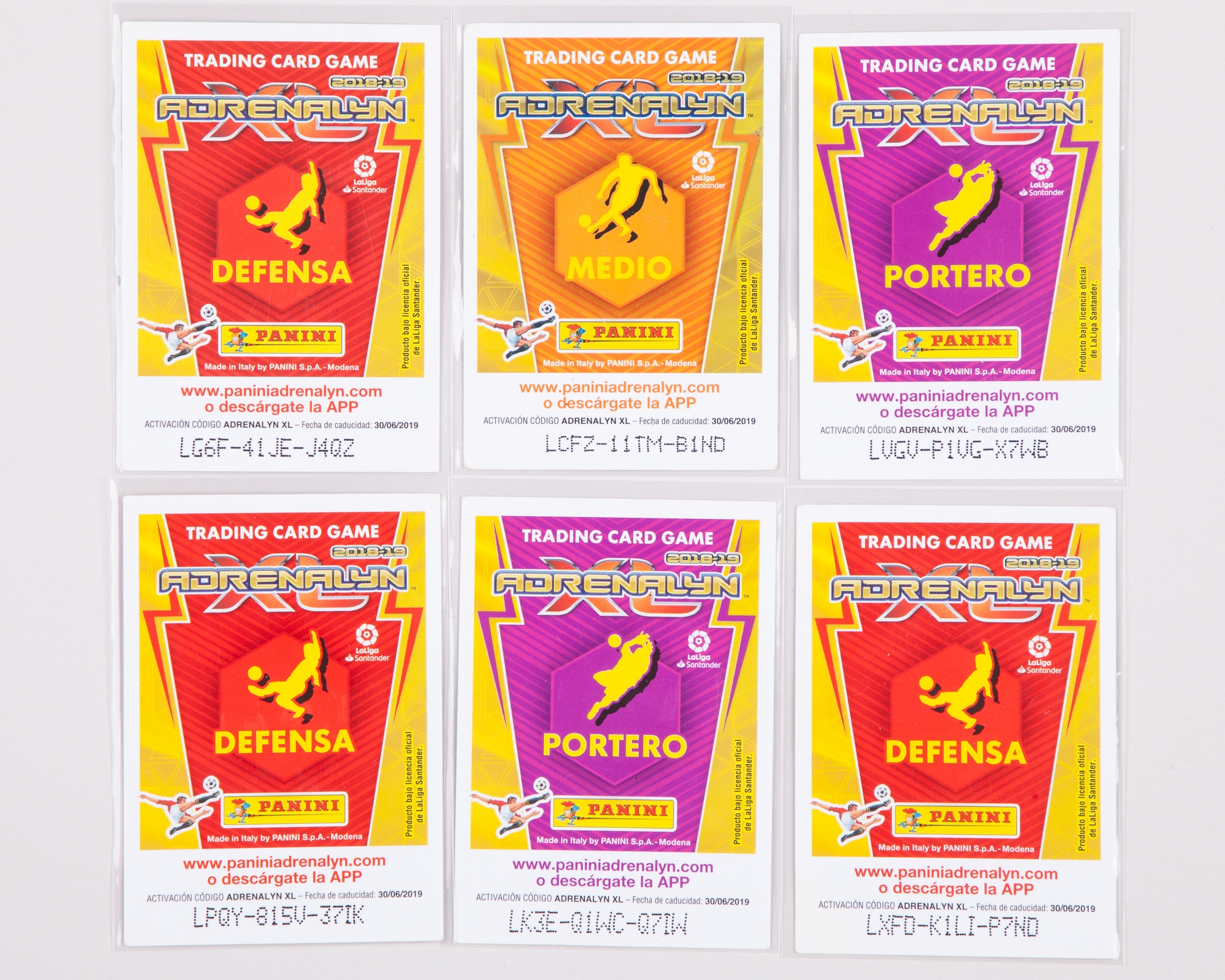Six autographed Barcelona Panini La Liga player trading cards, 2018-19