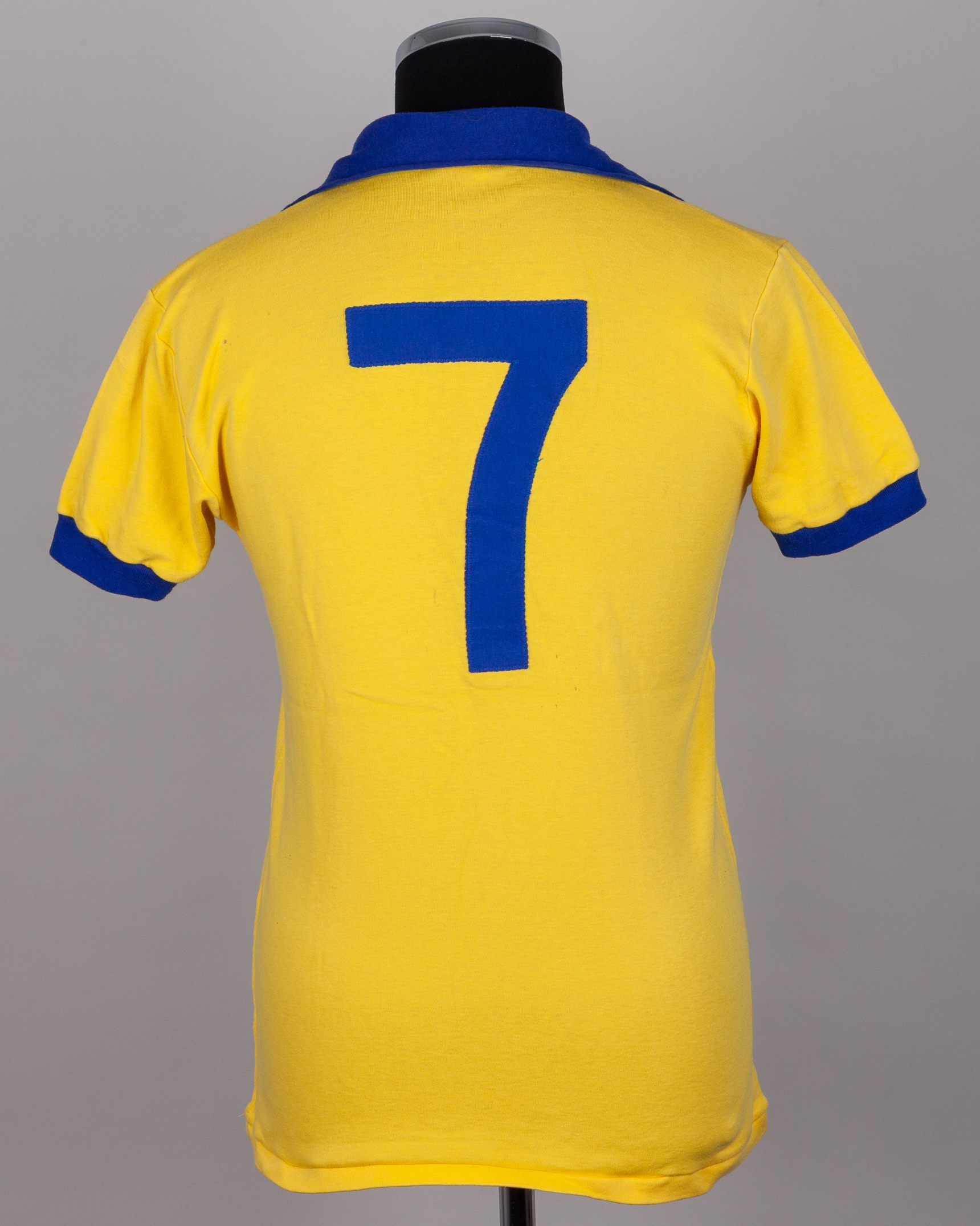 Liam Brady yellow and blue No.7 Arsenal 1980 F.A.Cup Final match worn short-sleeved shirt