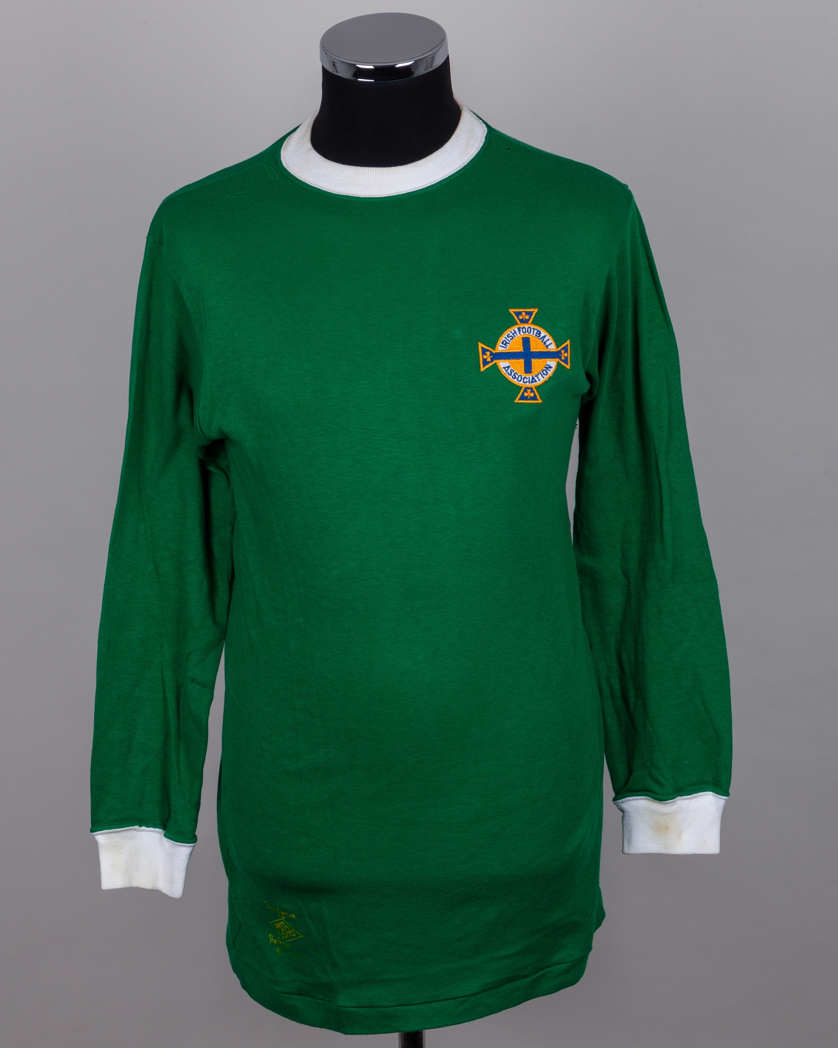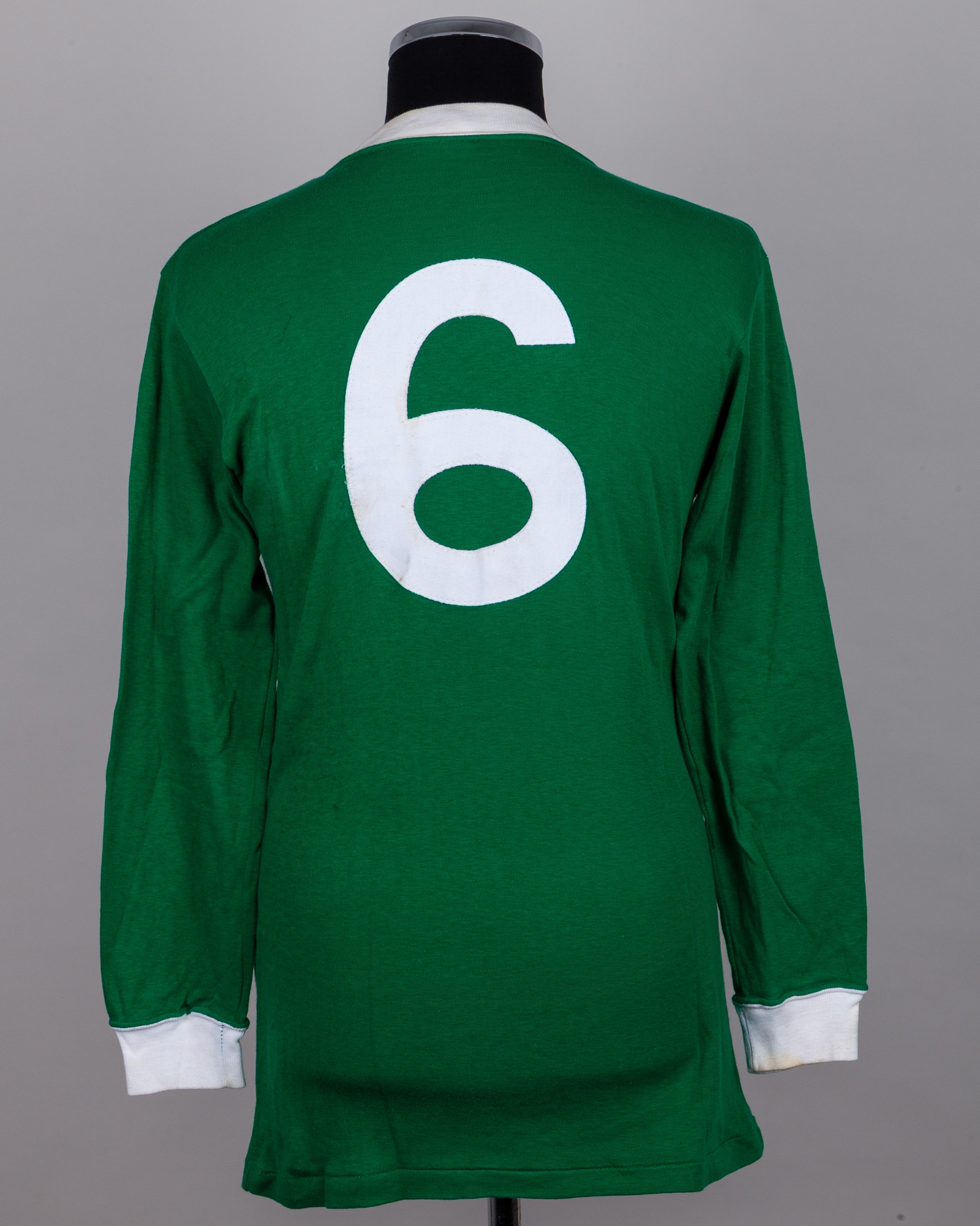 Green and white No.6 Northern Ireland match worn long-sleeved shirt, 1967-69