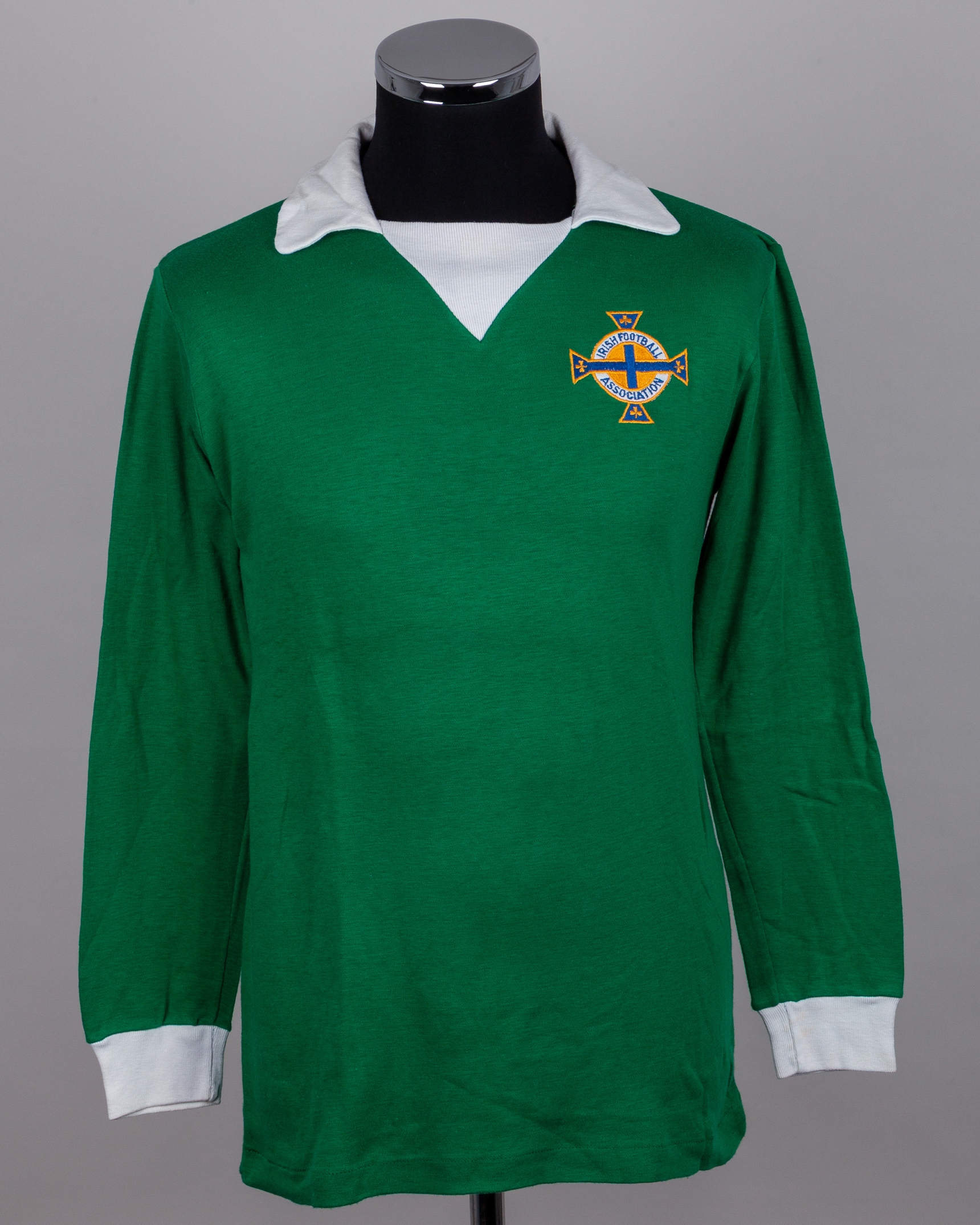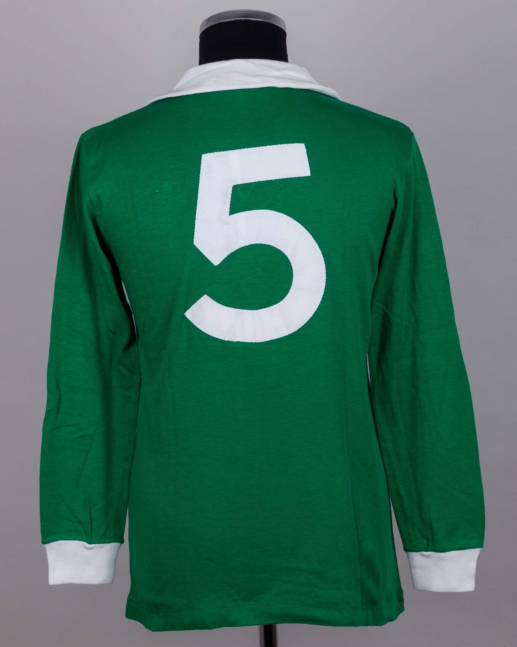 Green and white No.5 Northern Ireland match worn long-sleeved shirt, c.1974
