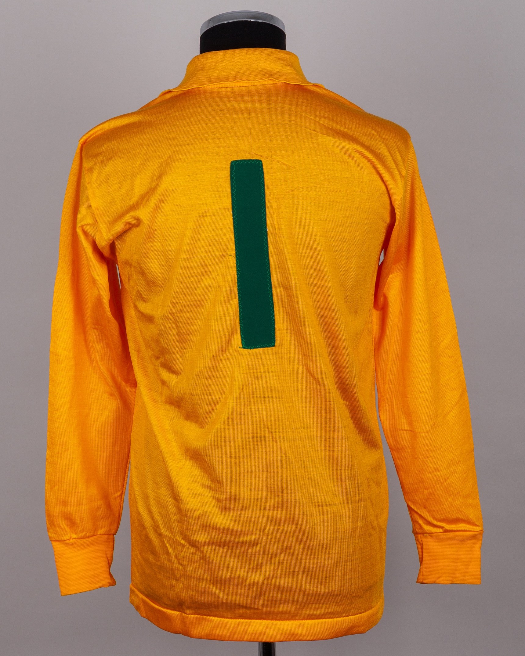 Yellow, No.1 goalkeepers shirt, O'Neills, 42-44in, with v-neck collar, with Pat Jennings Collection autographed COA