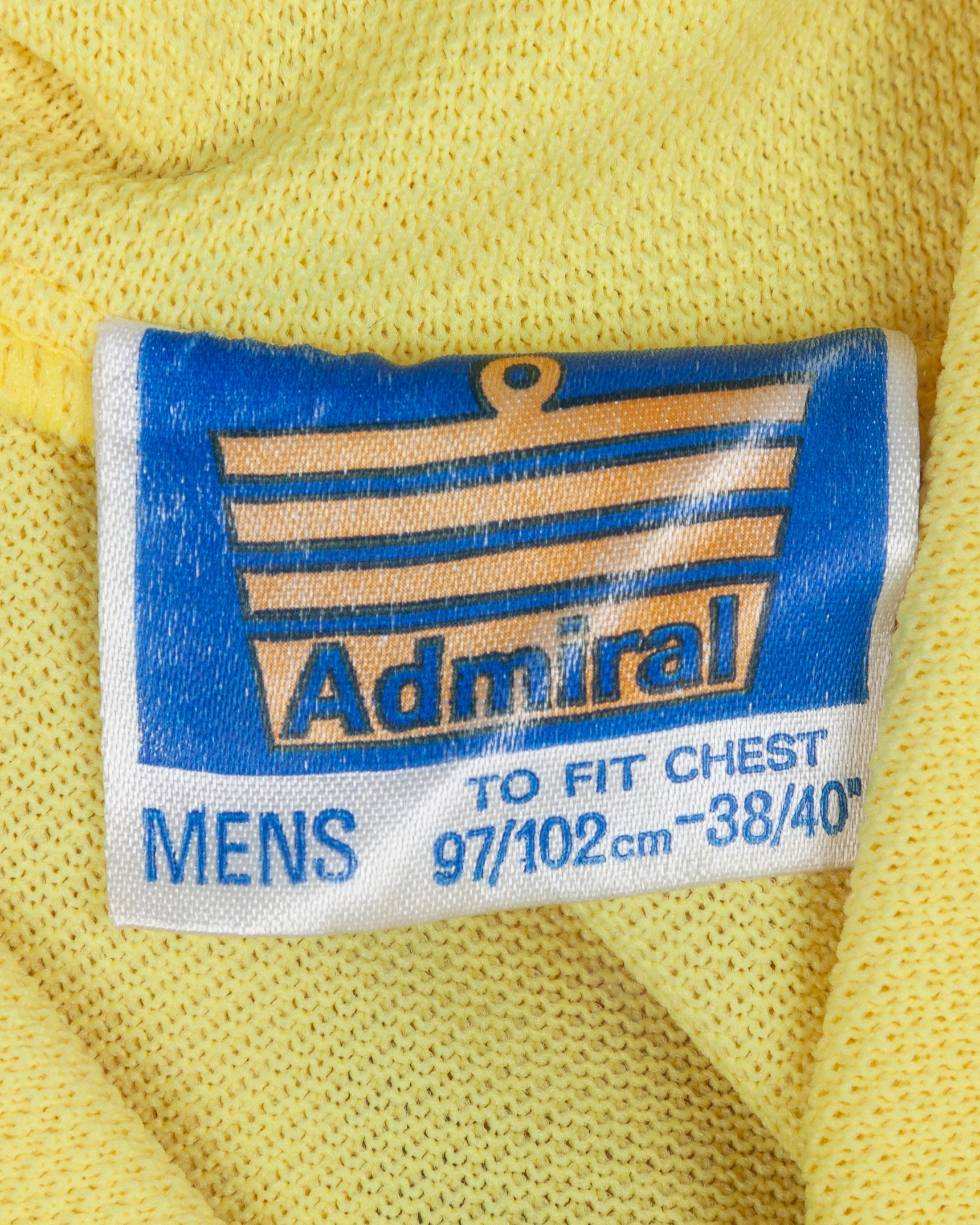Ray Clemence yellow and black No.1 England v. Northern Ireland match worn goalkeepers shirt, 1975, Admiral, 38/40", with button-up collar and embroidered cloth lion badge, with Pat Jennings Collection autographed COA