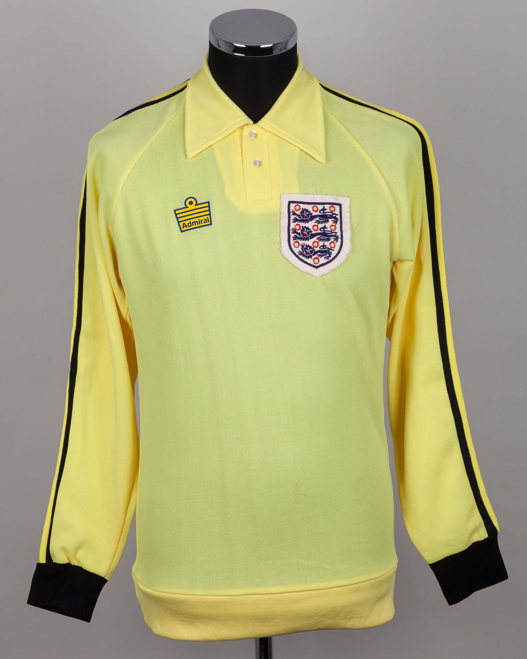 Ray Clemence yellow and black No.1 England v. Northern Ireland goalkeepers shirt, 1975