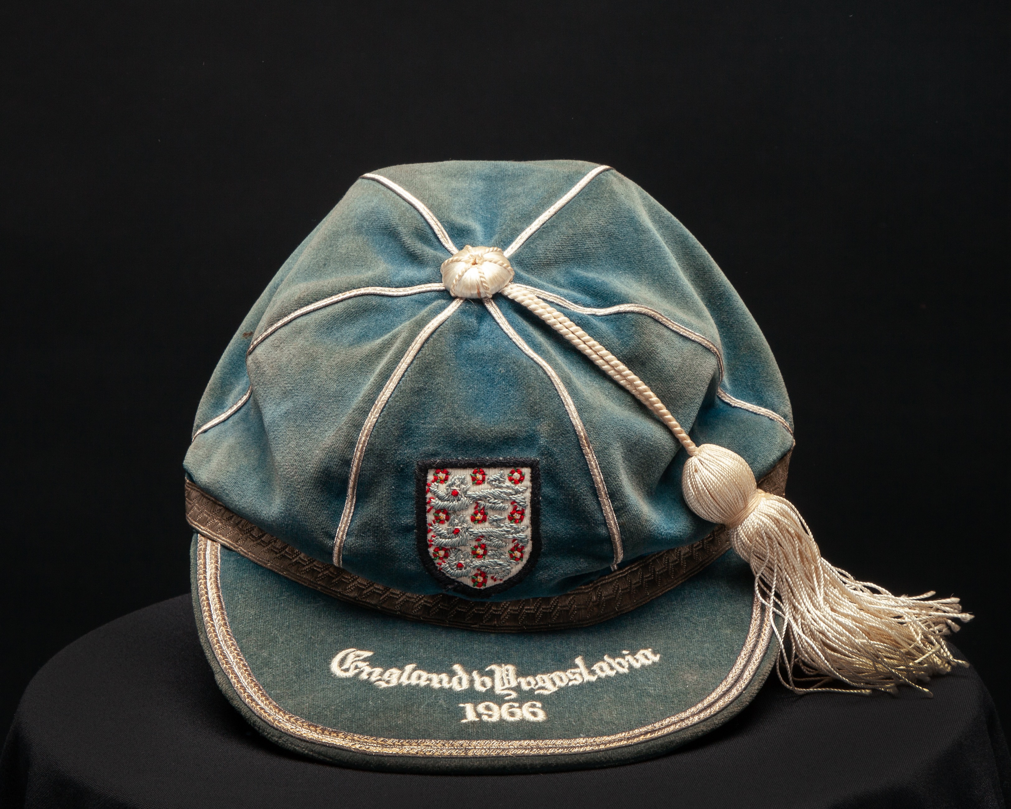 The cap was gained by Pat Jennings as a swap with English Legend and Tottenham team mate Jimmy Greaves. The cap represents Jimmy's 48th appearances, in the pre-1966 world cup friendly match against Yugoslavia played on 4th May 1966 at Wembley, England defeated Yugoslavia 2-0, Greaves scoring the opening goal