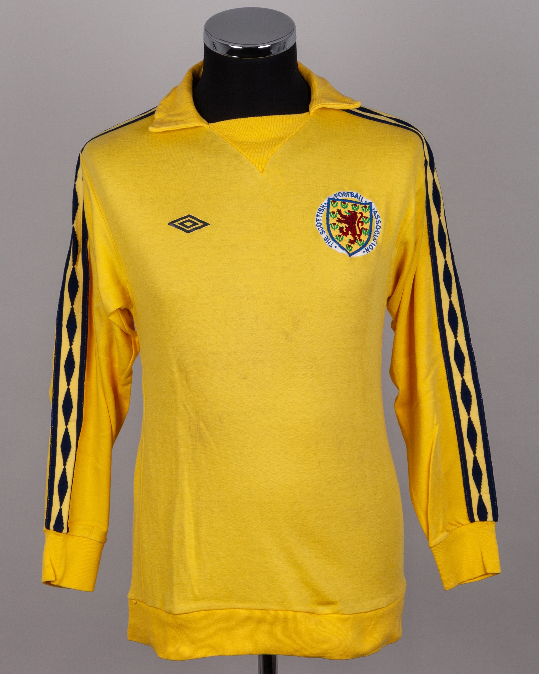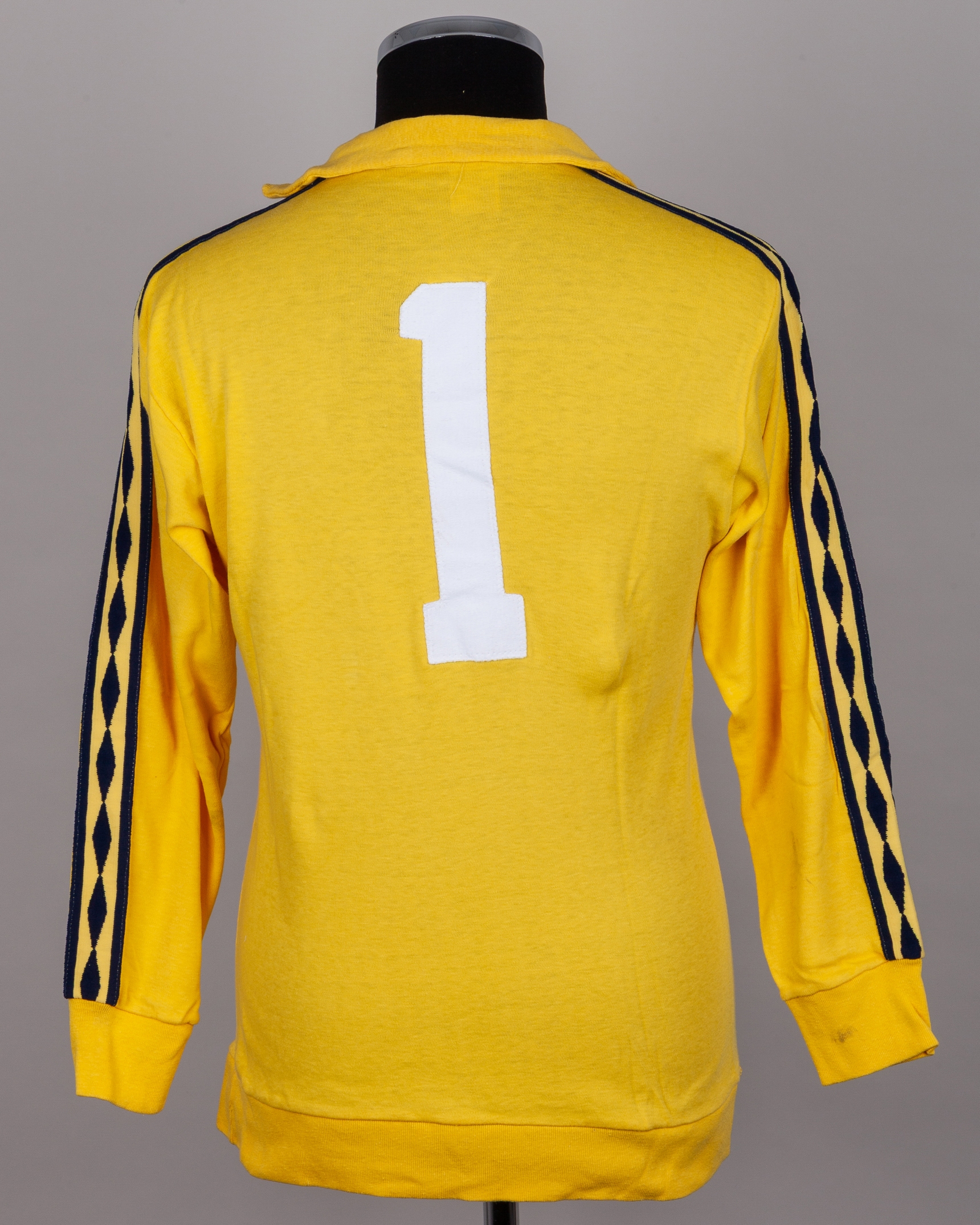 Alan Rough yellow No.1 Scotland v. Northern Ireland match worn goalkeepers shirt, 1976