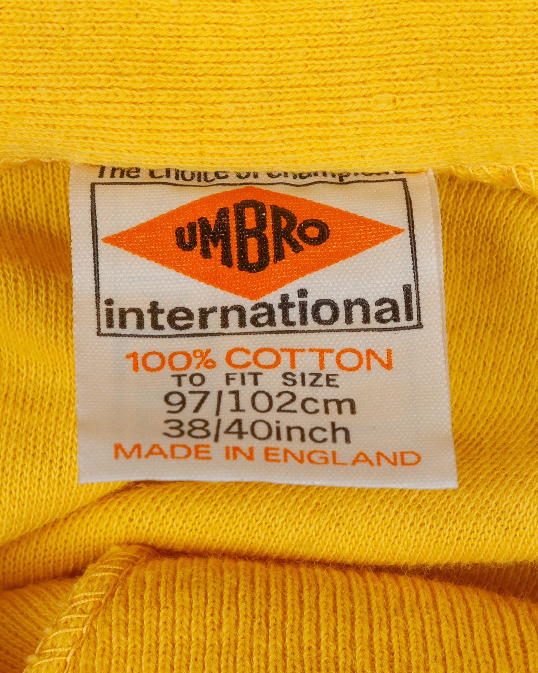 Alan Rough yellow No.1 Scotland v. Northern Ireland match worn goalkeepers shirt, 1976, Umbro, 38/40in, with v-neck collar and embroidered badge inscribed THE SCOTTISH FOOTBALL ASSOCIATION, staining, with Pat Jennings Collection autographed COA
