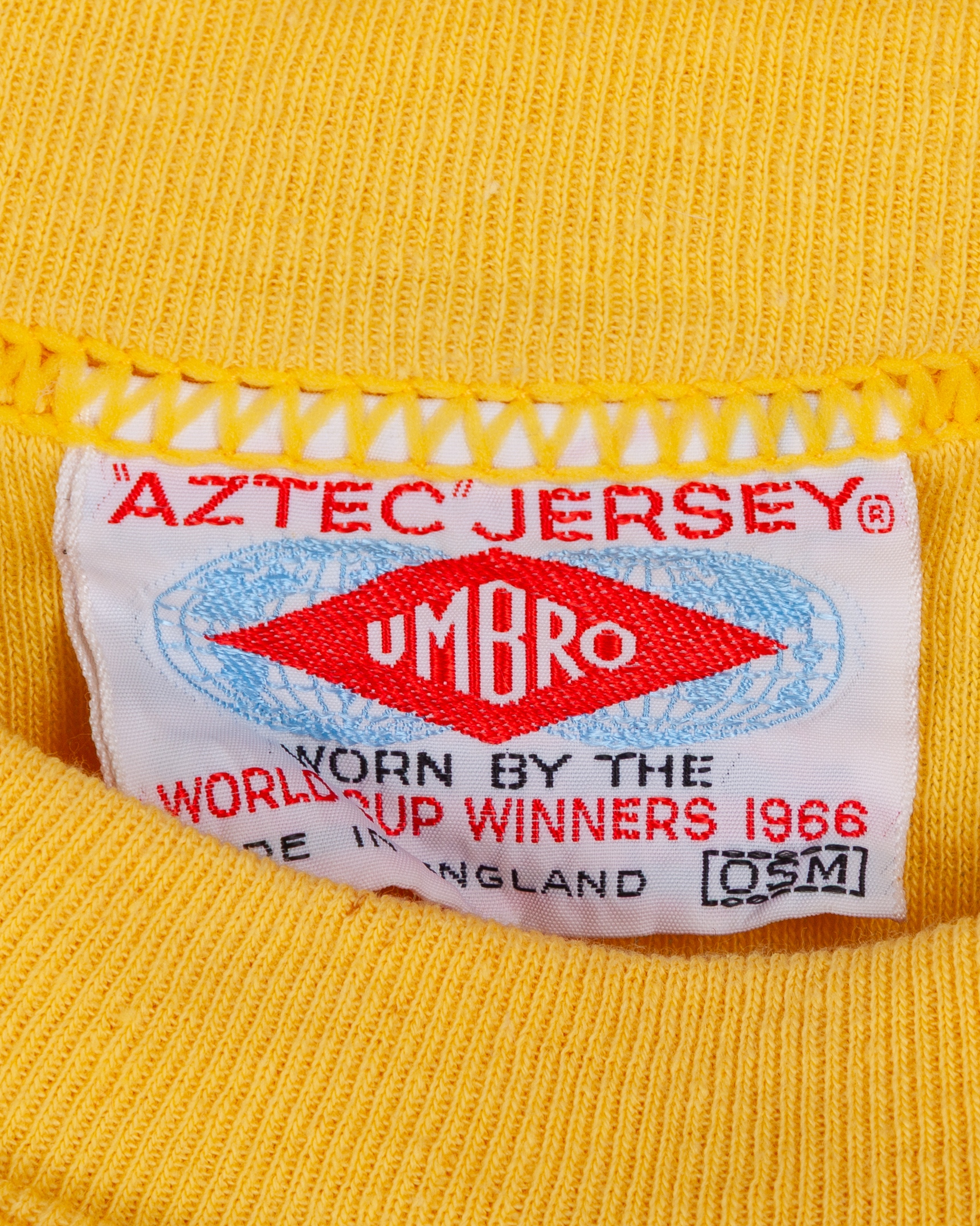 Yellow Wales v. Northern Ireland Amateur match worn goalkeepers shirt, 1969-70, Umbro, OSM, with crew-neck collar and embroidered cloth badge inscribed AMATEUR V IRELAND 1969-70, areas of staining, with Pat Jennings Collection autographed COA