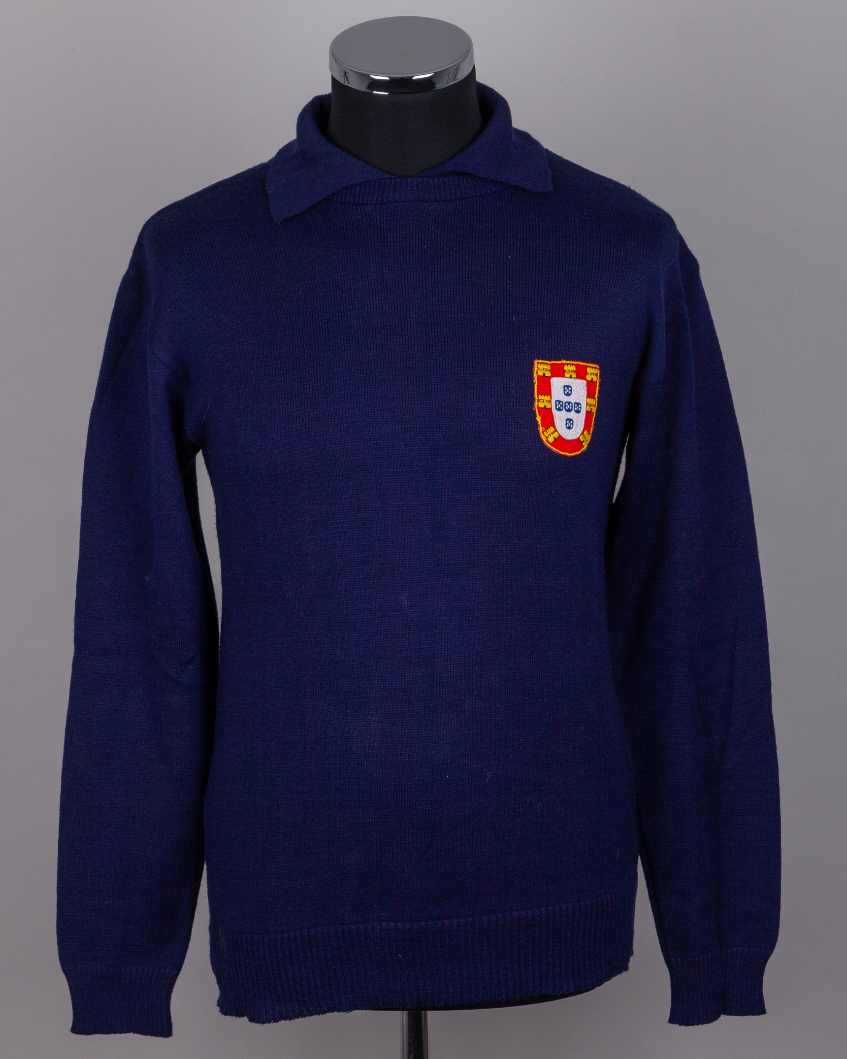 Vitor Damas blue No.1 Portugal match worn goalkeepers shirt, 1973