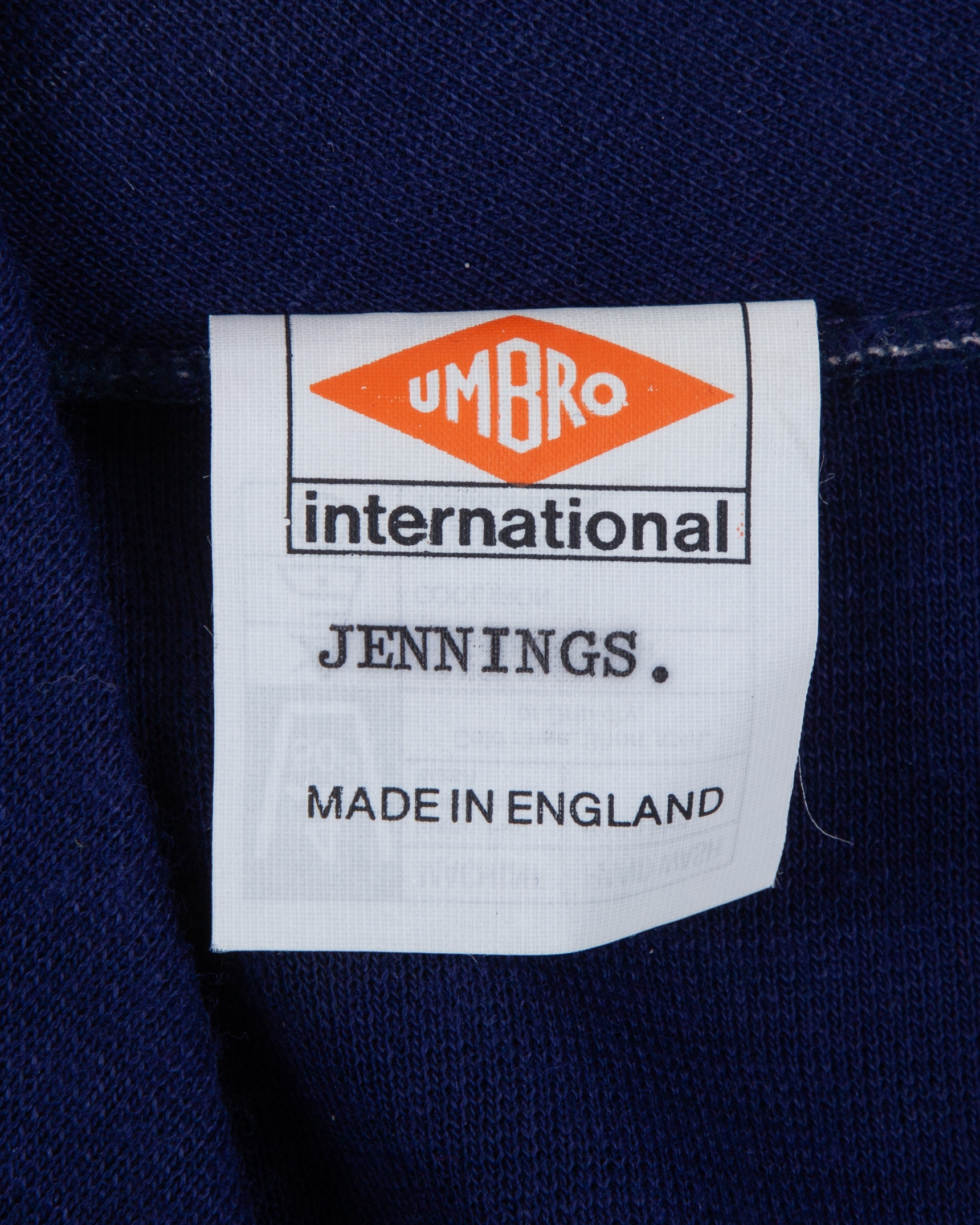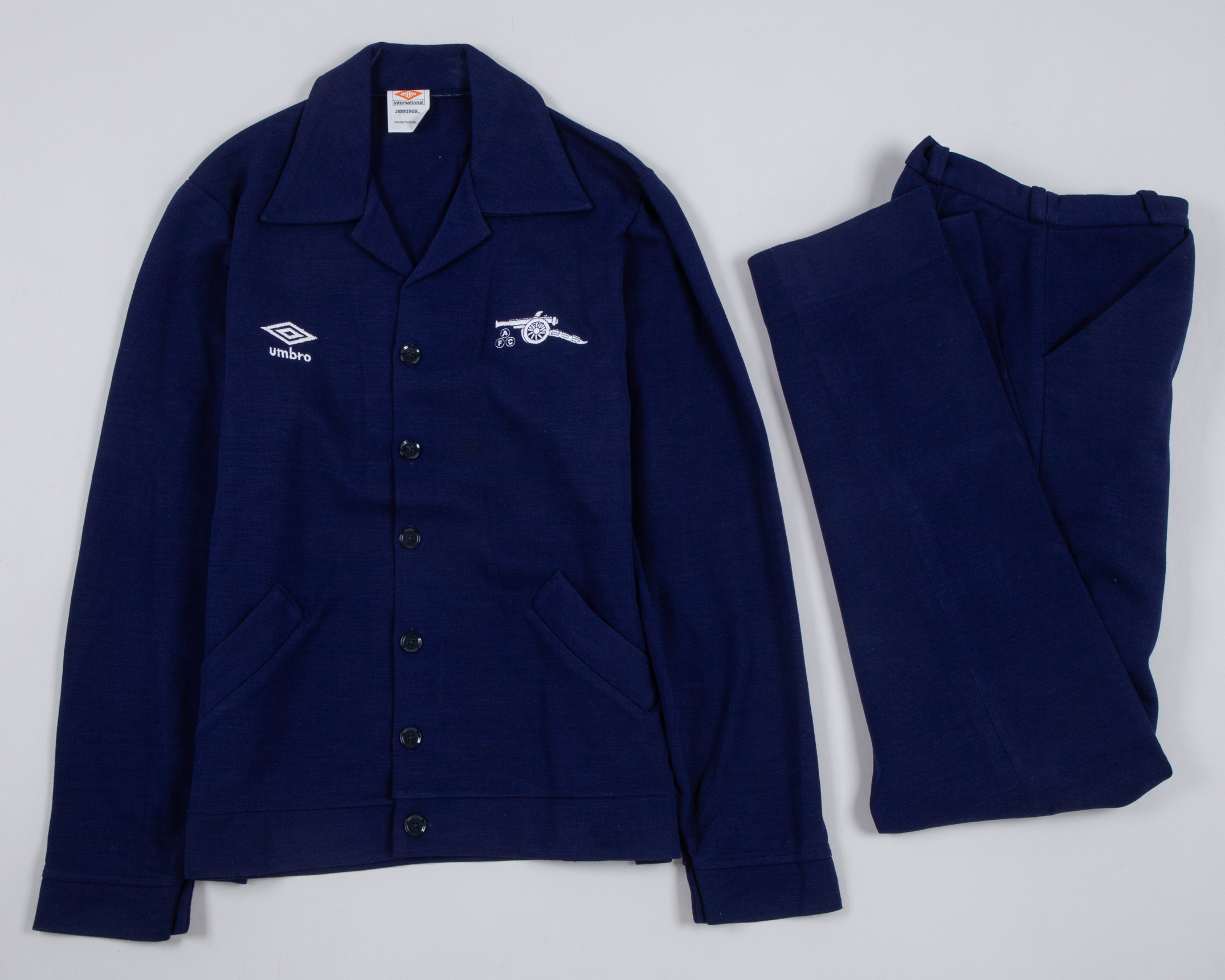 Pat Jennings a blue Arsenal dress tracksuit top and bottoms, 1978-80, Umbro, with button-up front and embroidered badge inscribed AFC, the Umbro collar label typed JENNINGS, with Pat Jennings Collection autographed COA