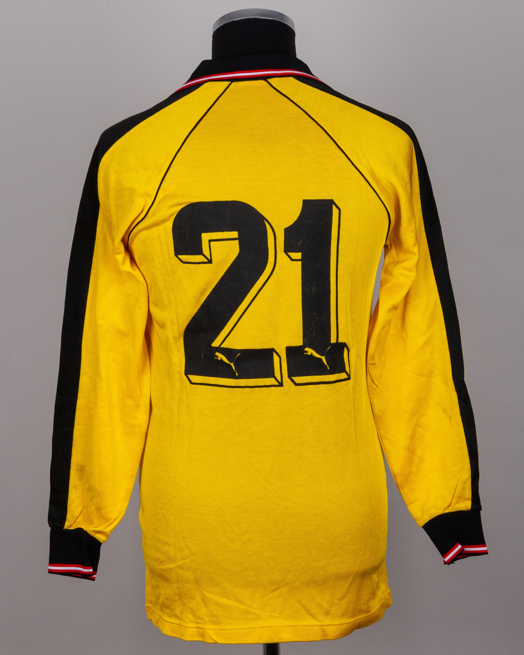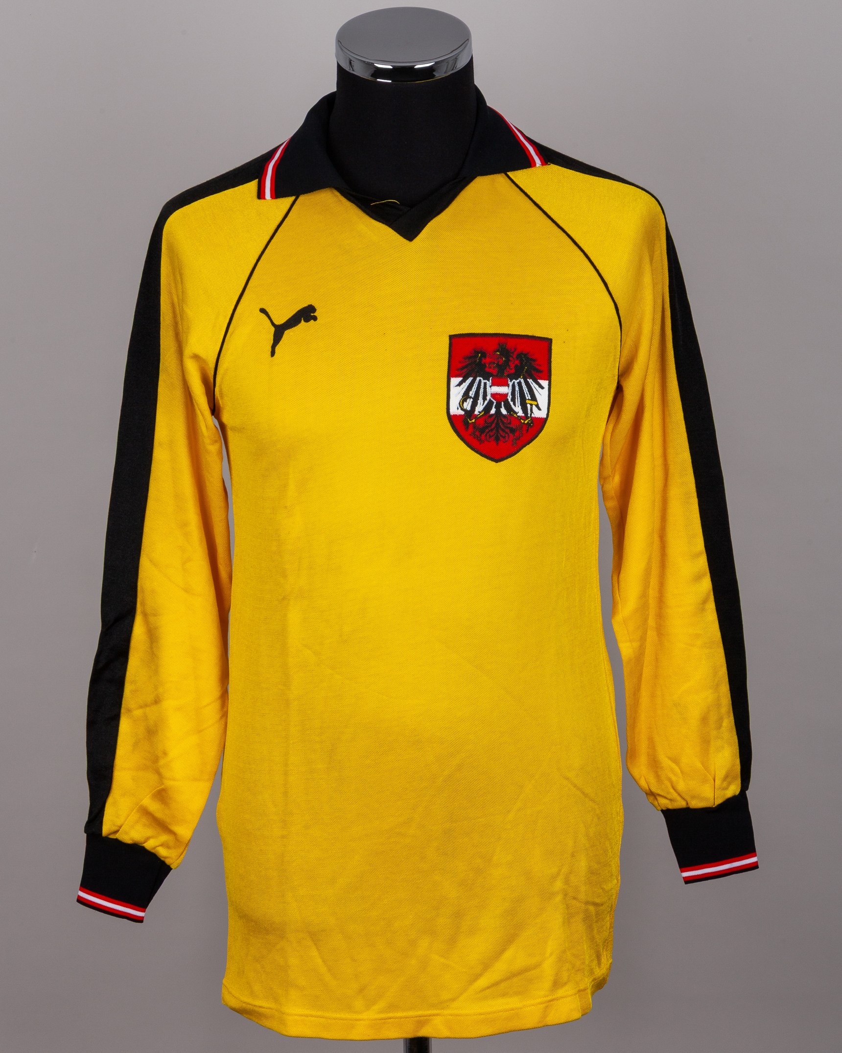 Herbert Feurer yellow and black No.21 Austria match issued goalkeepers shirt, 1982