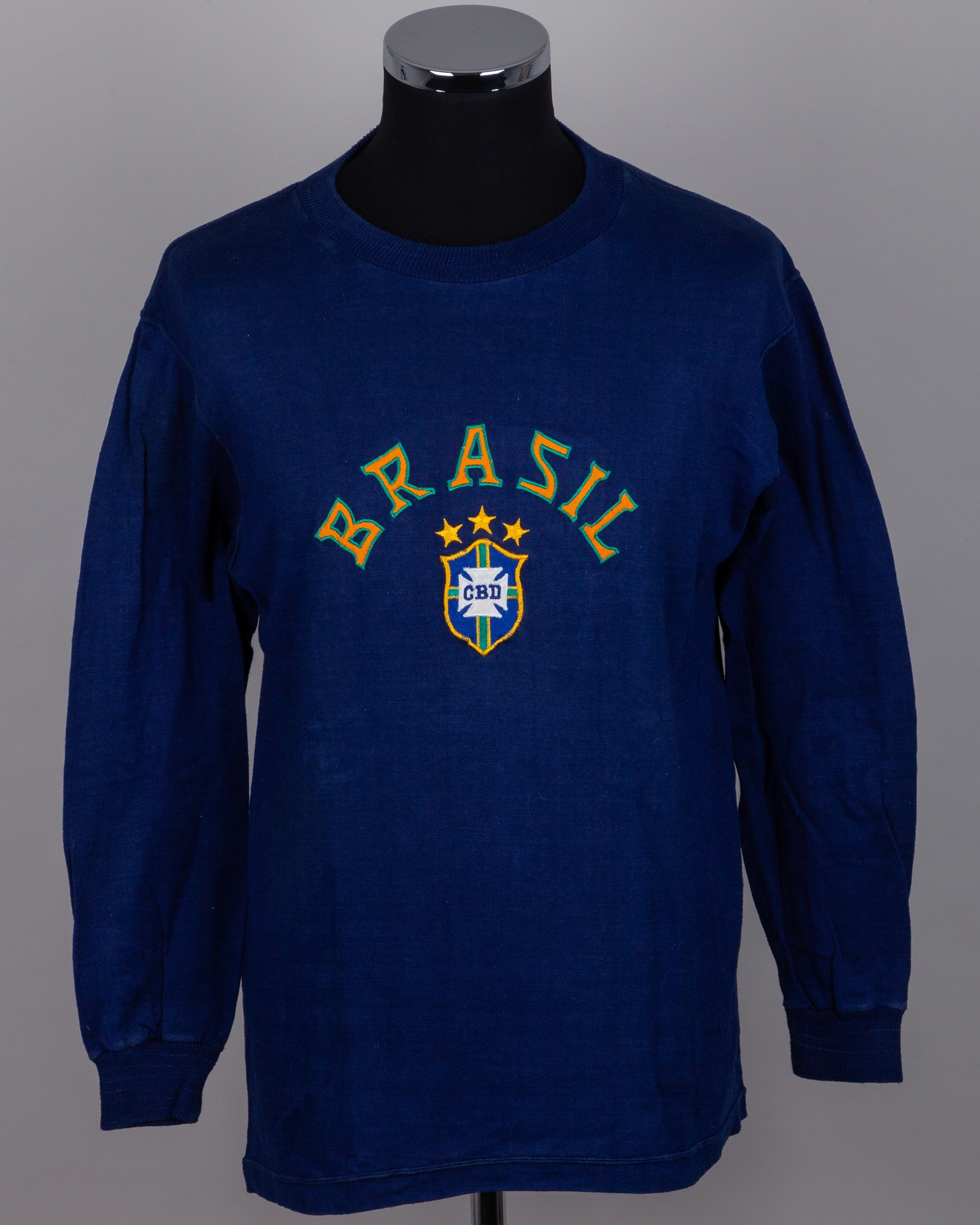 Emerson Leao blue No.1 Brazil v. Shamrock Rovers XI match worn goalkeepers shirt, 1973