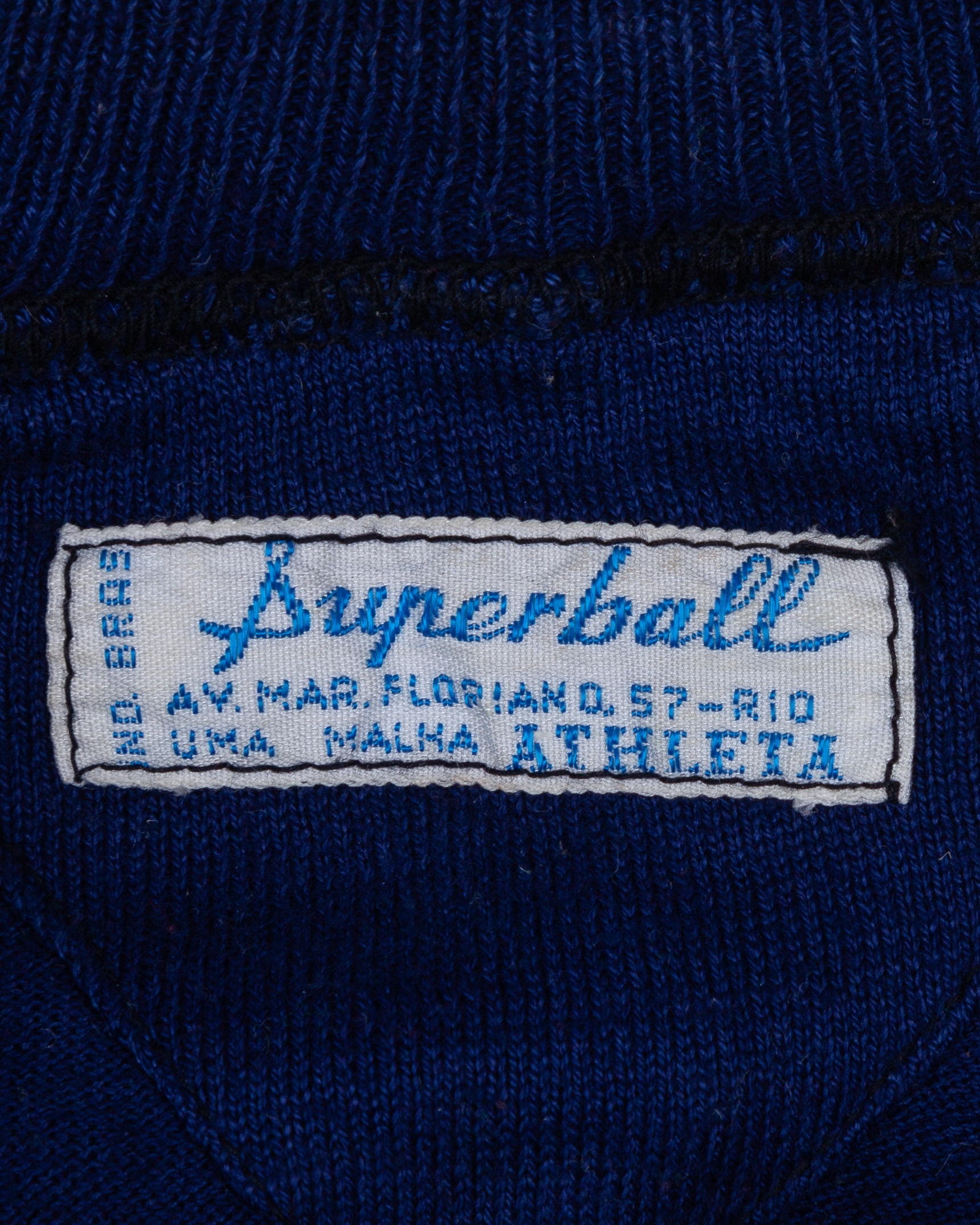 Emerson Leao blue No.1 Brazil v. Shamrock Rovers XI match worn goalkeepers shirt, 1973, Superball Athleta, with crew-neck collar and embroidered badge inscribed BRAZIL CBD, with Pat Jennings Collection autographed COA