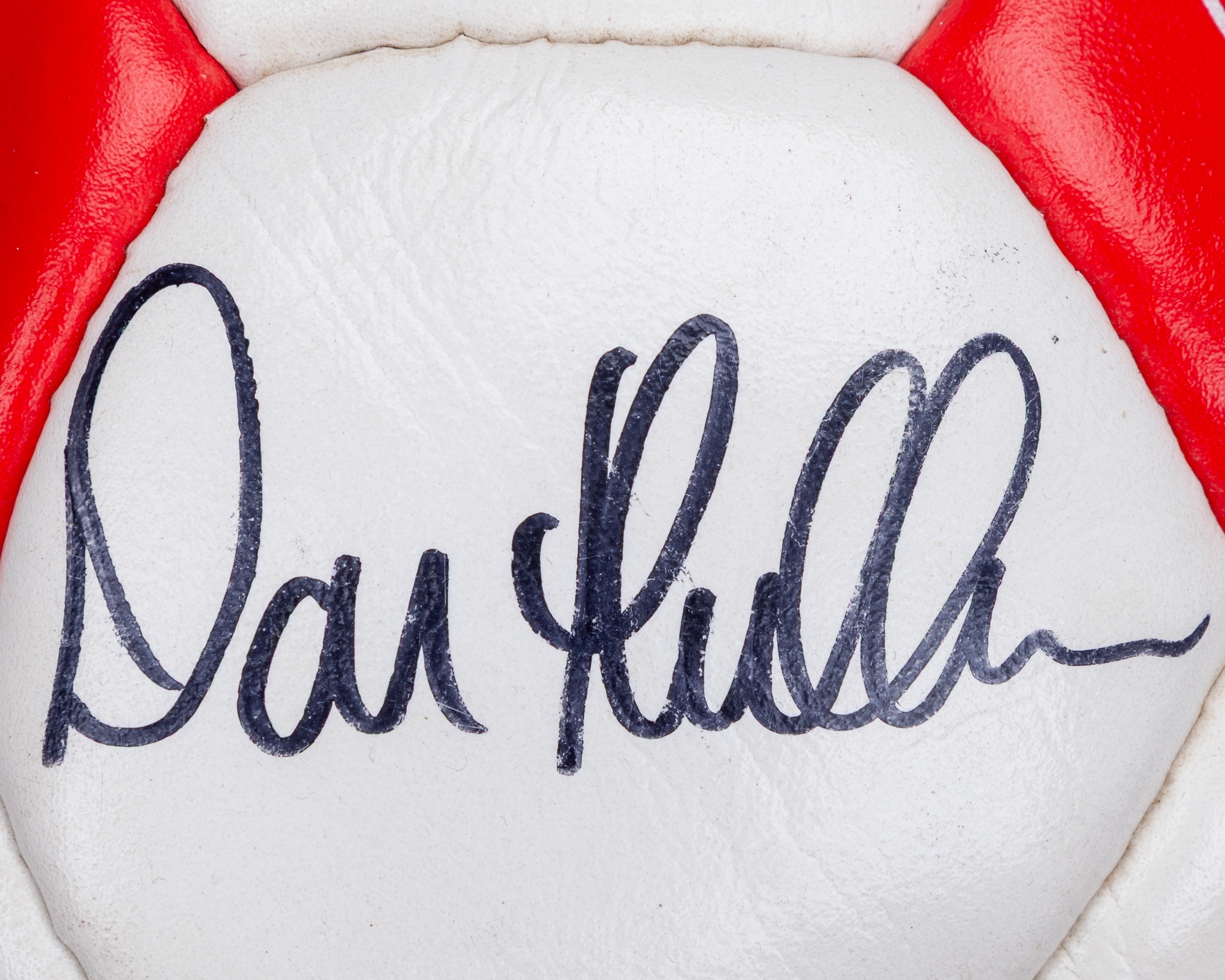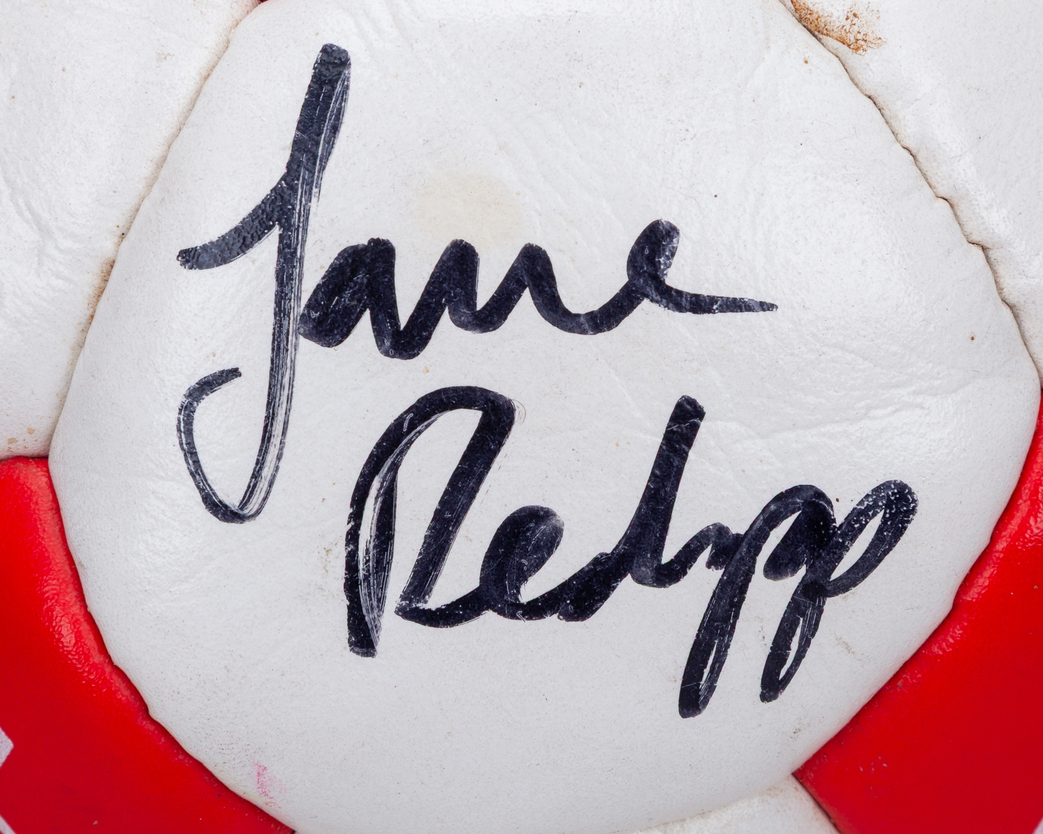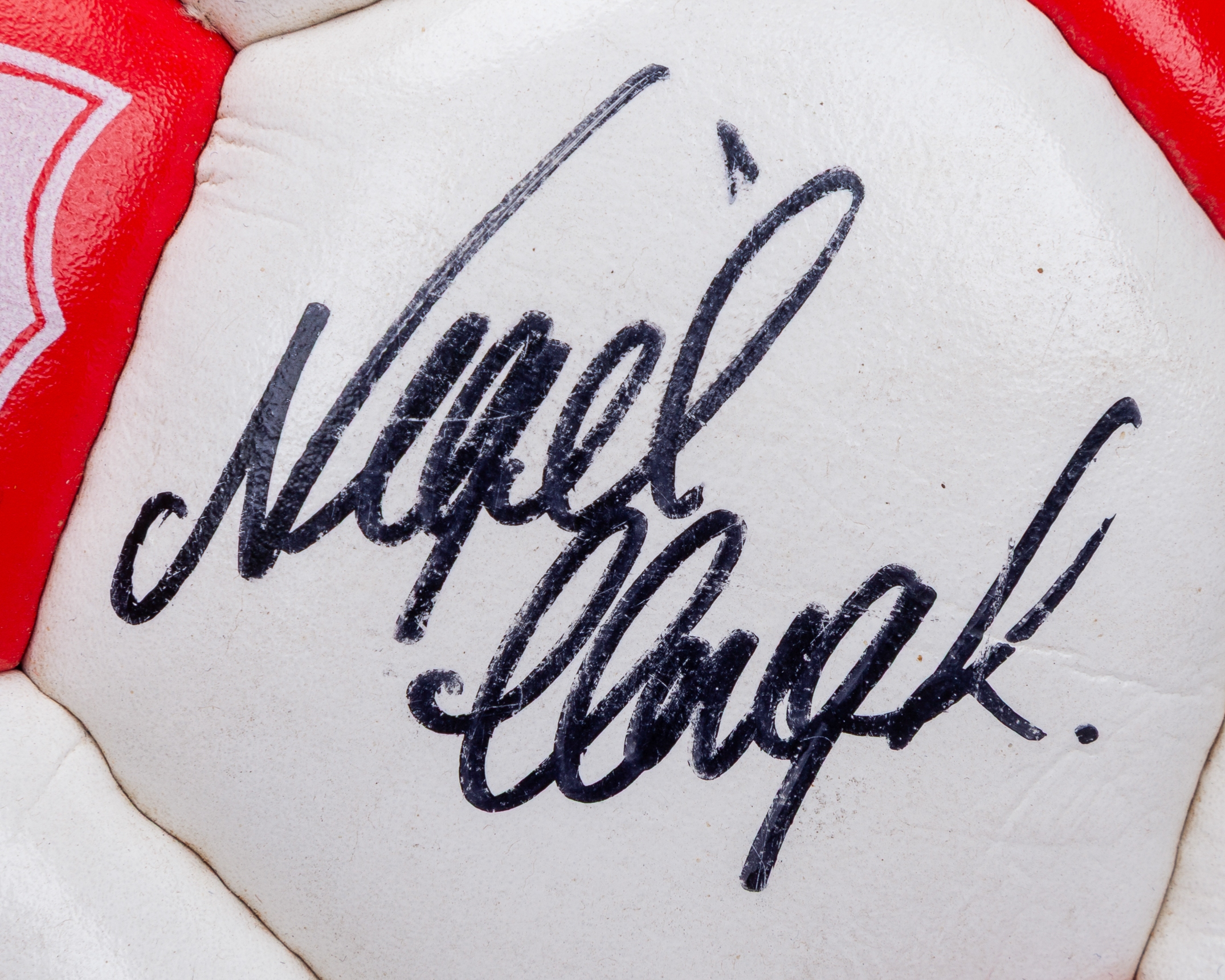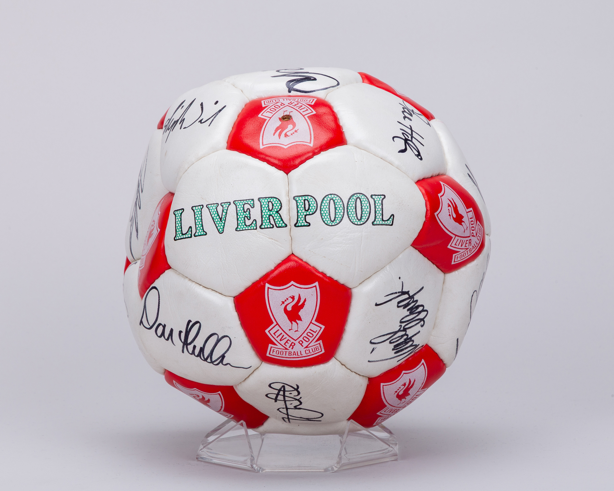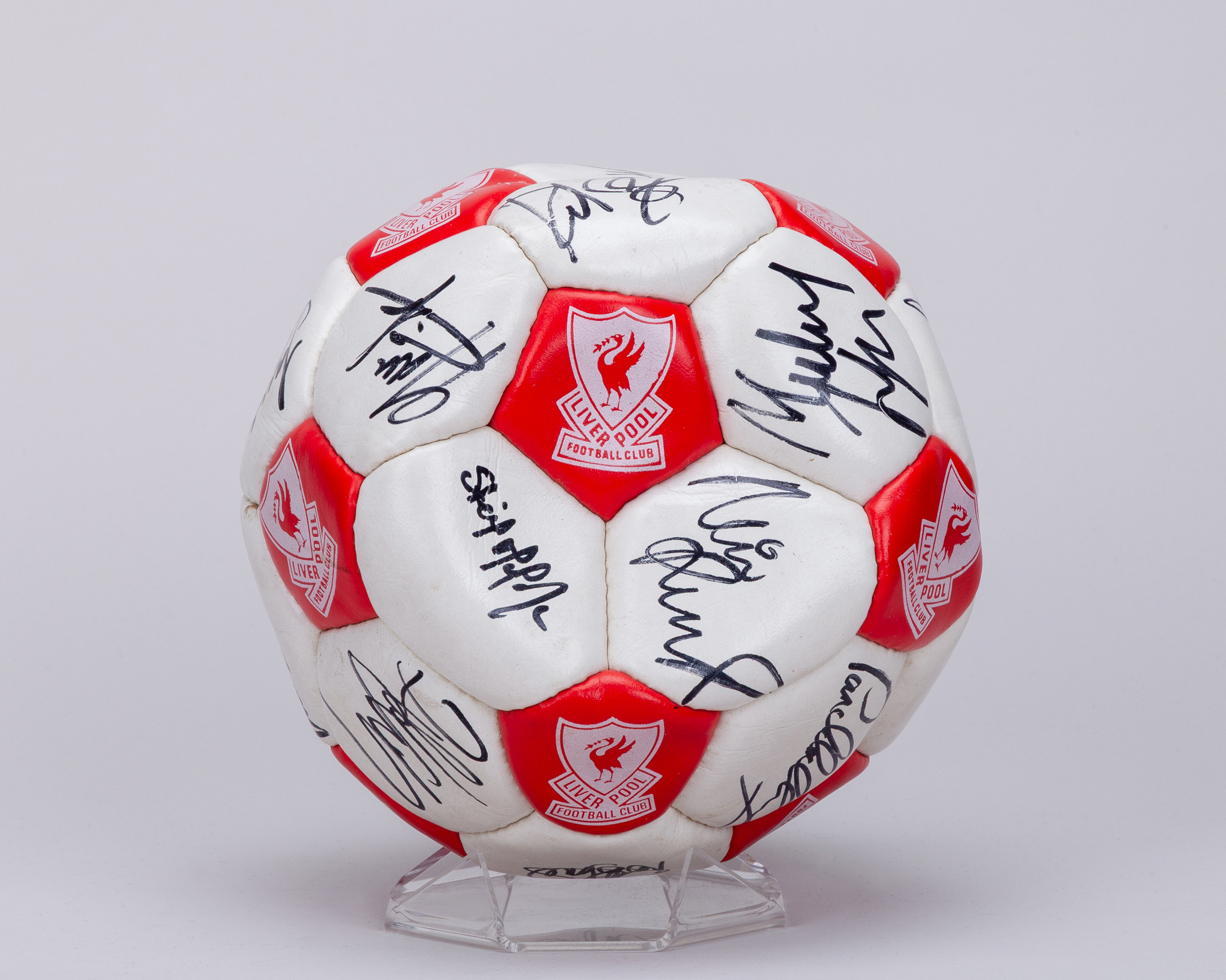 A red and white Liverpool autographed football including Jaime Redknapp, Bruce Grobbelaar, Nigel Clough, Ian Rush, etc., with Pat Jennings Collection autographed COA