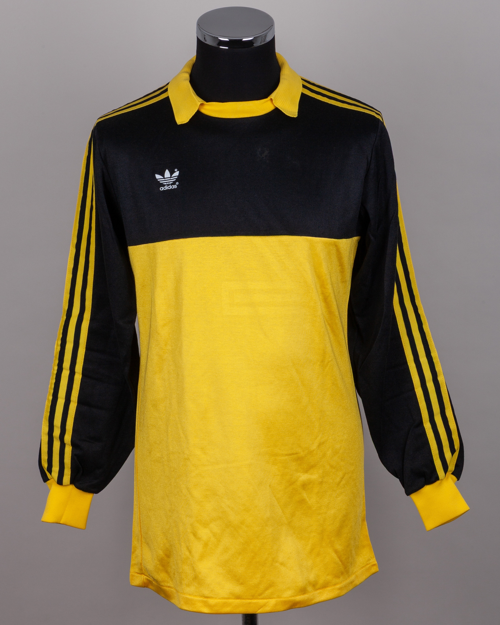Julio Cesar Arzu yellow and black No.21 Honduras v. Northern Ireland World Cup match worn goalkeepers shirt, 1982, Adidas, Large, with crew-neck collar, with Pat Jennings Collection autographed COA
