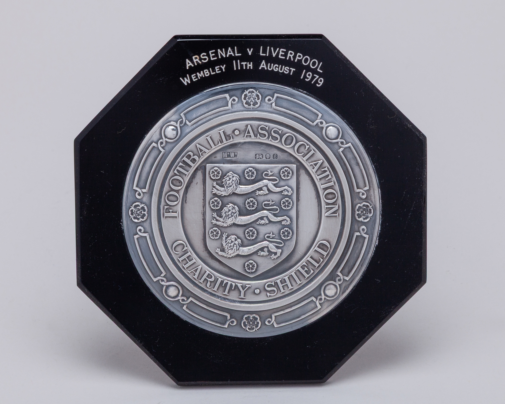 Pat Jennings a silver-mounted and bakelite Arsenal v. Liverpool Charity Shield plaque, 1979
