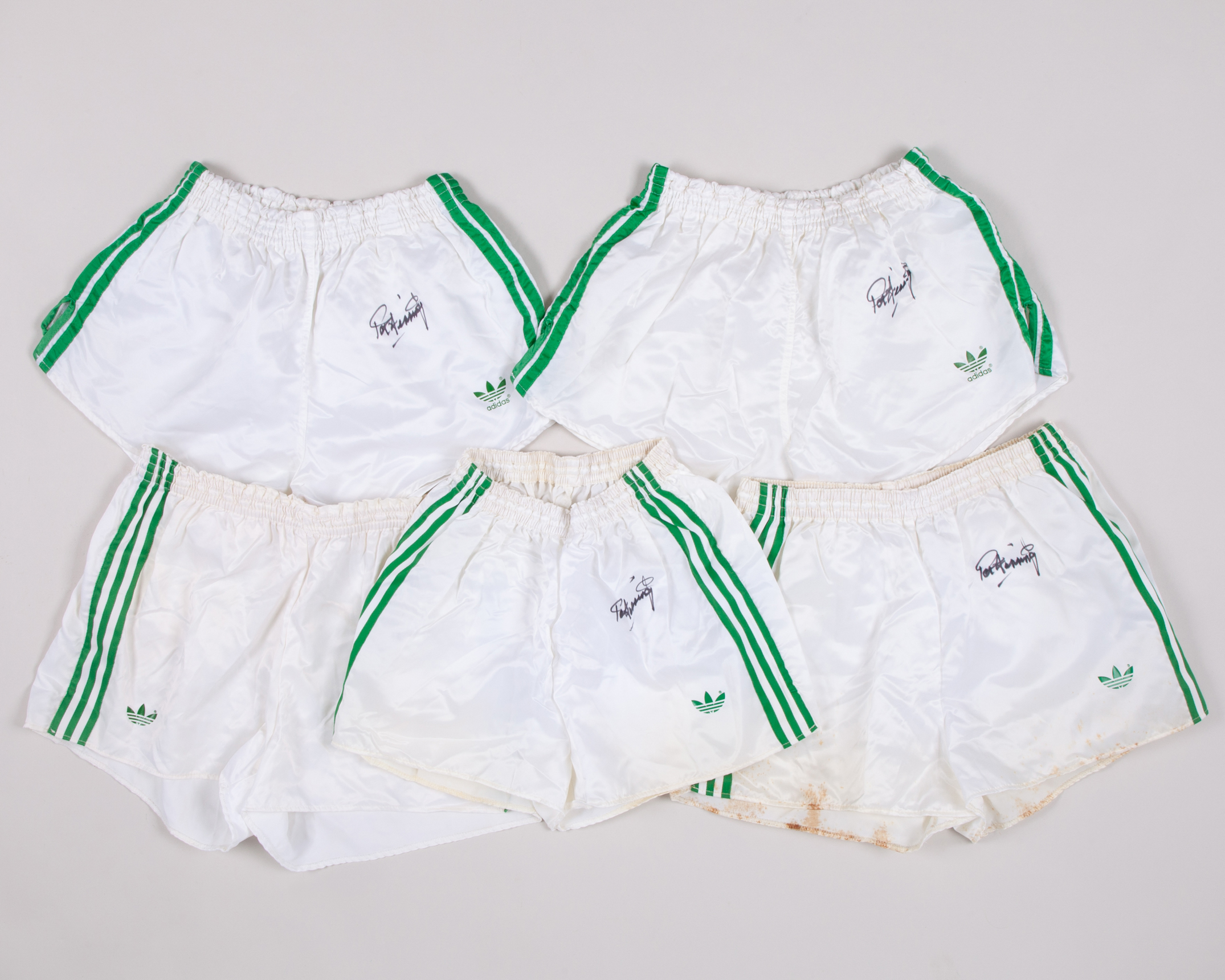 Pat Jennings five pairs of white and green autographed Northern Ireland worn shorts