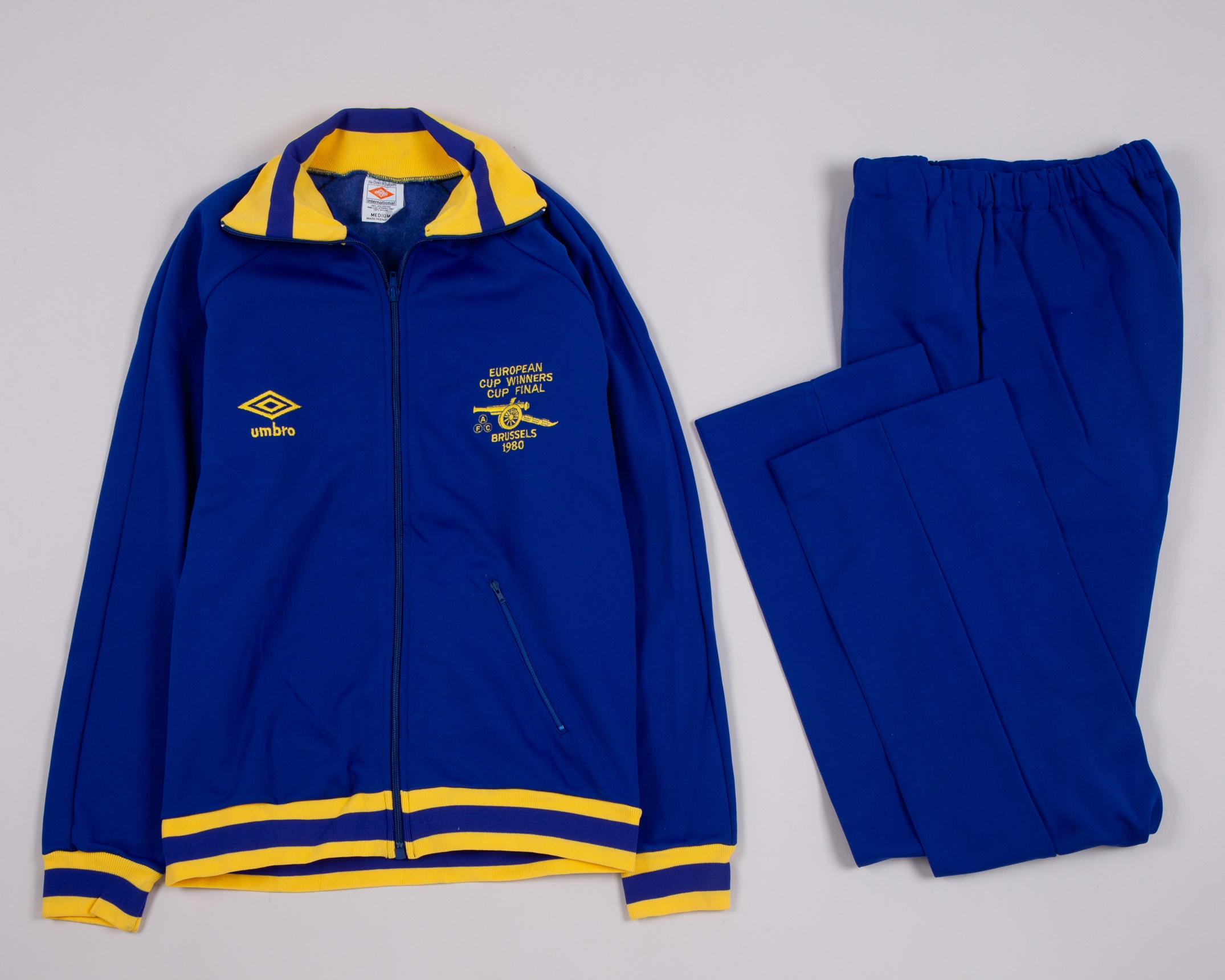 Pat Jennings blue and yellow Arsenal Cup Winners Cup Final tracksuit top and bottoms, 1980