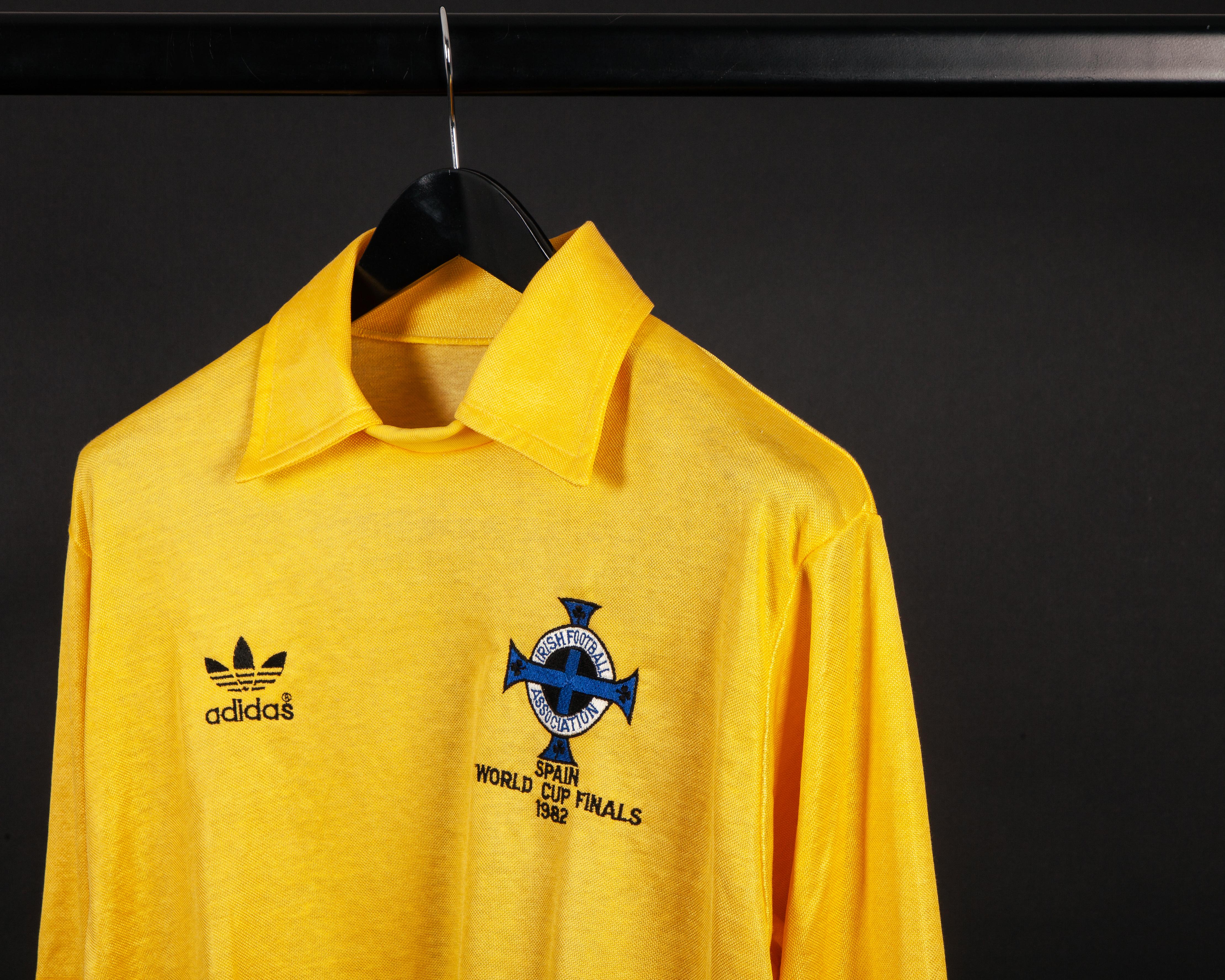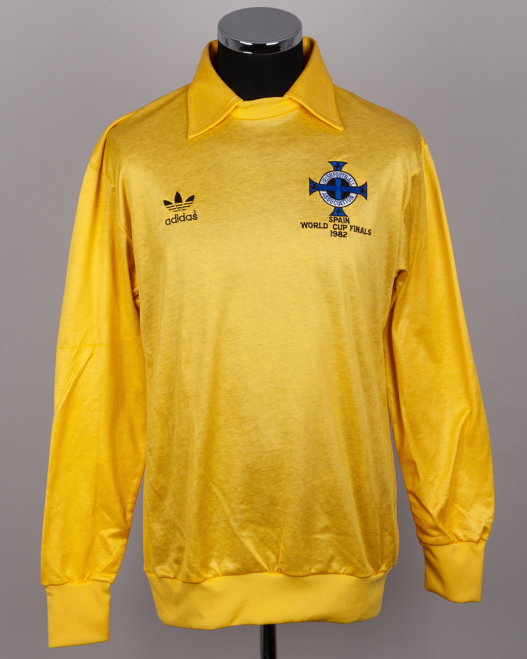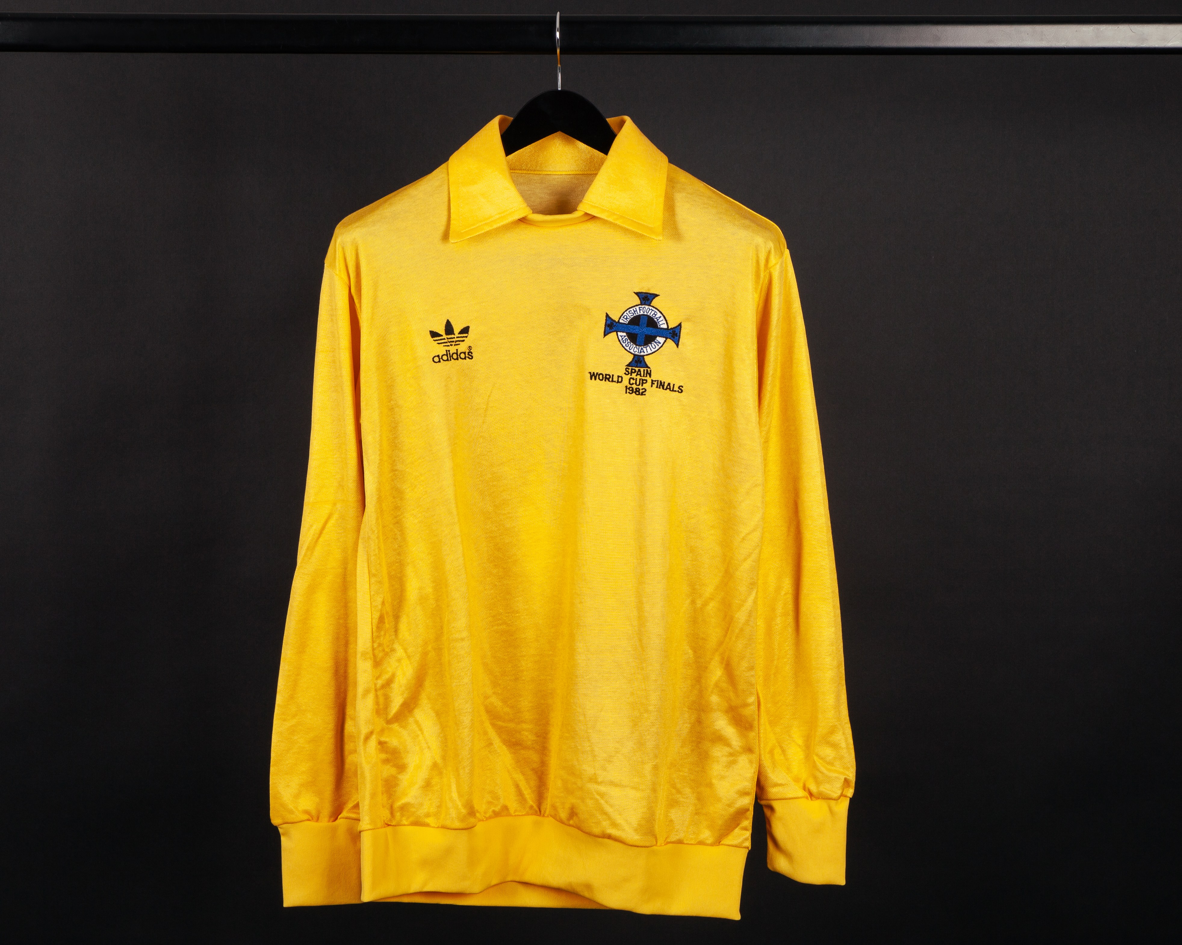 Pat Jennings yellow and black No.1 Northern Ireland World Cup goalkeepers shirt, 1982