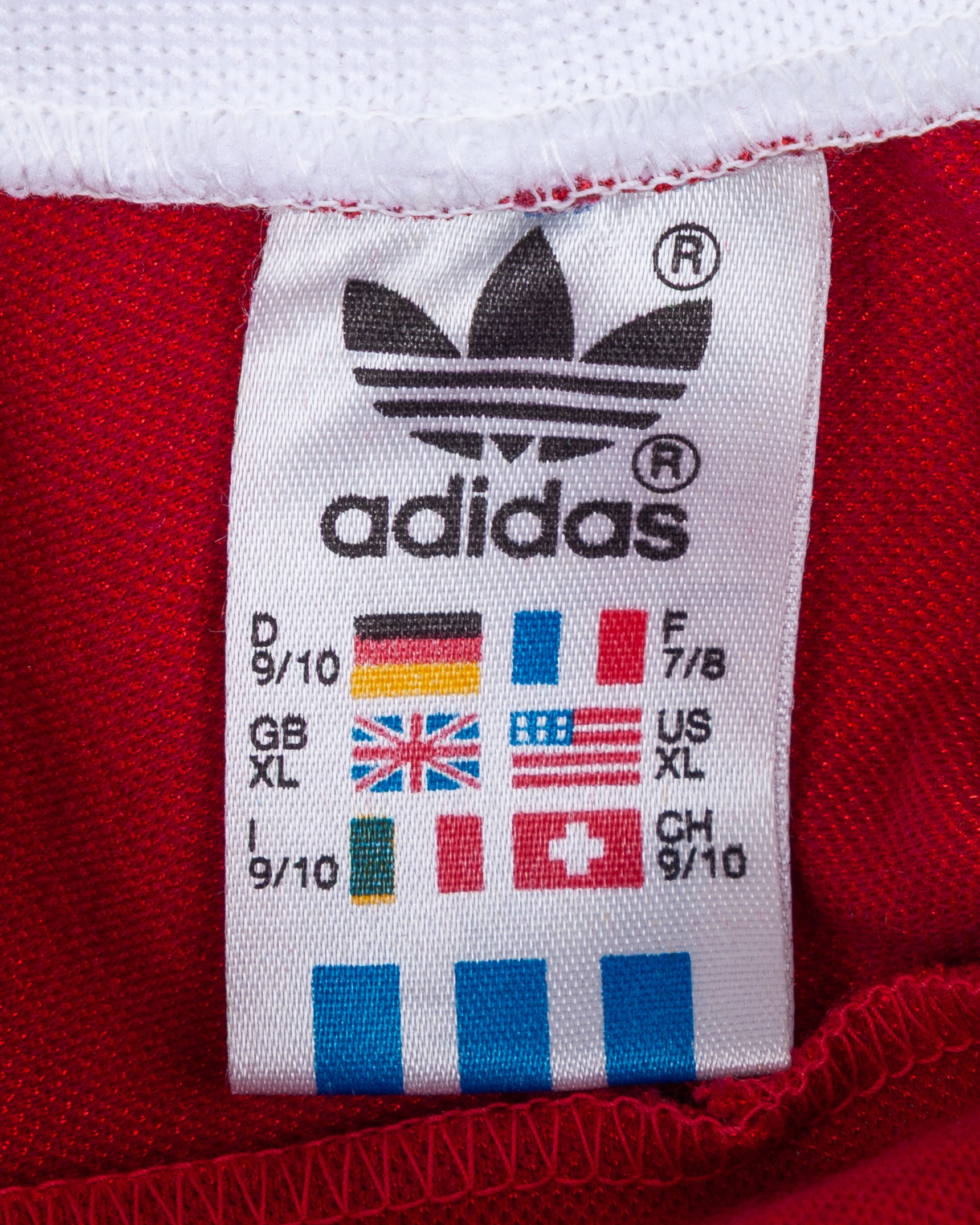 Pat Jennings red and white No.1 Northern Ireland World Cup issued goalkeepers shirt, 1986, Adidas, XL, with crew-neck collar and embroidered badge inscribed NORTHERN IRELAND IRISH FOOTBALL ASSOCIATION MEXICO 1986, with Pat Jennings Collection autographed COA