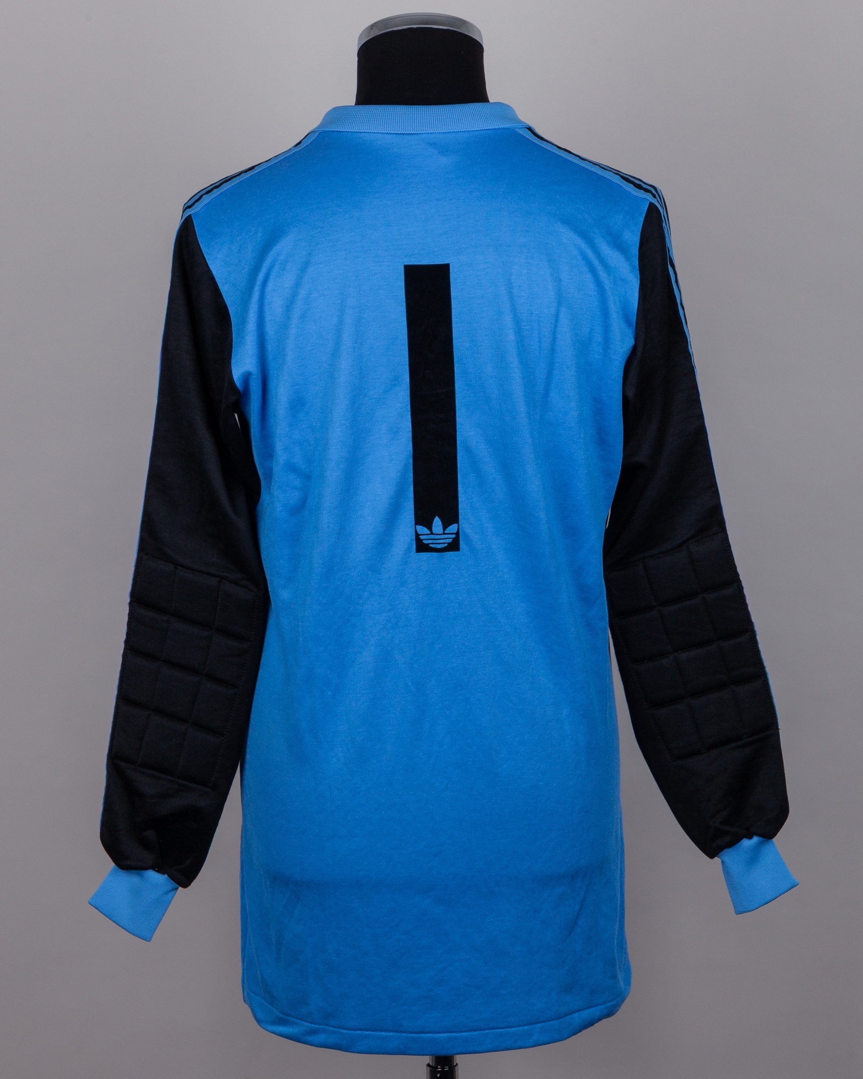 Pat Jennings blue and black No.1 Northern Ireland goalkeepers shirt, 1980s