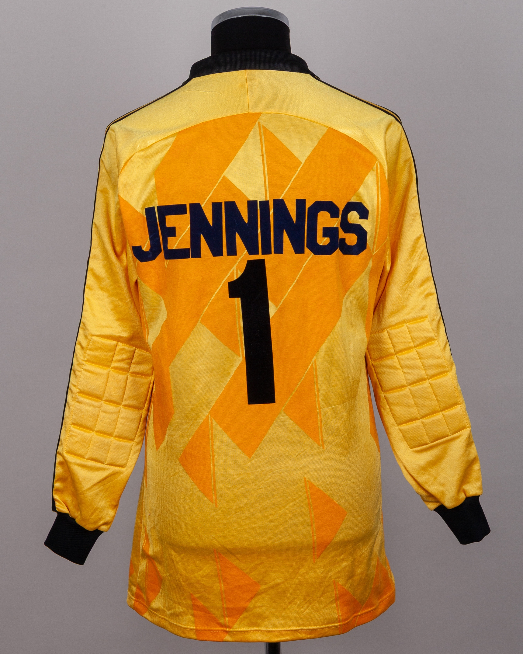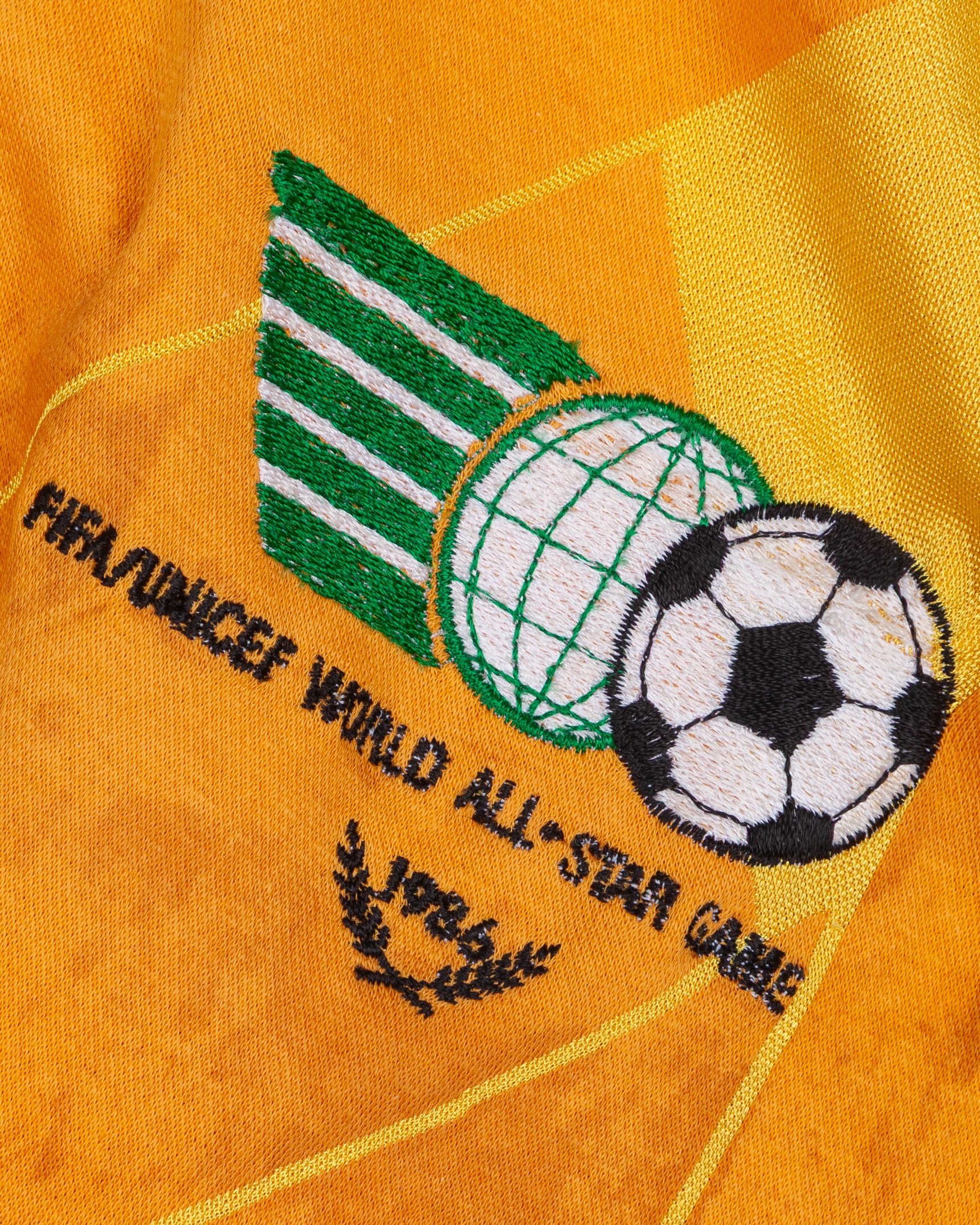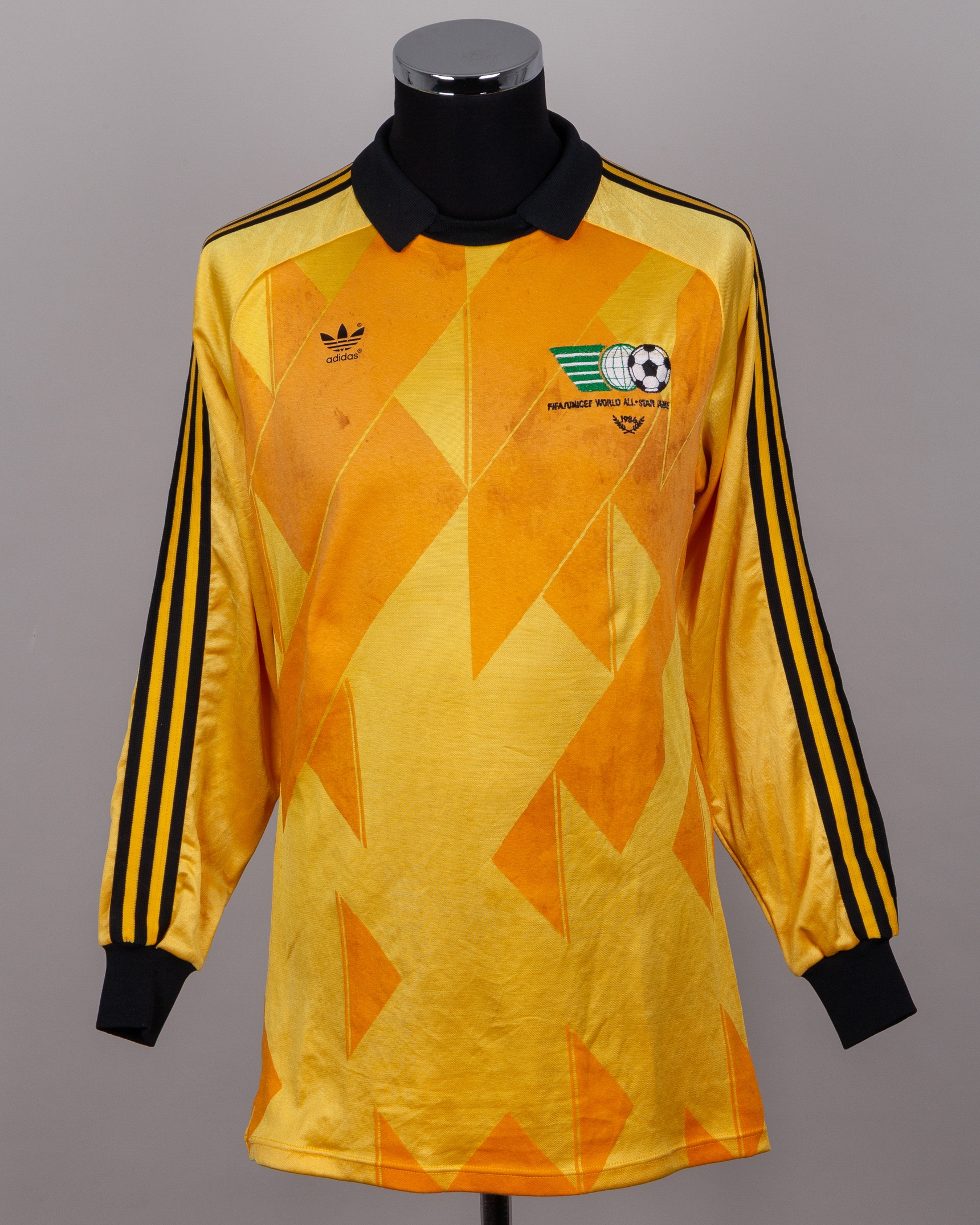 Pat Jennings yellow and black No.1 FIFA/UNICEF All Star match worn goalkeepers shirt, 1986