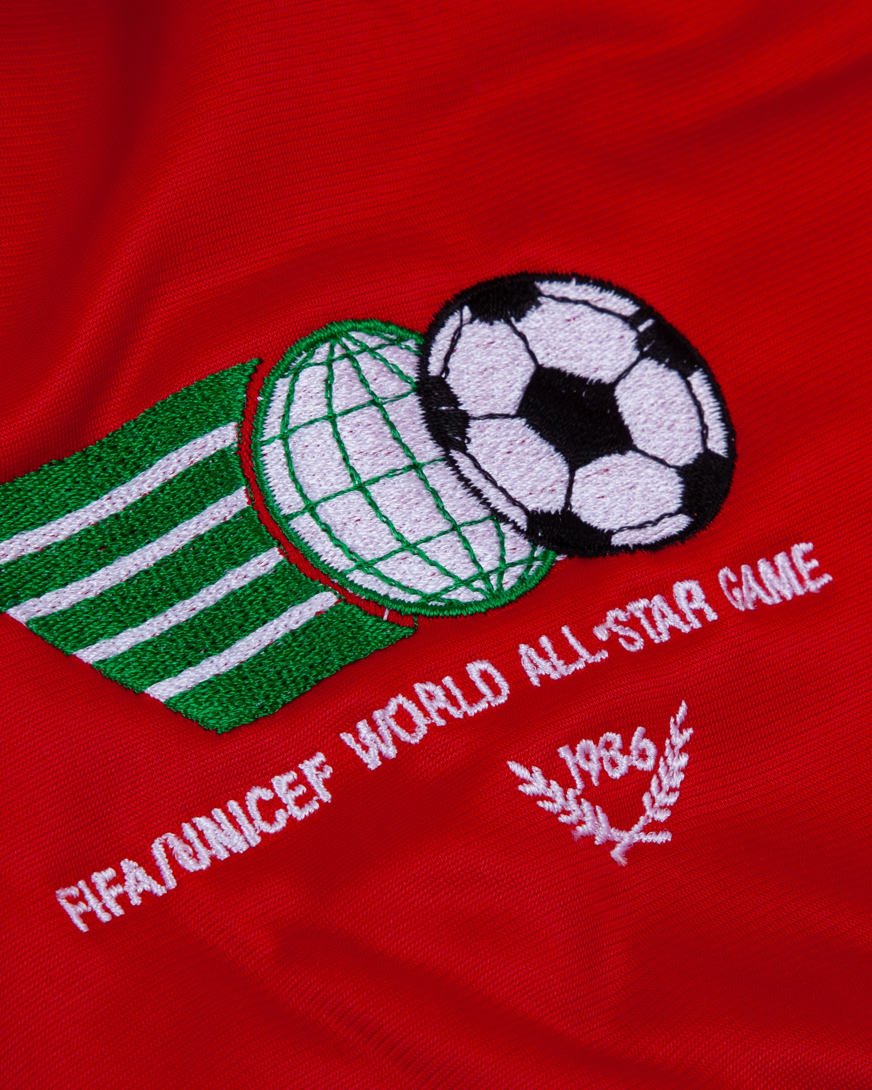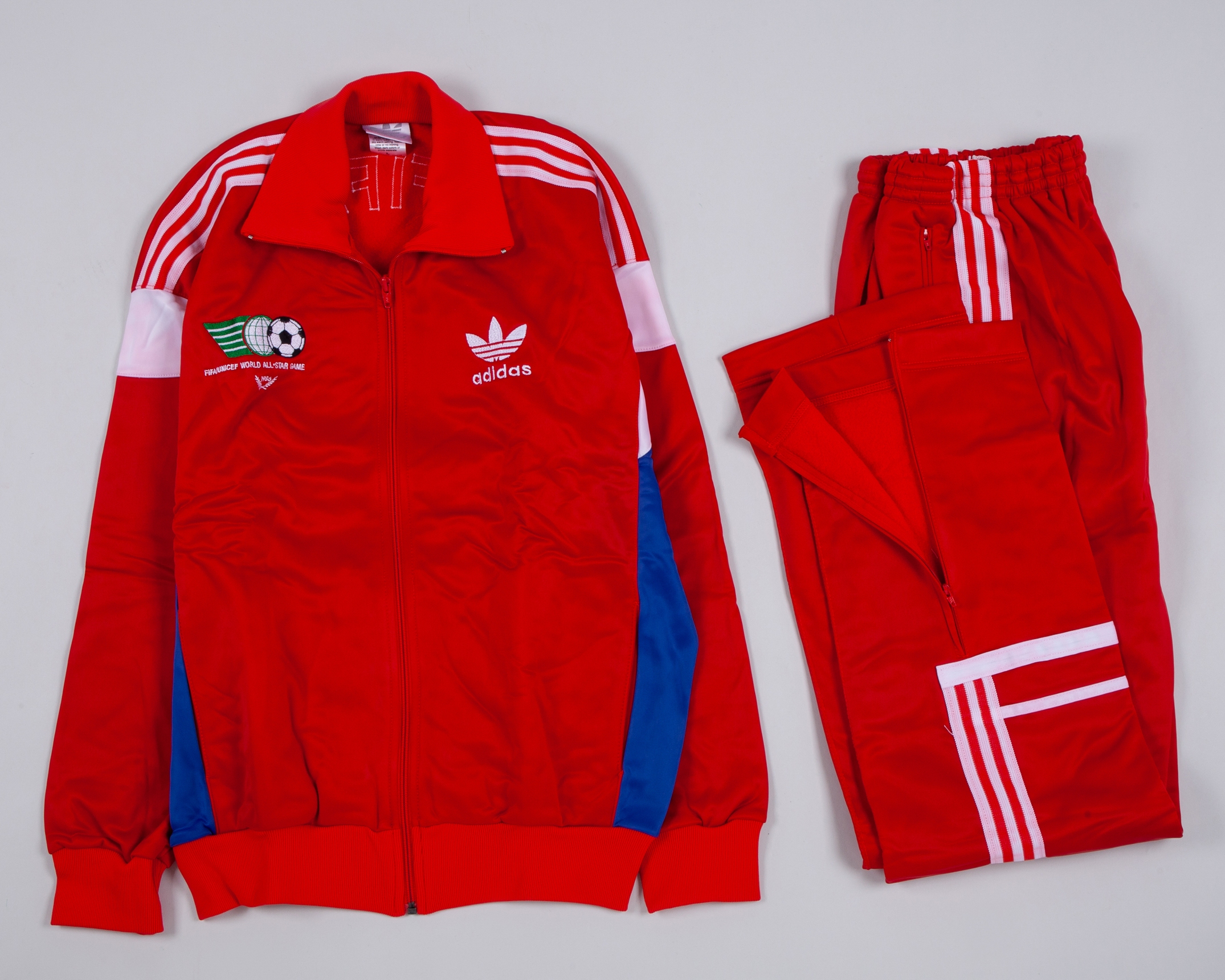 Pat Jennings red and white FIFA/UNICEF ALL STAR Game tracksuit top and bottoms, 1986
