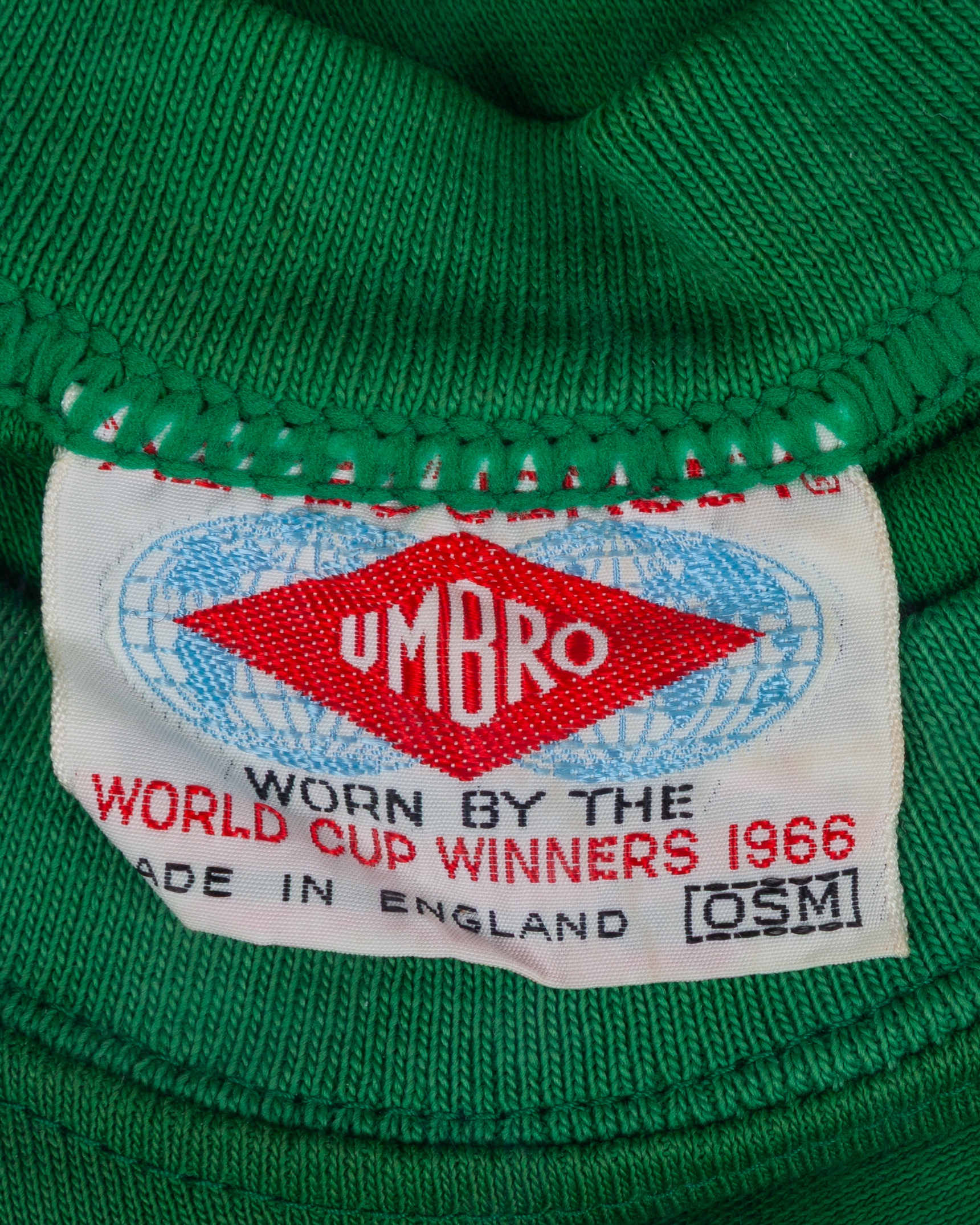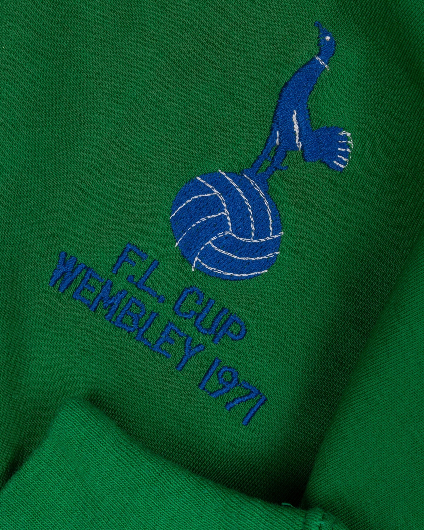 Pat Jennings a green Tottenham Hotspur v. Aston Villa League Cup Final match worn goalkeepers shirt, 1971, Umbro, OSM, with crew-neck collar and embroidered badge inscribed F.L. CUP WEMBLEY 1971, with Pat Jennings Collection autographed COA