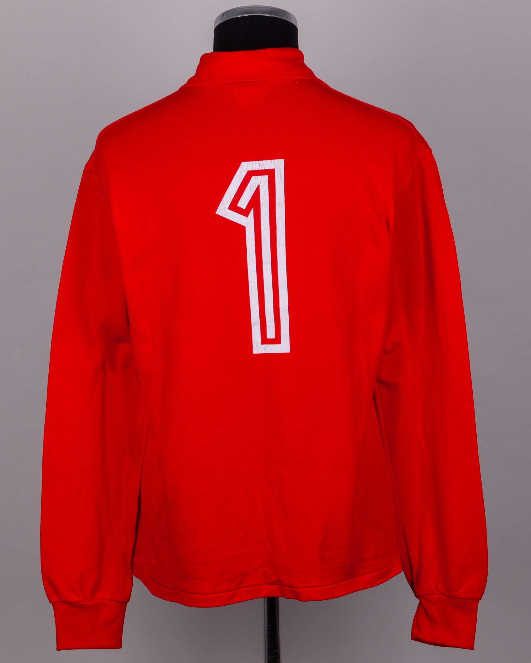 Pat Jennings red No.1 Northern Ireland match worn goalkeepers shirt