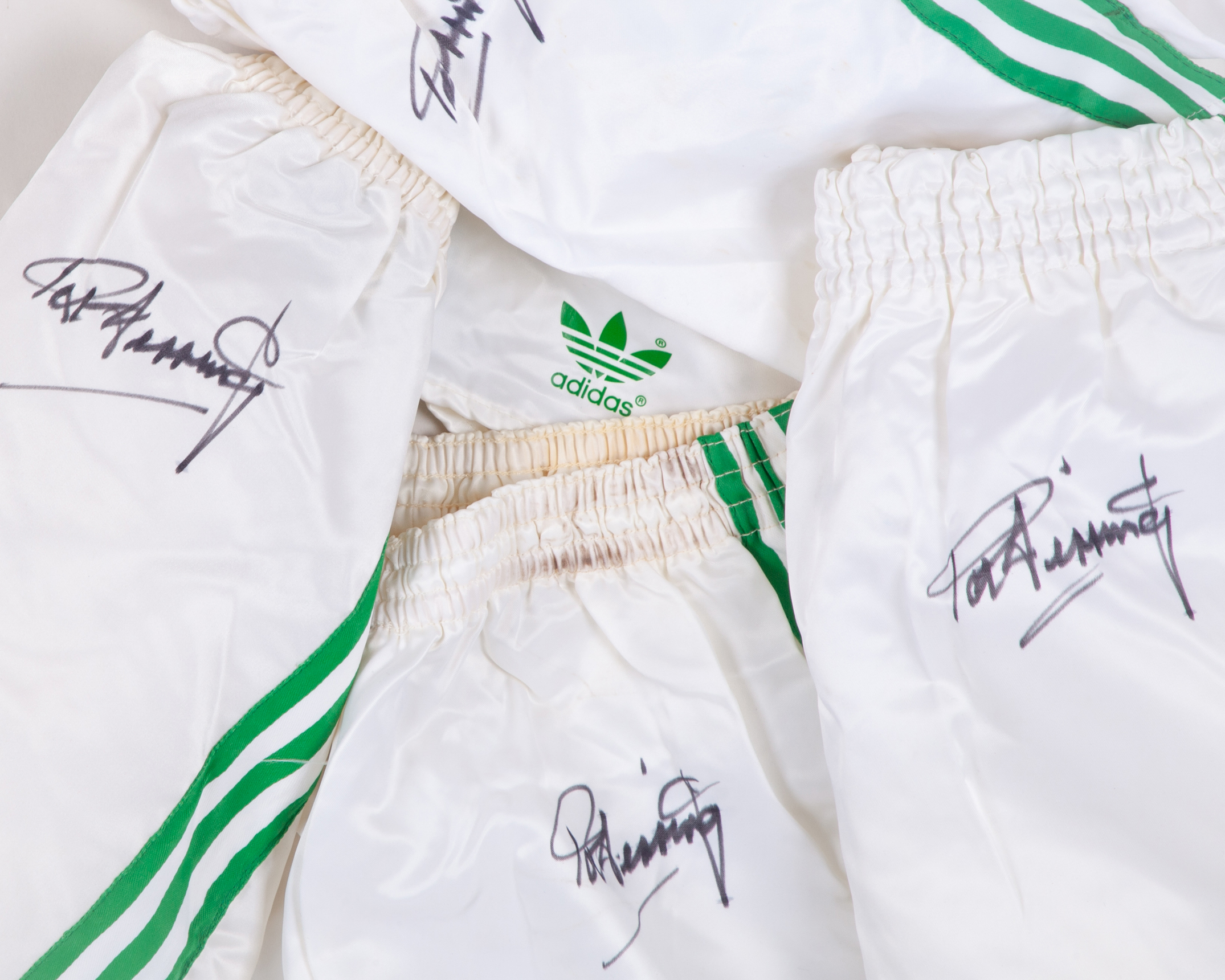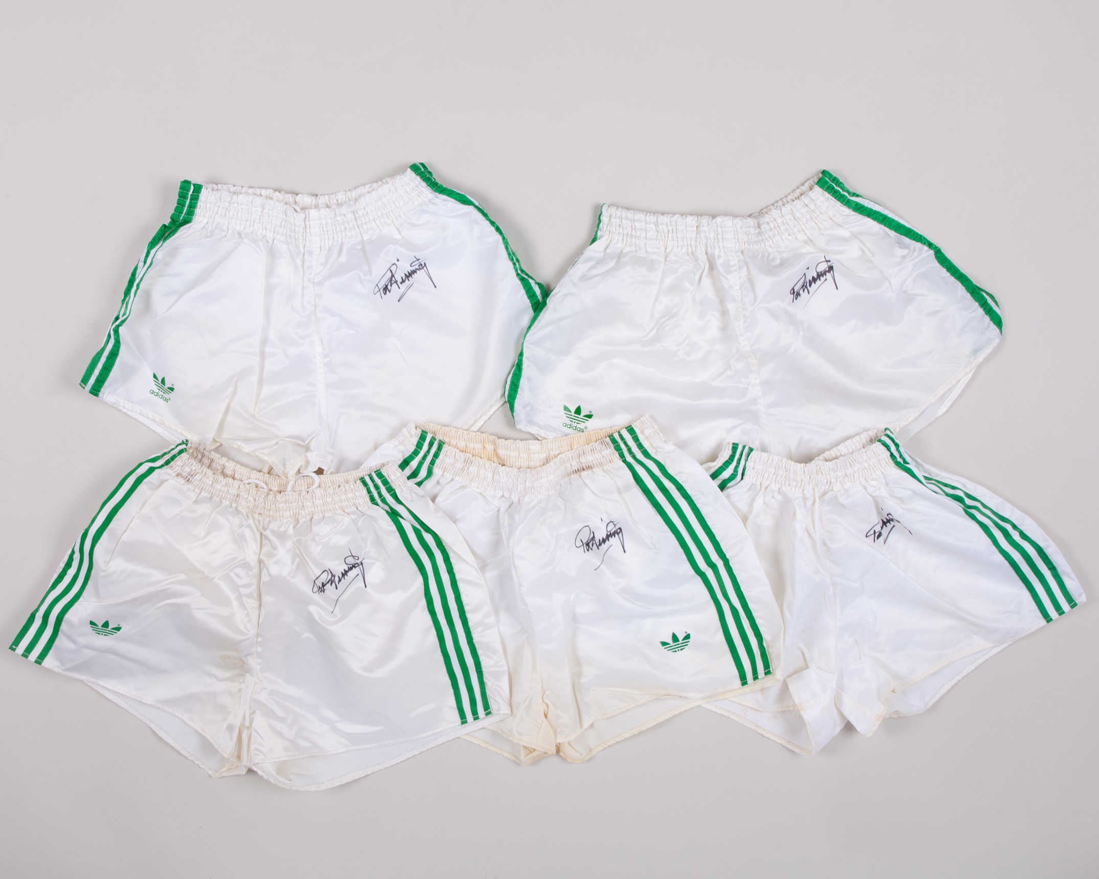 Pat Jennings five pairs of white and green autographed Northern Ireland worn shorts