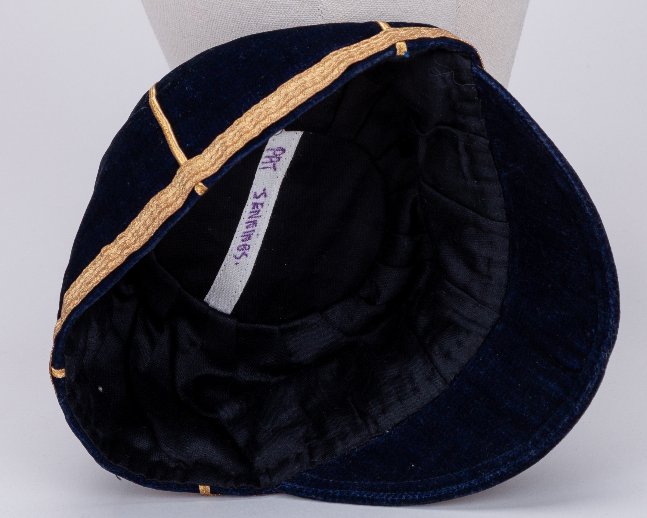 Pat Jennings blue Northern Ireland v. Scotland, England and Wales International cap, 1967-68, blue velvet cap with gilt tassel and braiding inscribed S E W 1967-68, the interior inscribed in ink Pat Jennings, with Pat Jennings Collection autographed COA