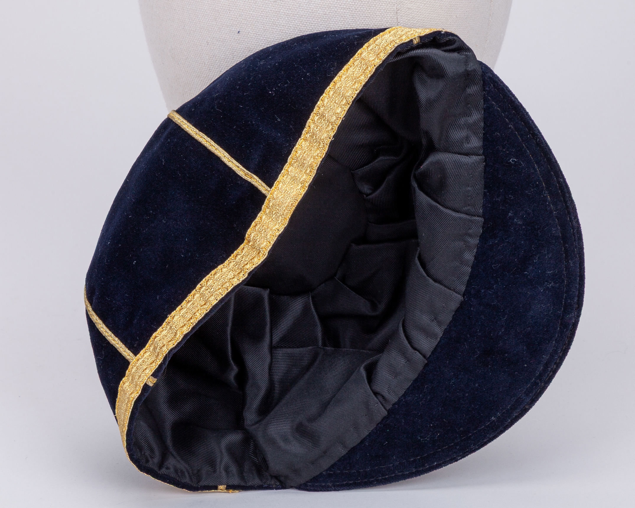 Pat Jennings blue Northern Ireland v. USSR, Spain, Scotland, England and Wales International cap, 1971-72, blue velvet cap with gilt tassel and braiding inscribed R Sp S E W 1971-72, the interior inscribed in ink Pat Jennings, with Pat Jennings Collection autographed COA