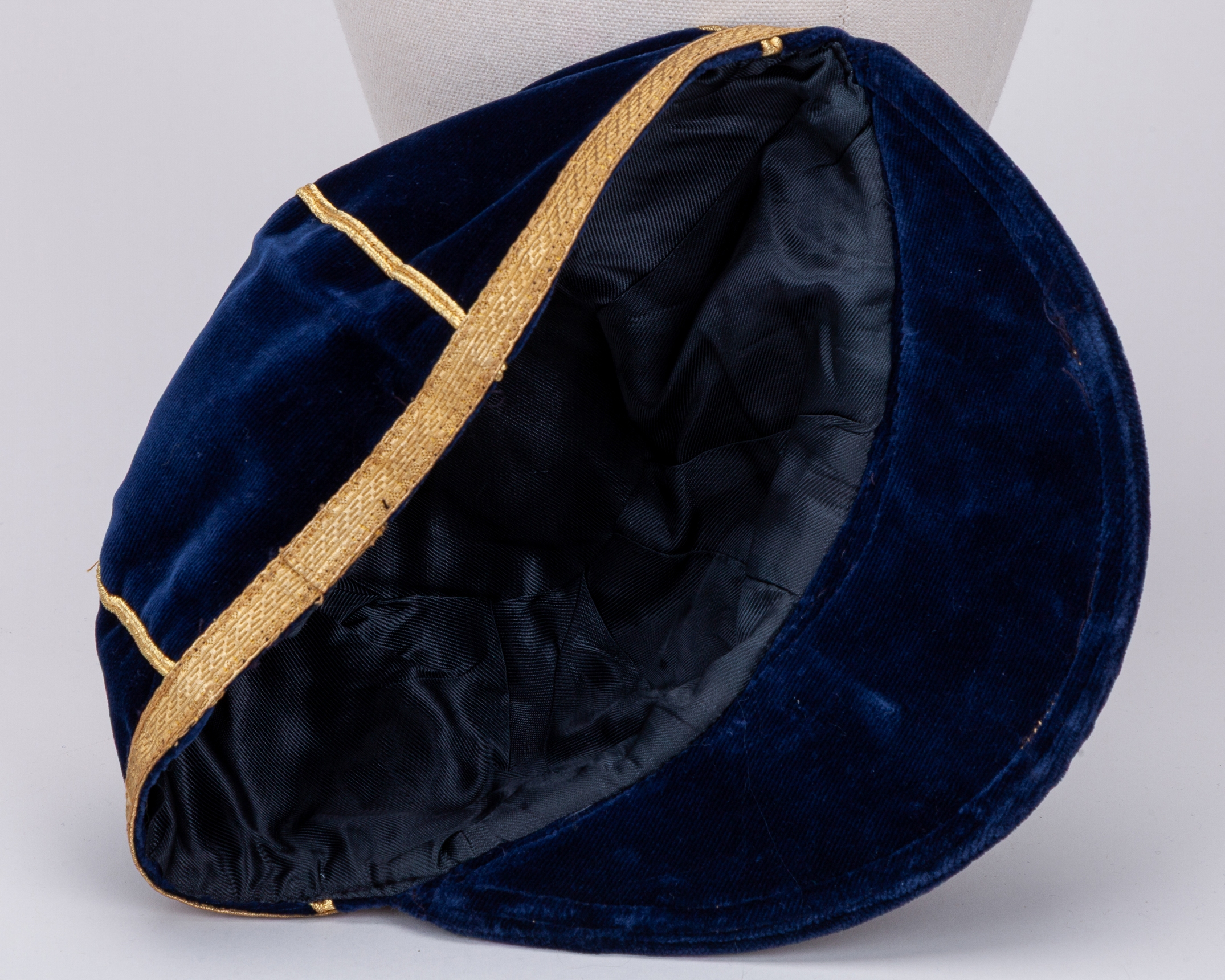 Pat Jennings blue Northern Ireland v. Holland, Belgium, West Germany, England, Scotland, Wales and Iceland International cap, 1976-77, blue velvet cap with yellow tassel and braiding inscribed 1976-77, with Pat Jennings Collection autographed COA
