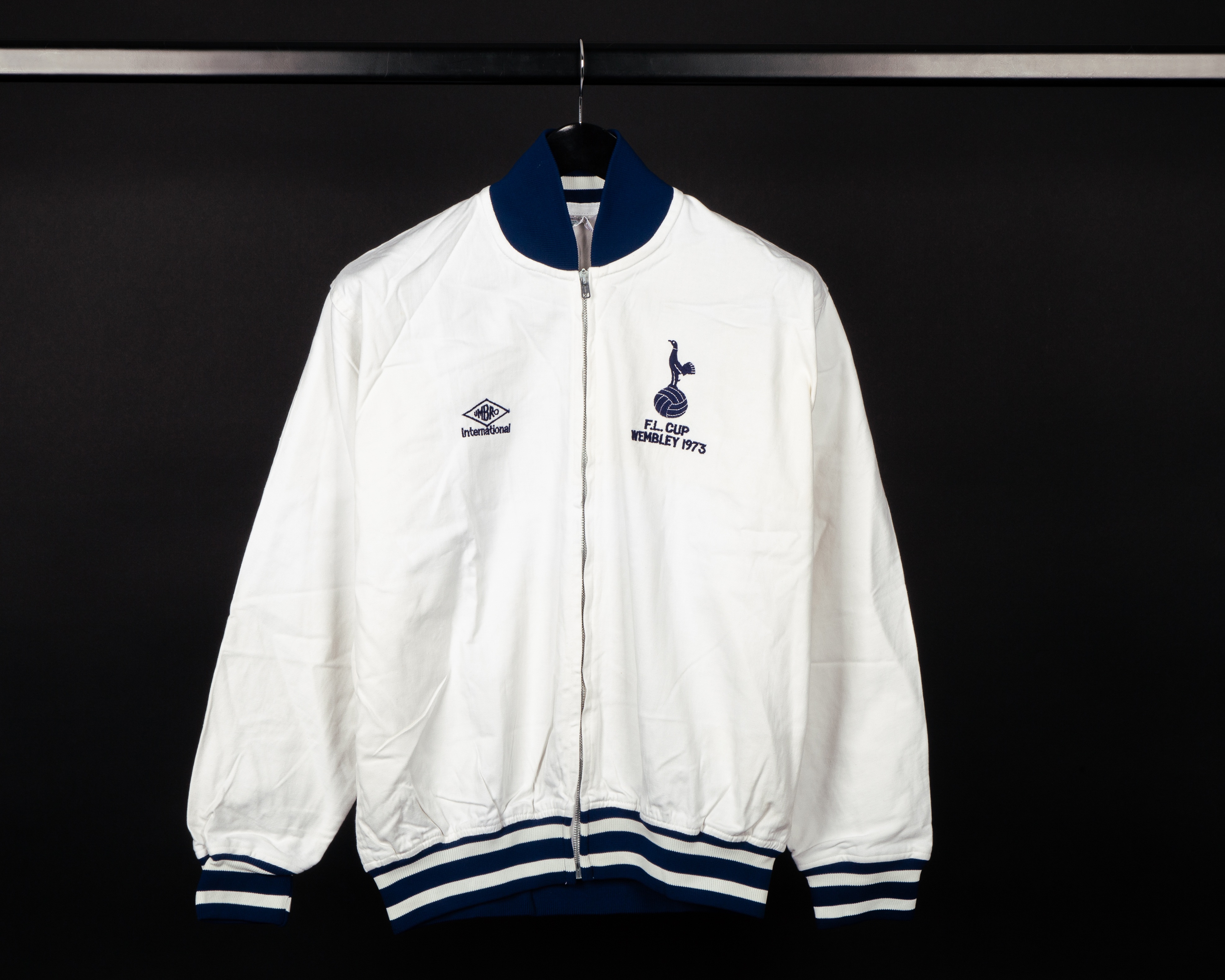 Pat Jennings white and blue Tottenham Hotspur Football League Cup final tracksuit top, 1973