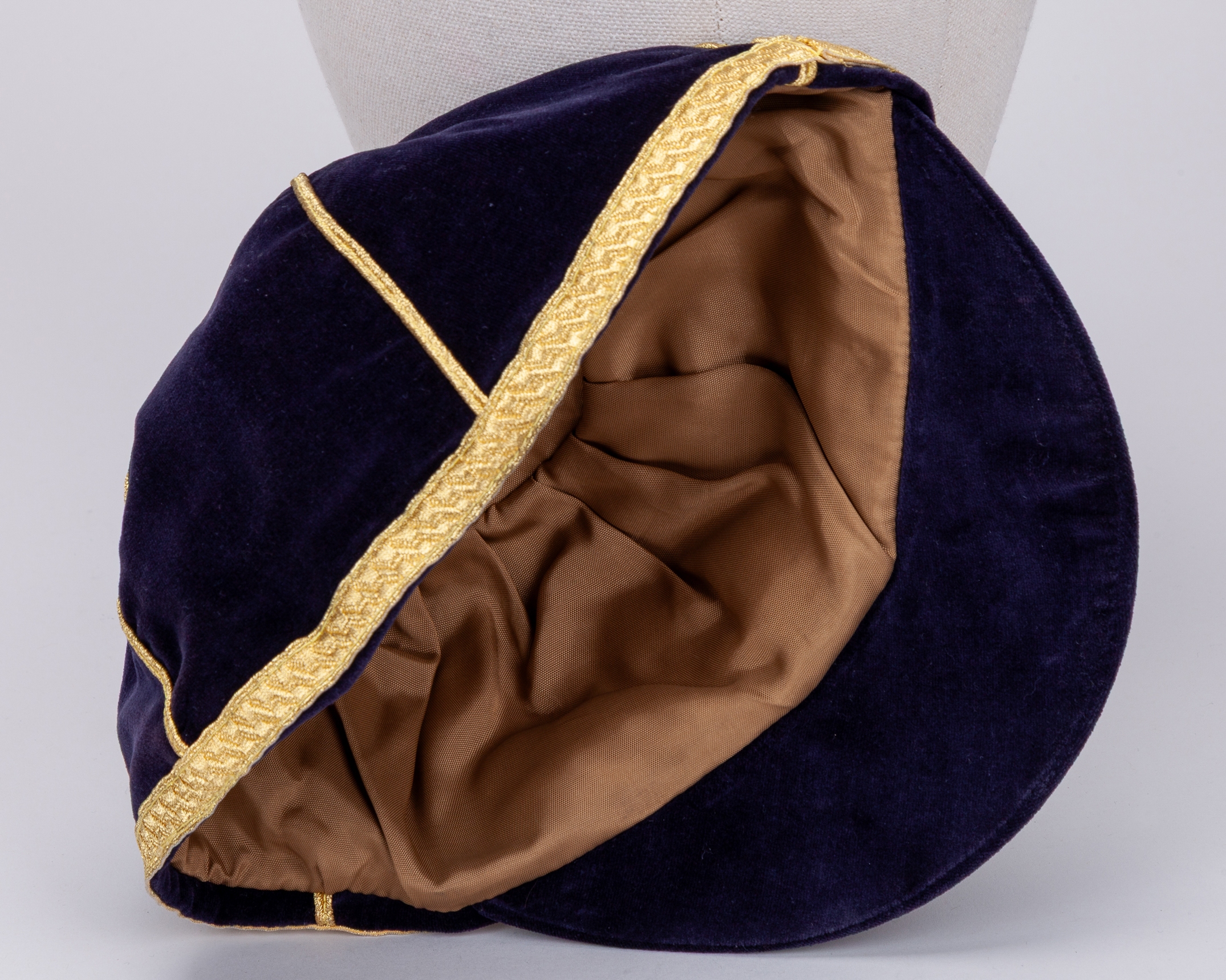 Pat Jennings blue Northern Ireland v. Romania, Finland, England, Spain and Turkey International cap, 1984-85, blue velvet cap with gilt tassel and braiding inscribed 1984-85, with Pat Jennings Collection autographed COA