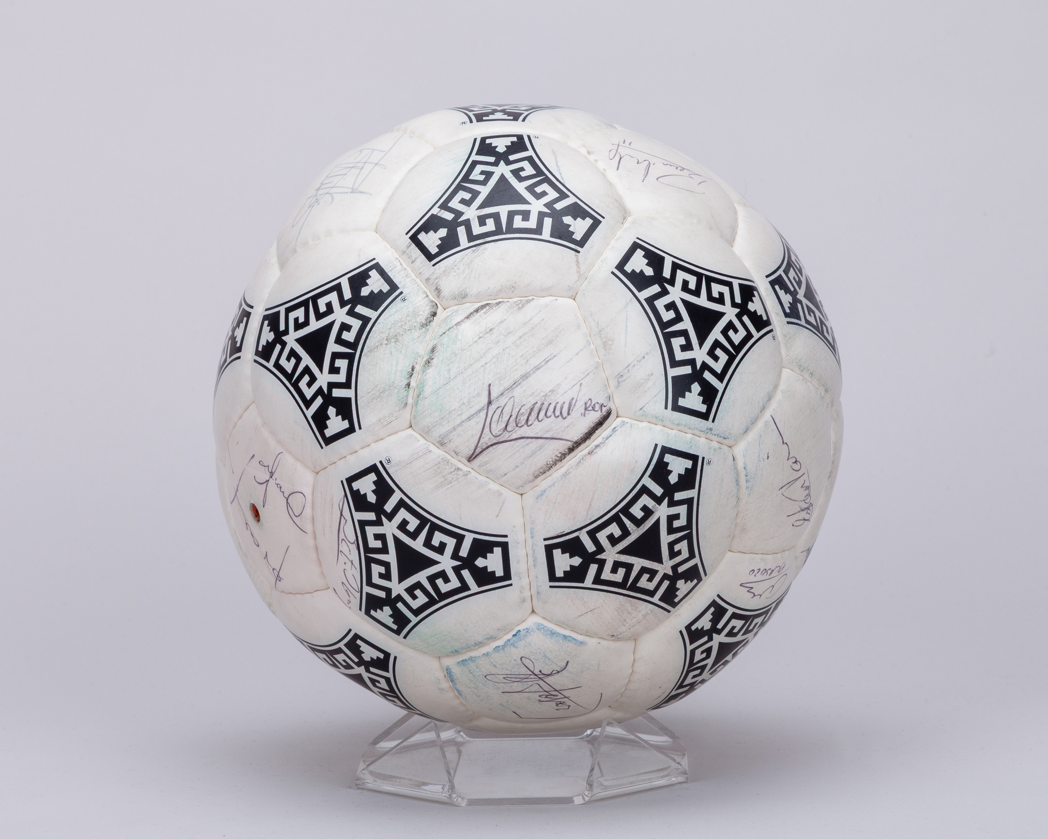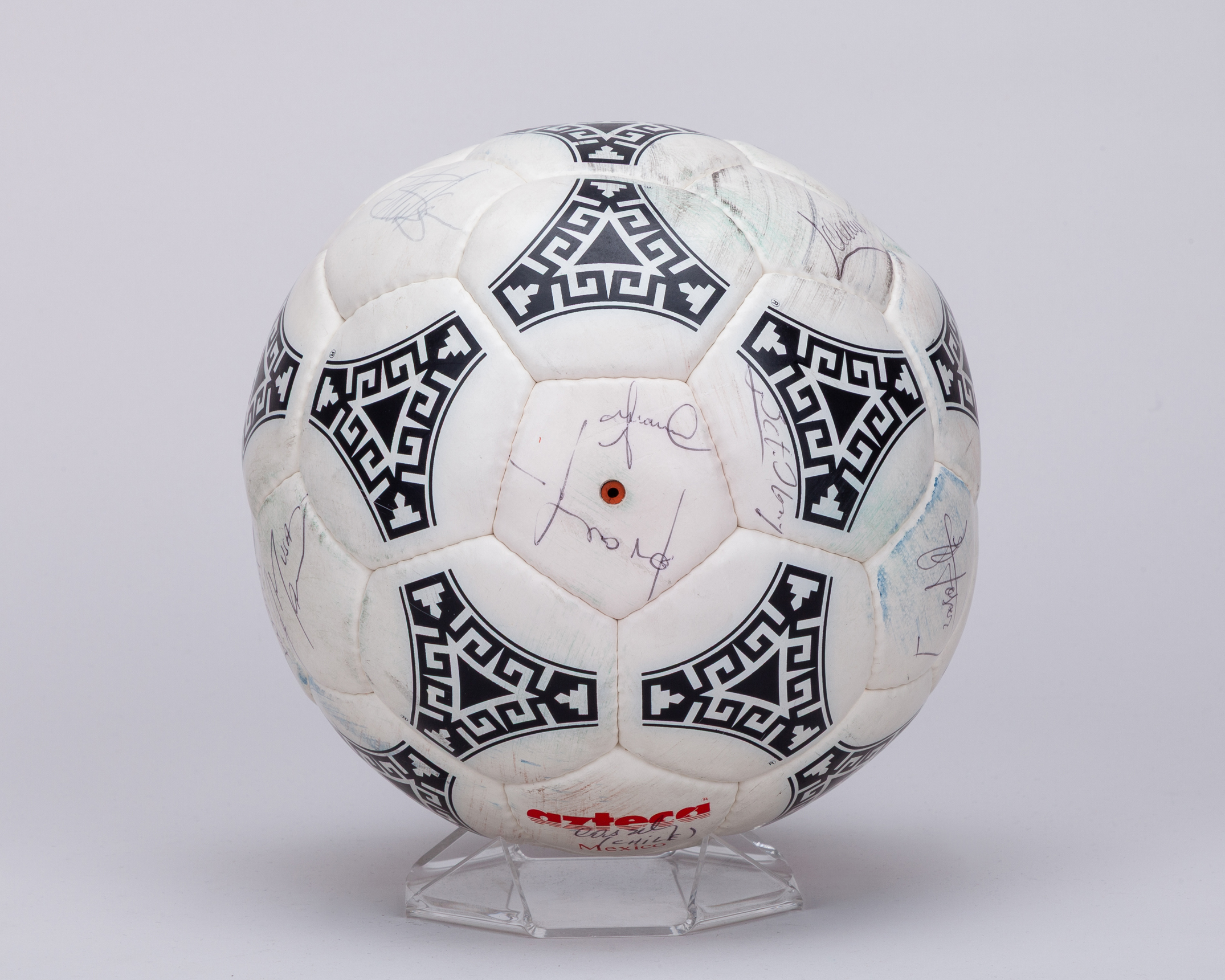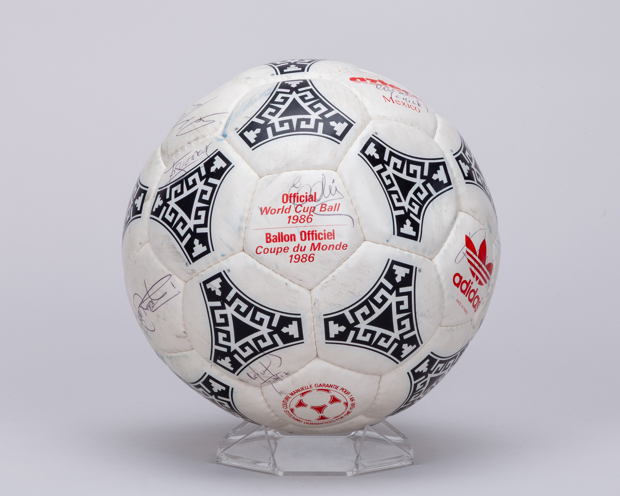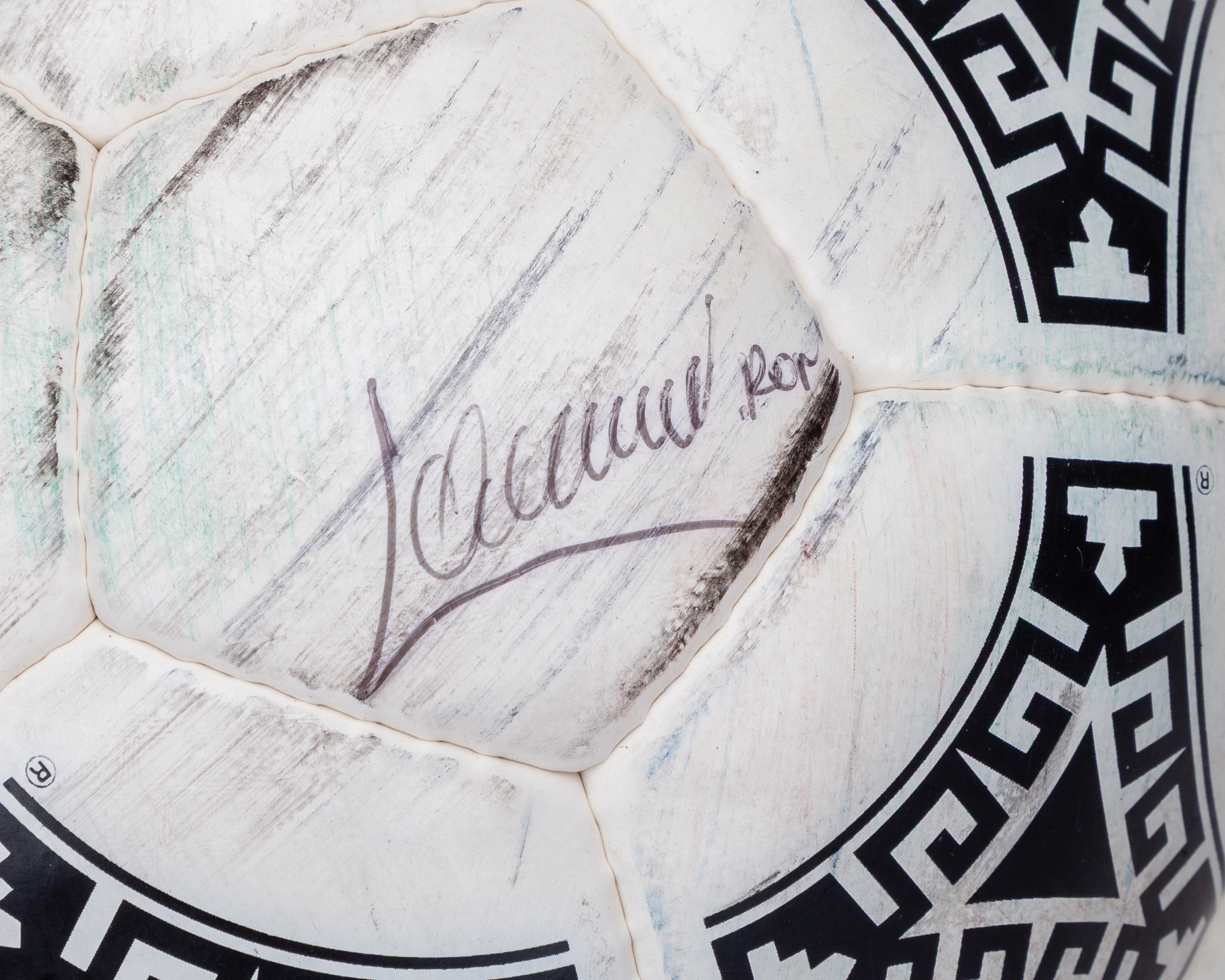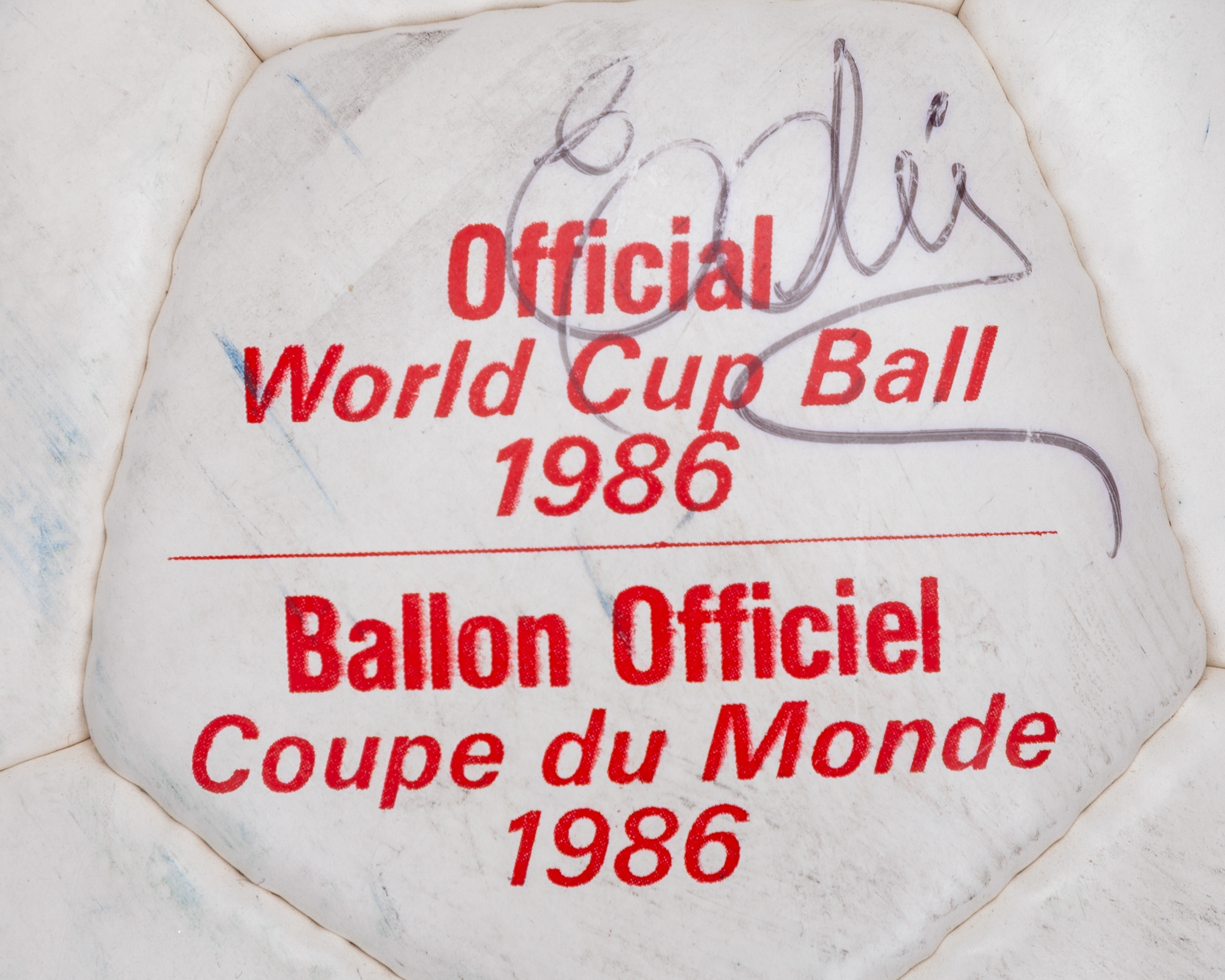 An official Adidas 1986 World Cup official ball, autographed, scuffing, with Pat Jennings Collection autographed COA
