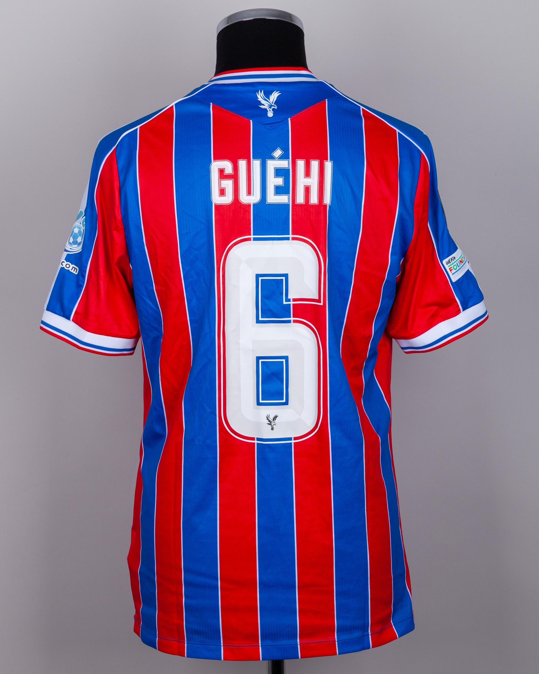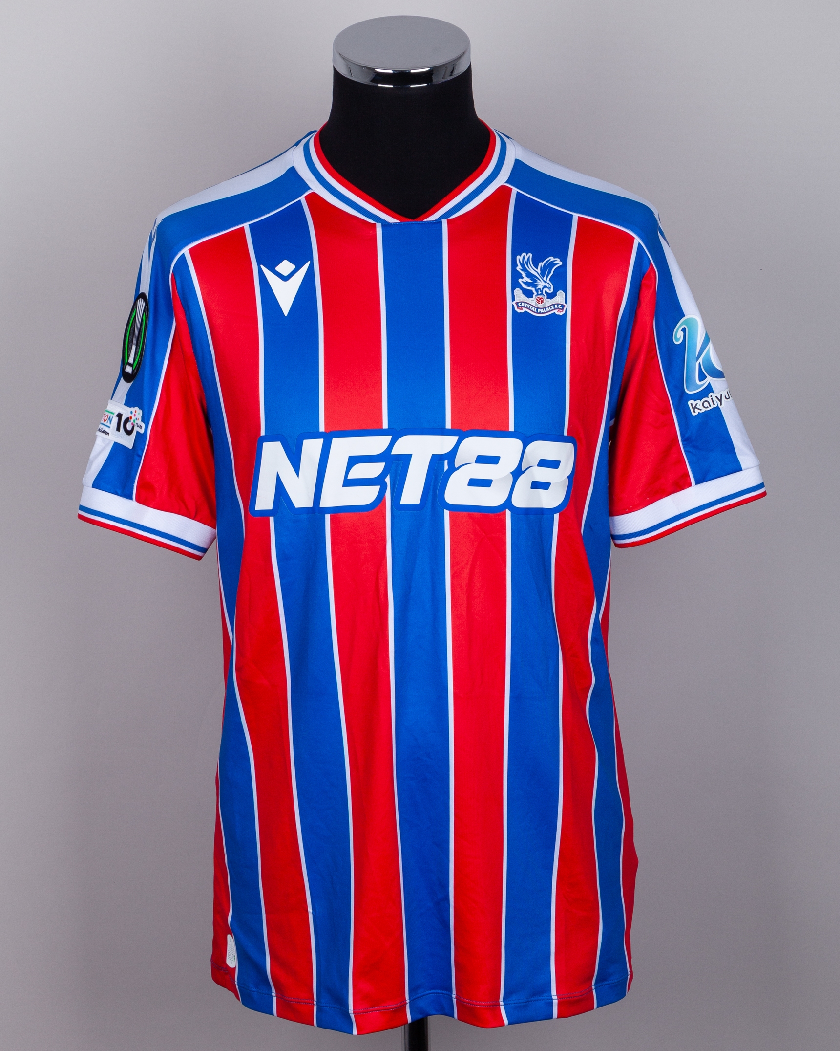 Marc Guéhi red and blue No.6 Crystal Palace v. AEK Larnaca match worn shirt