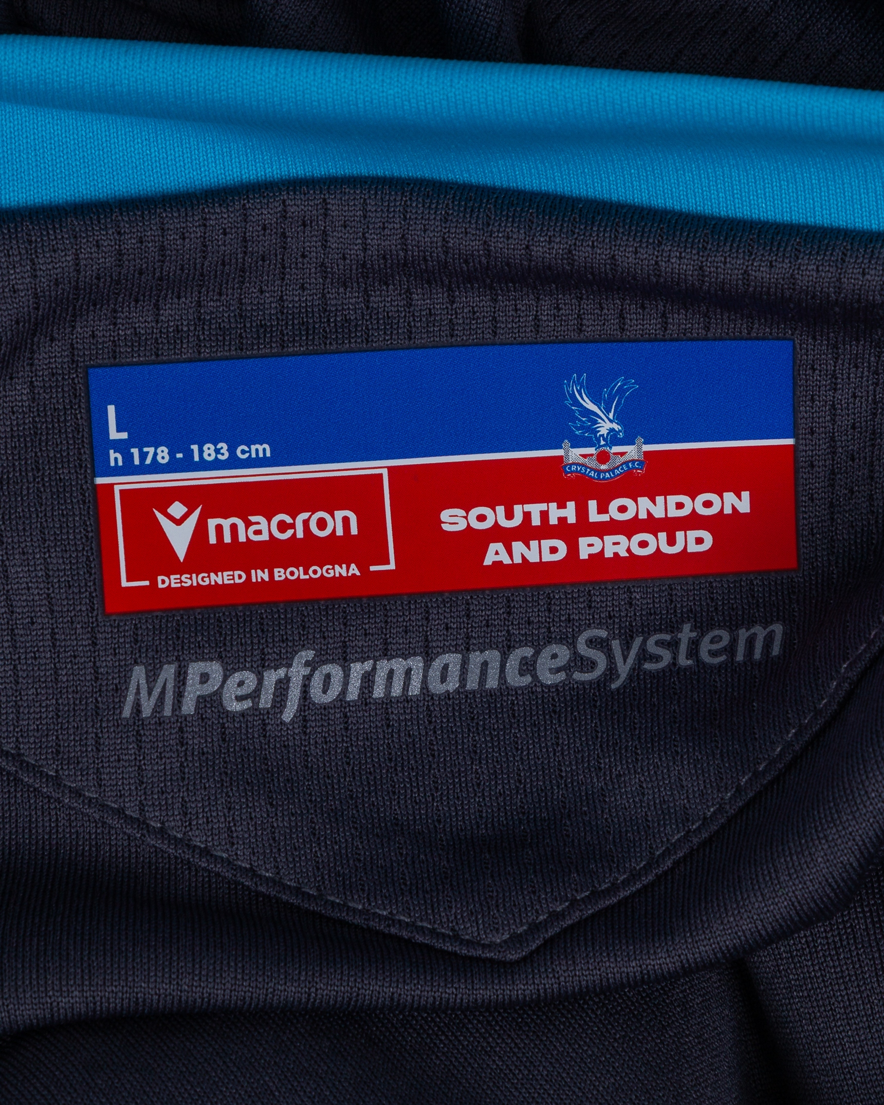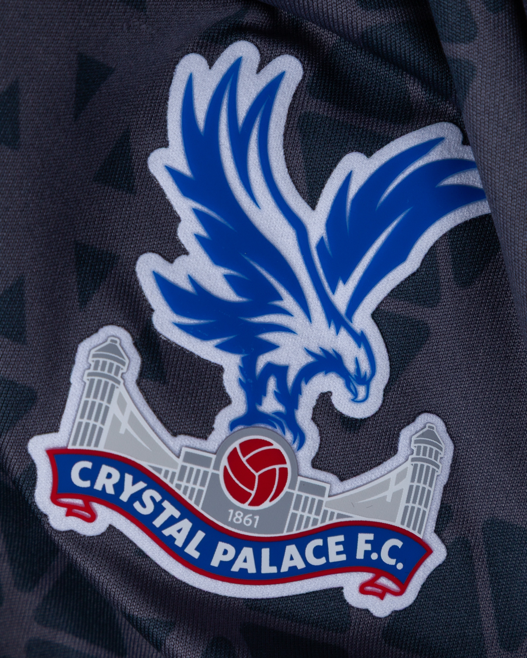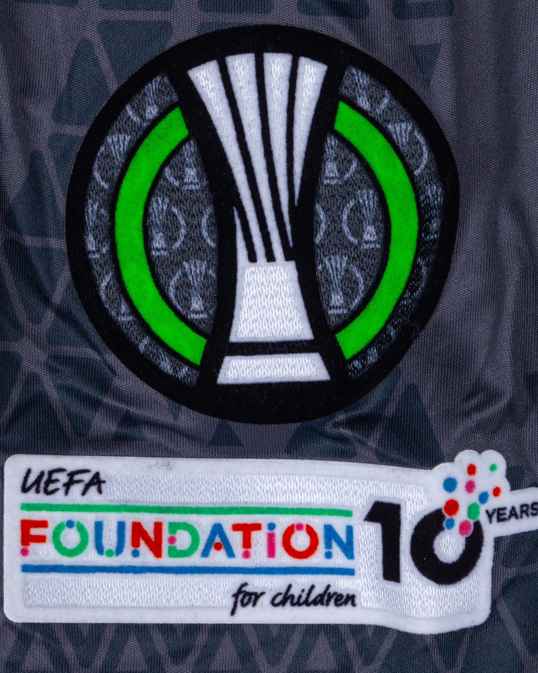 Dean Henderson grey No.1 Crystal Palace v. AEK Larnaca match worn short-sleeved shirt, UEFA Conference League 2025, Macron, with crew-neck collar and printed badge, the reverse lettered HENDERSON, the right sleeve with UEFA flash