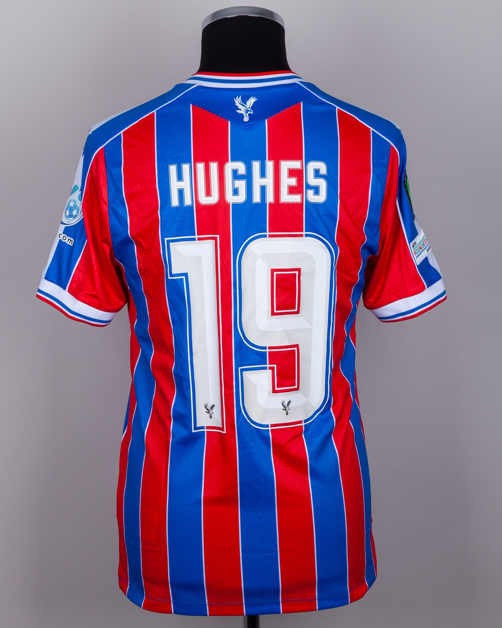Will Hughes red and blue No.19 Crystal Palace v. AEK Larnaca match worn shirt
