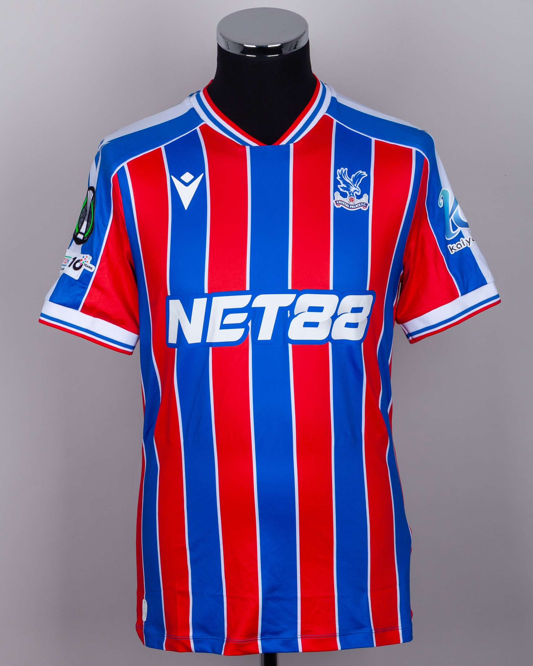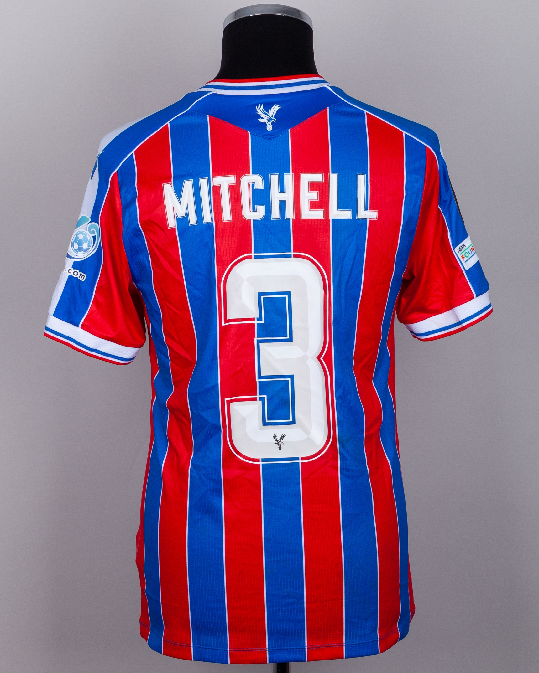 Tyrick Mitchell red and blue No.3 Crystal Palace v. AEK Larnaca match worn shirt