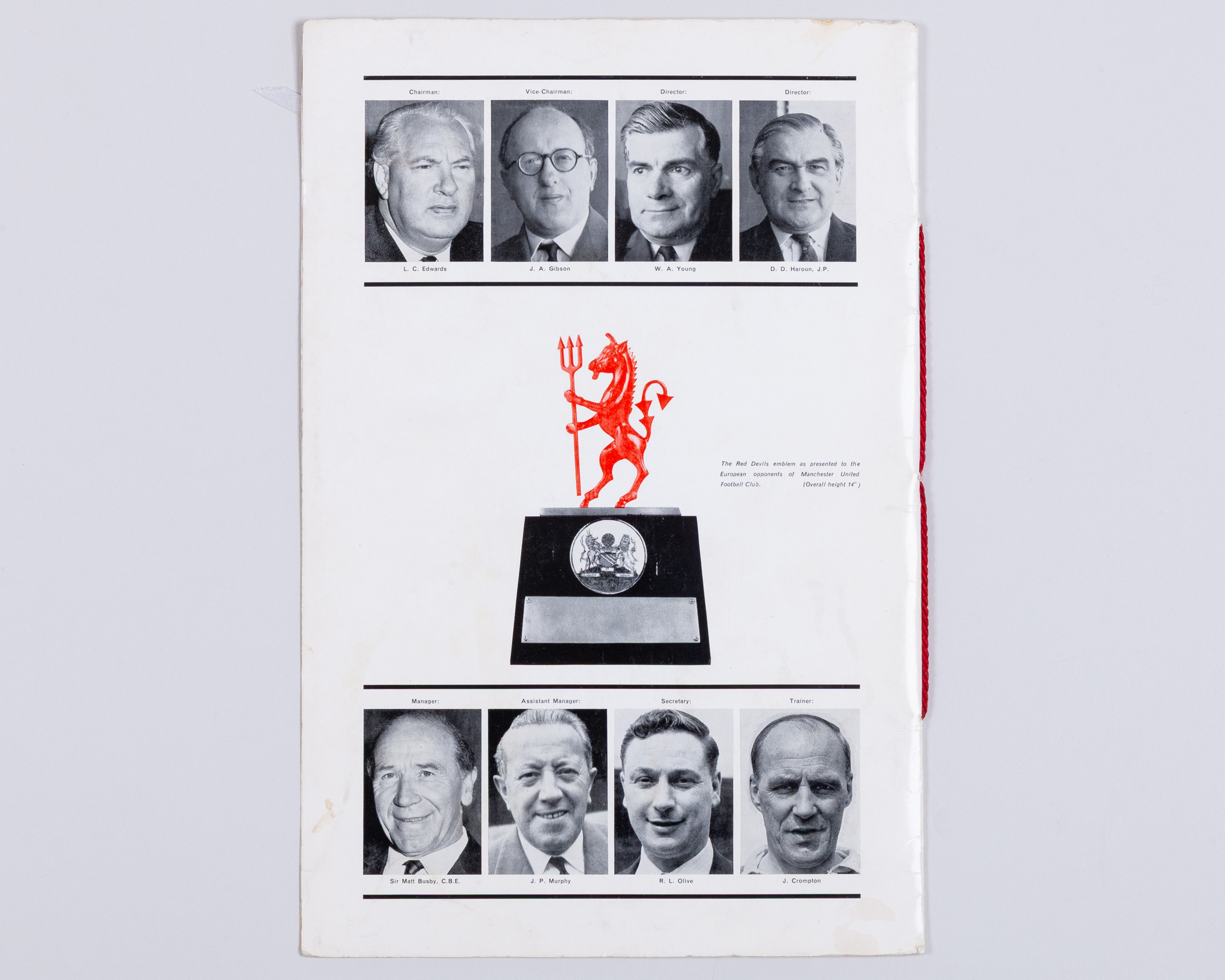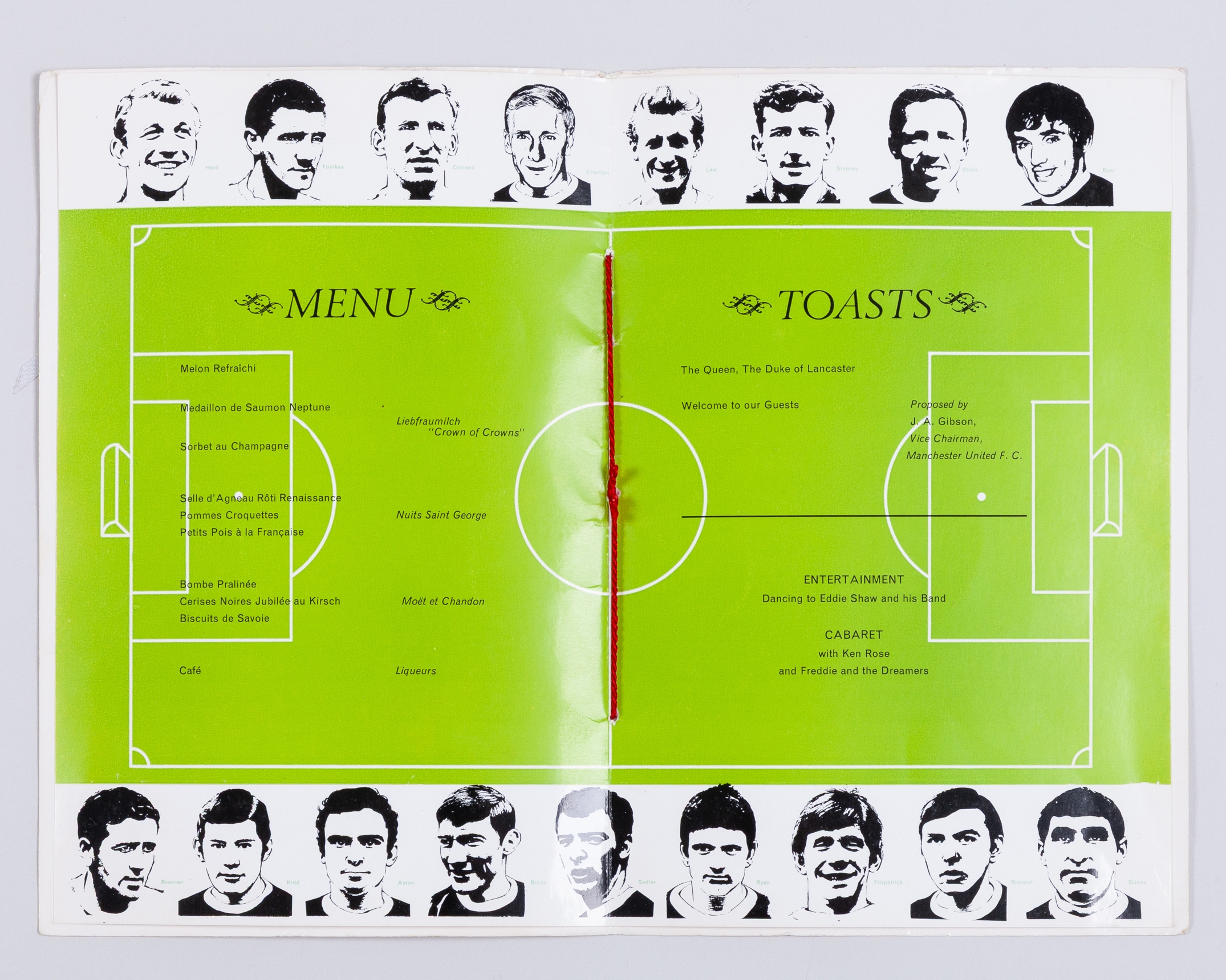 An autographed Manchester United 1968 European Cup Final celebration banquet menu
