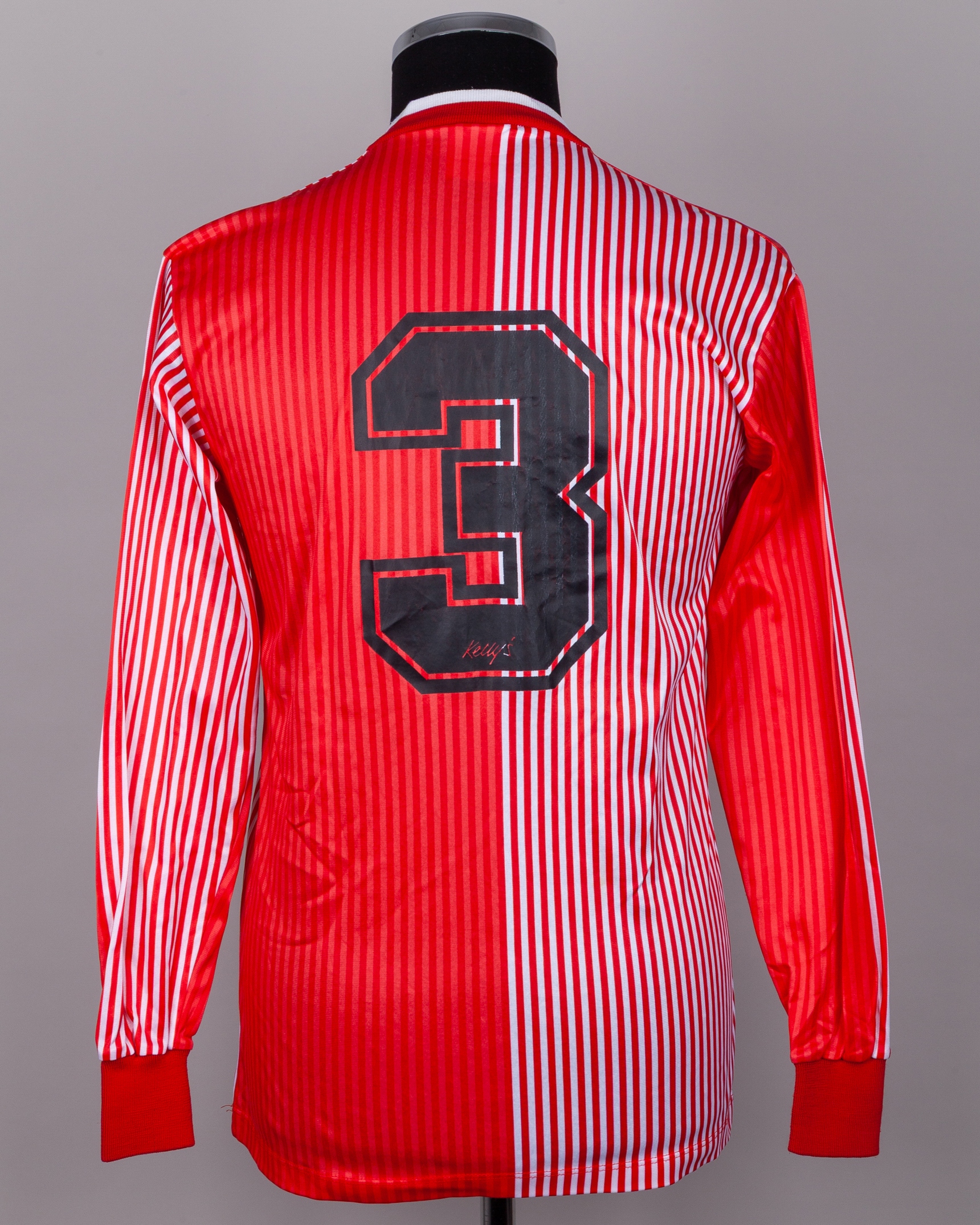 Red and white No.3 Manchester United Ladies long-sleeved shirt, c.1980s