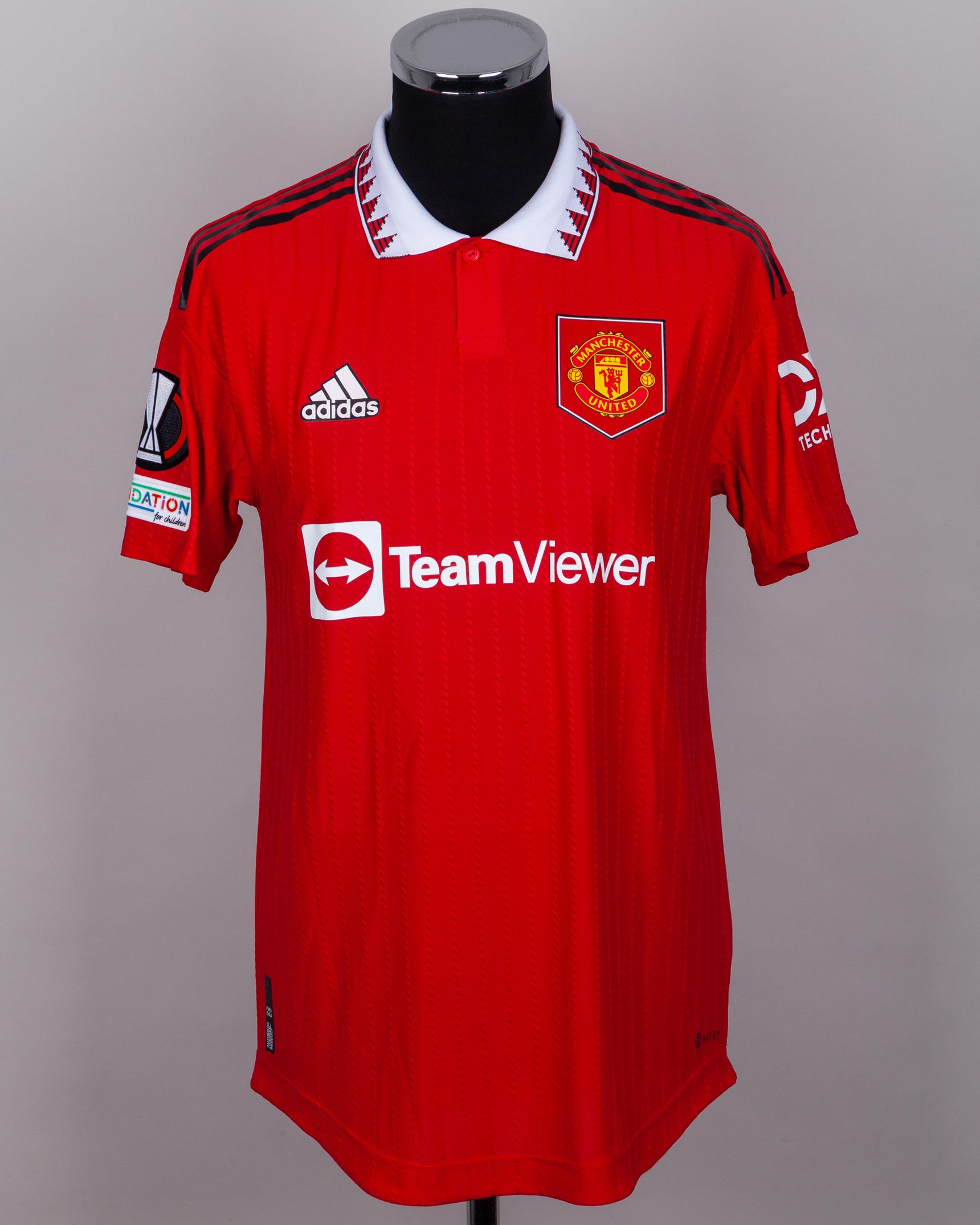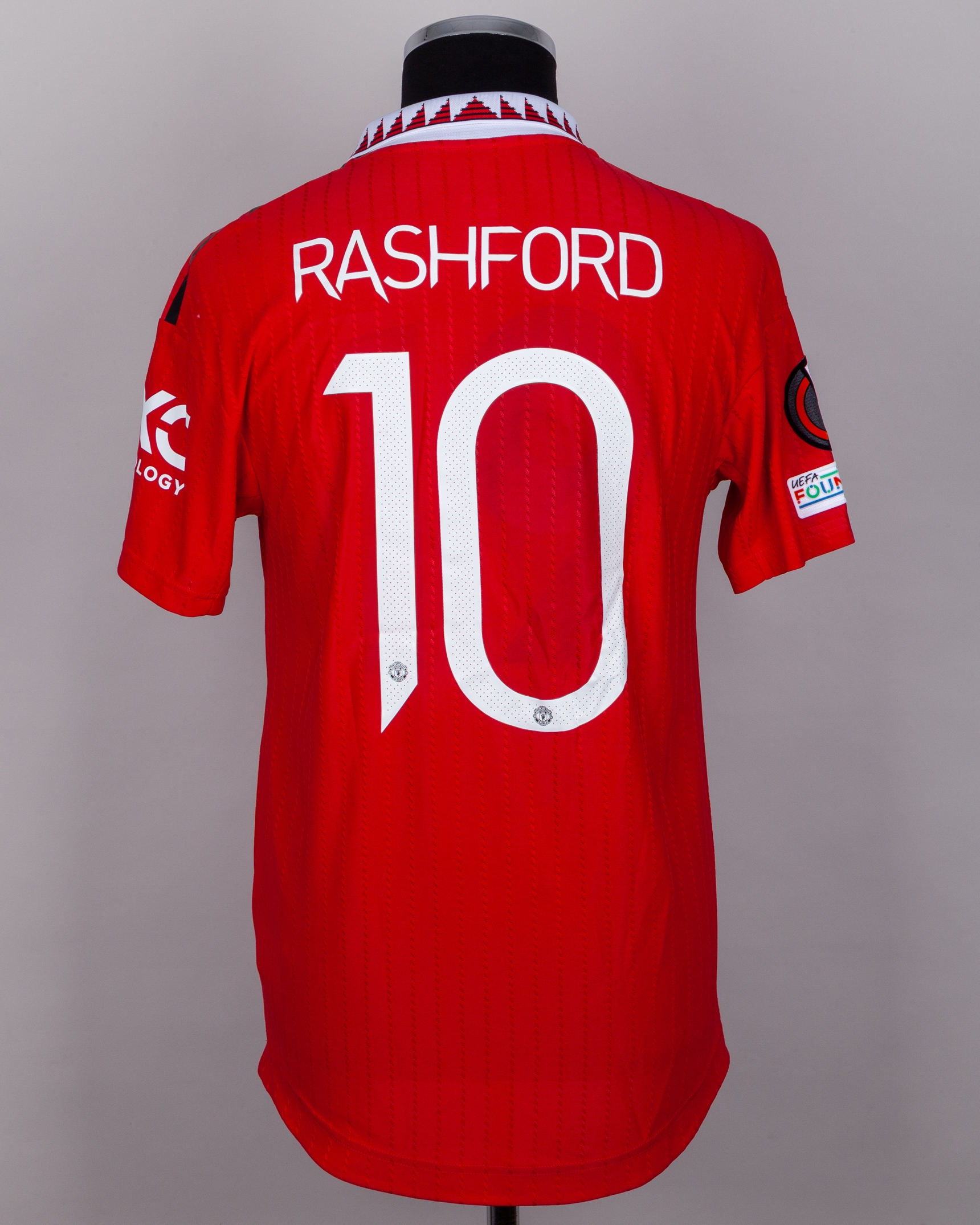Marcus Rashford red and white No.10 Manchester United Europa League shirt, 2022-23