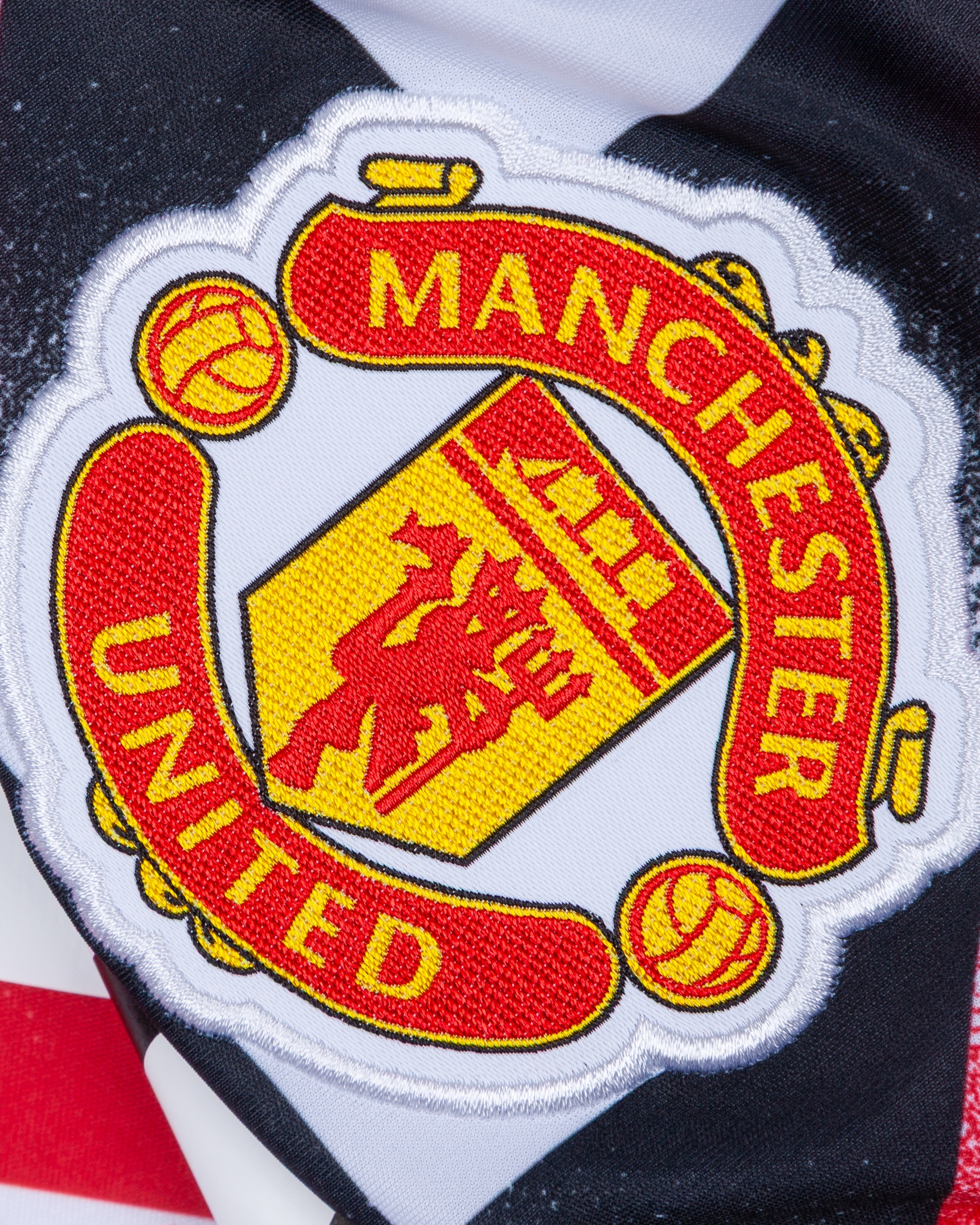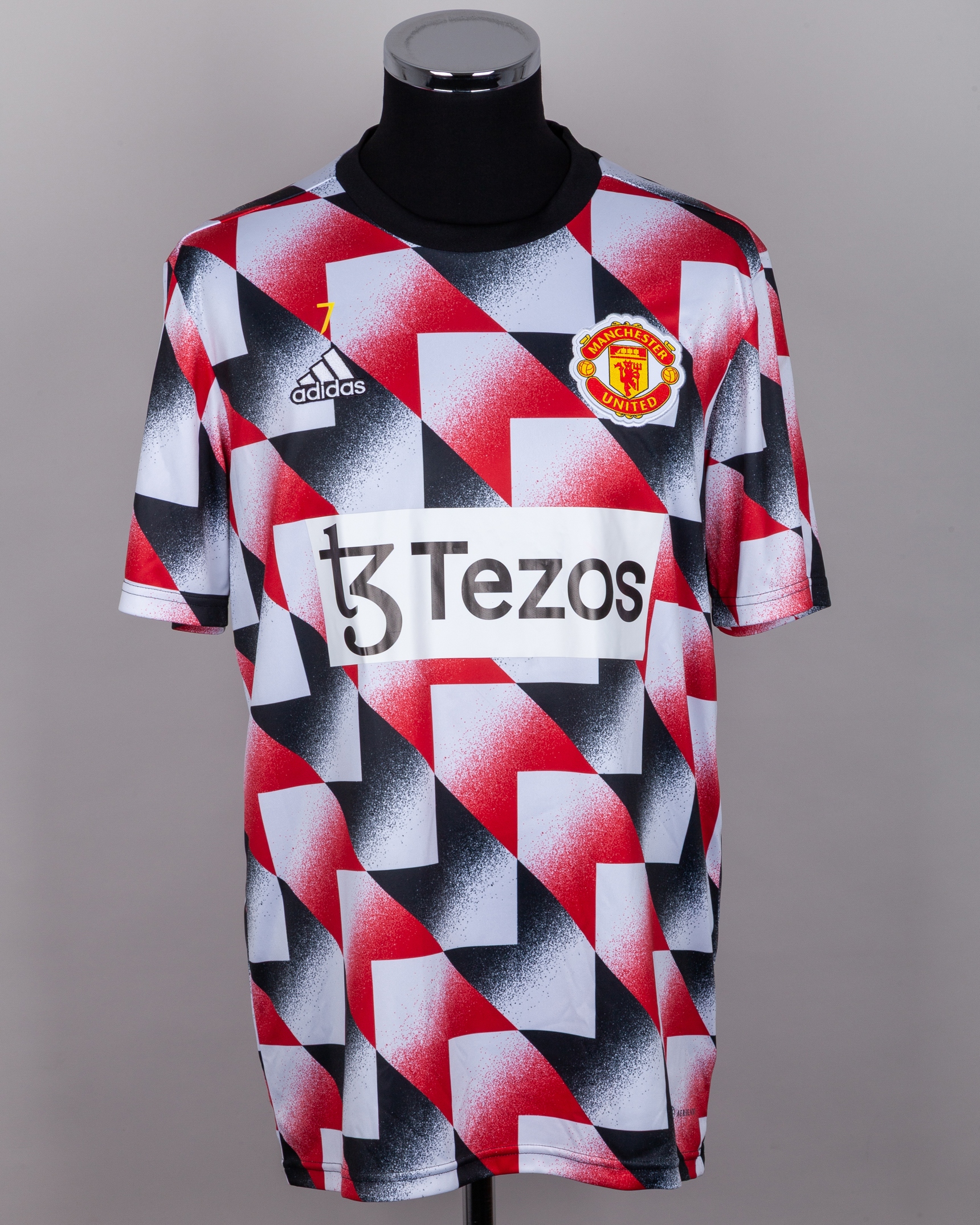 Cristian Ronaldo red, black and white Manchester United training top, Adidas, L, with crew-neck collar and embroidered cloth badge, 7 decal,