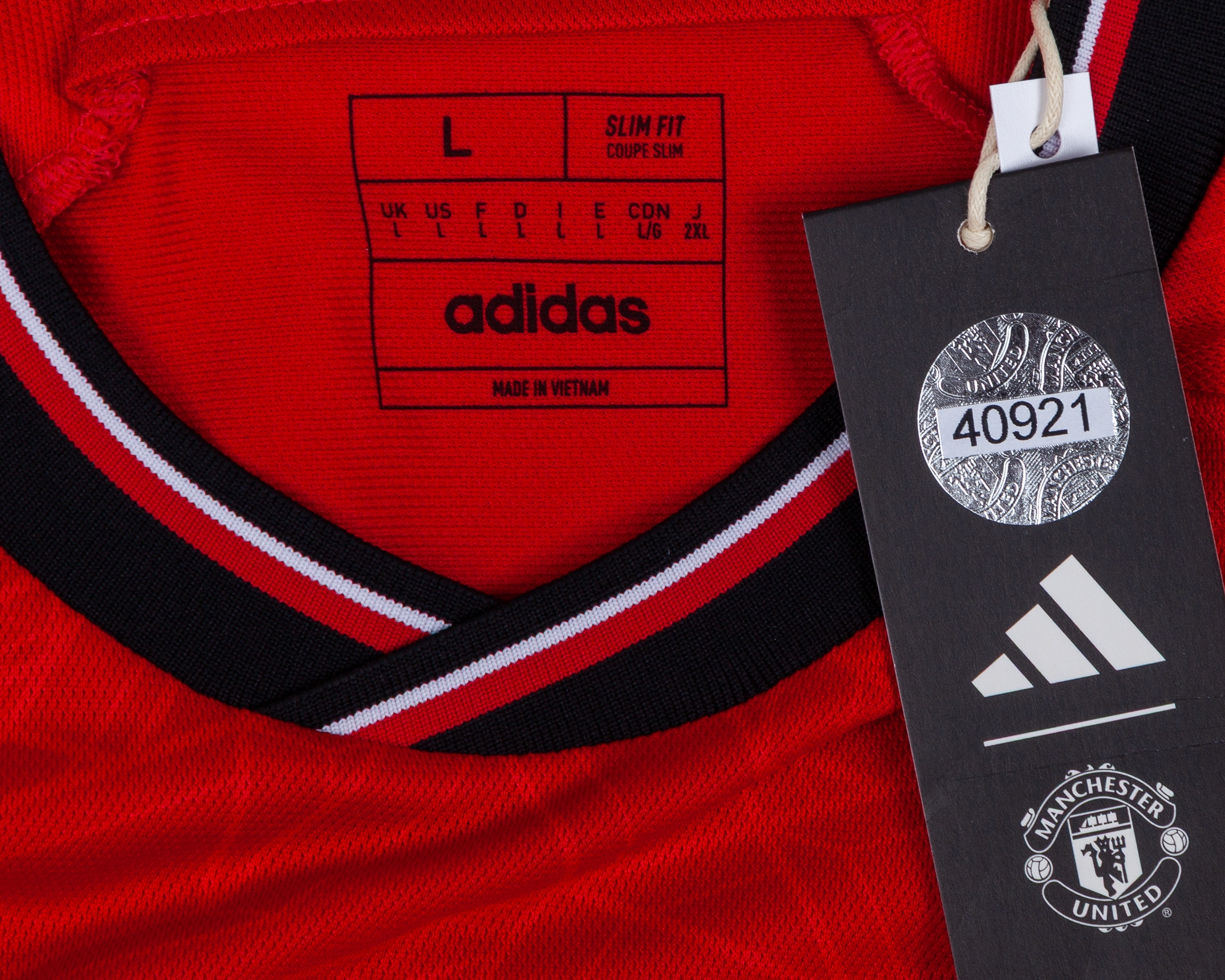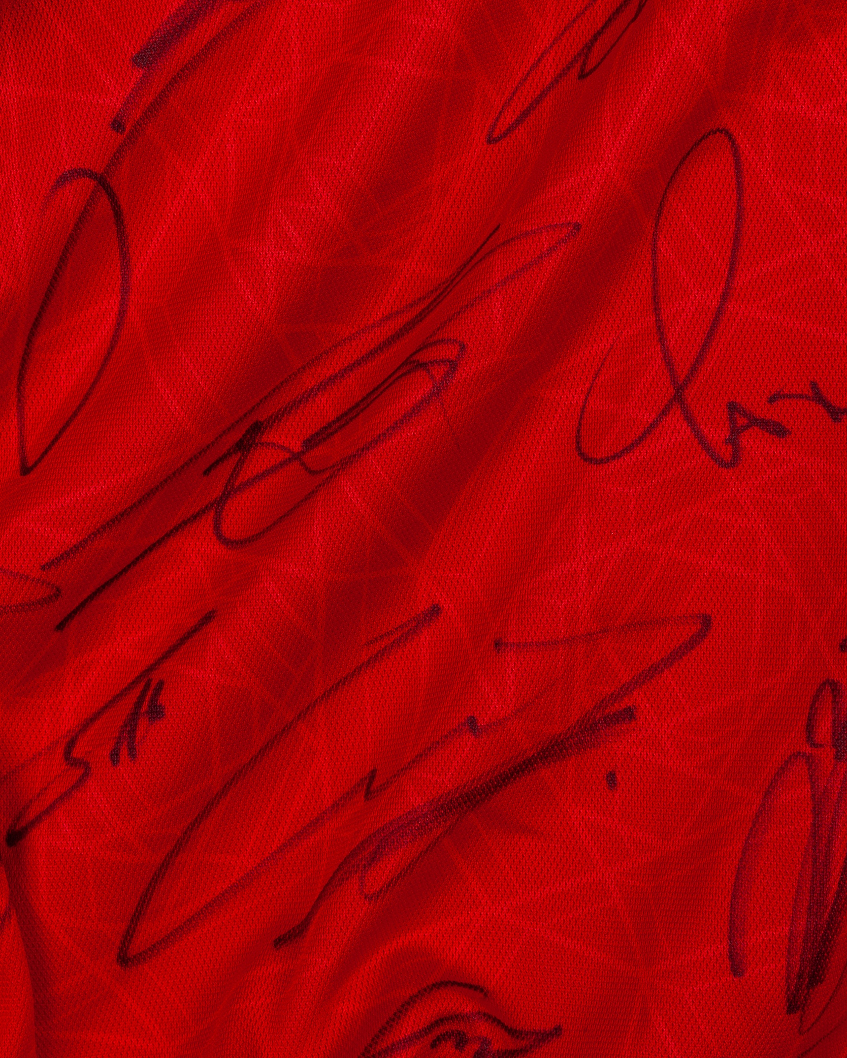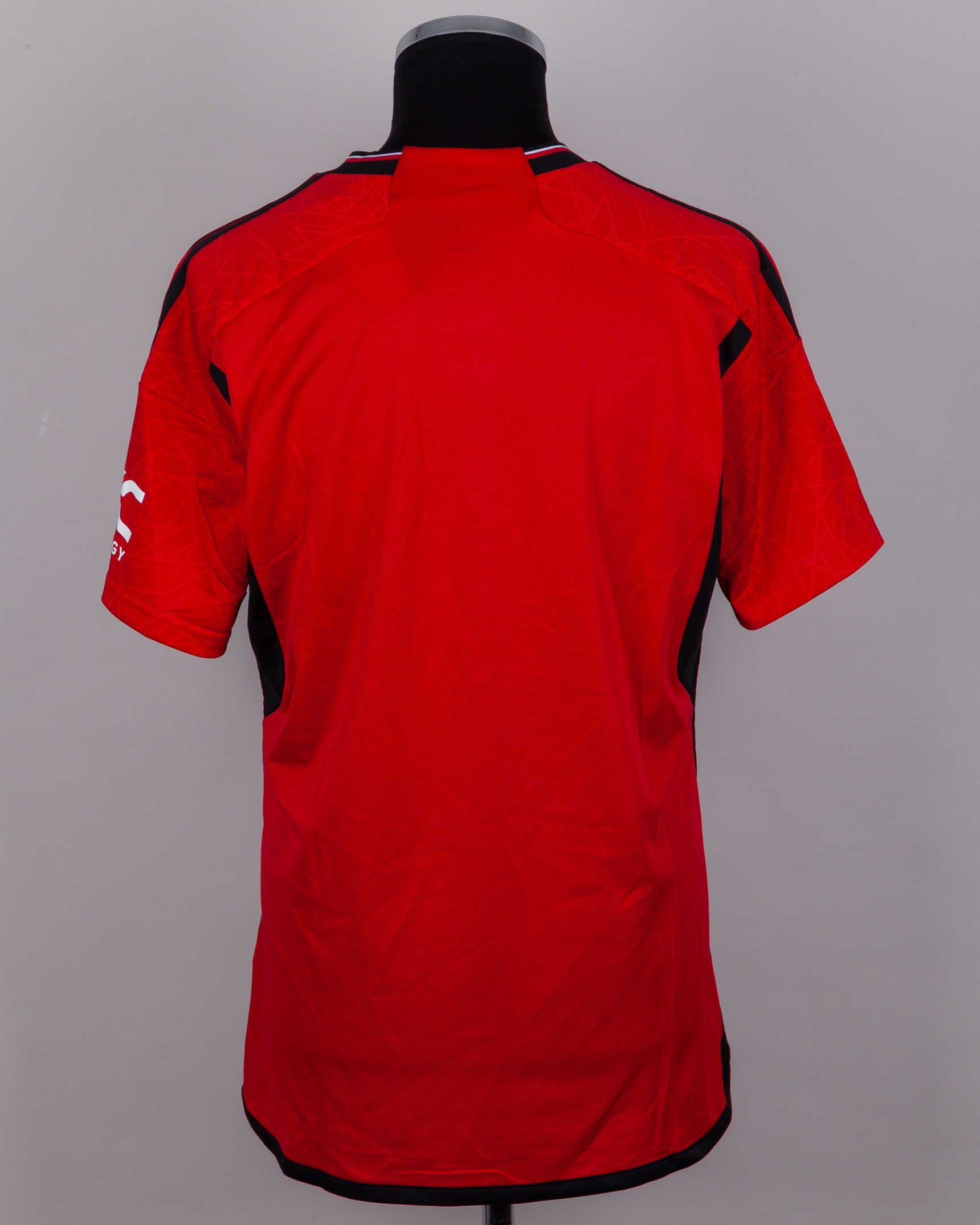 Red and black Manchester United autographed replica short-sleeved shirt, 2023-24
