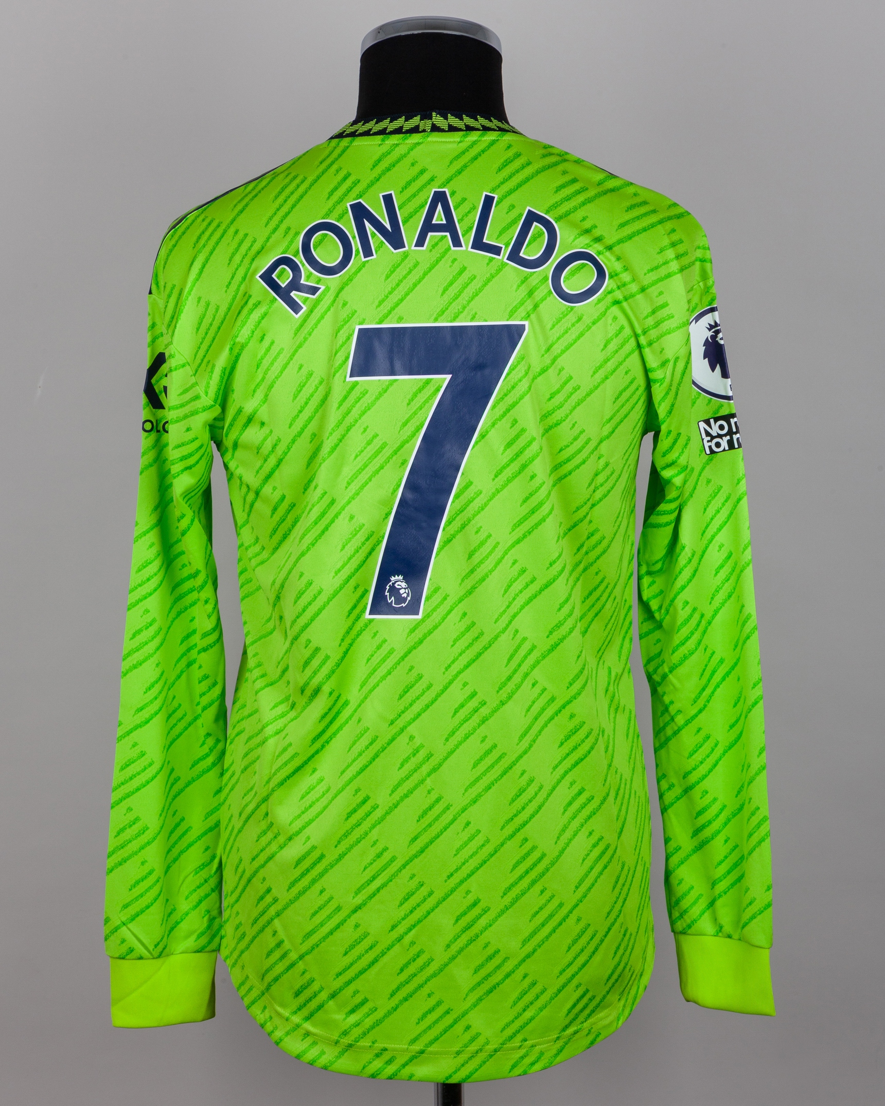 Cristiano Ronaldo green No.7 Manchester United v. Brentford long-sleeved shirt, 2022