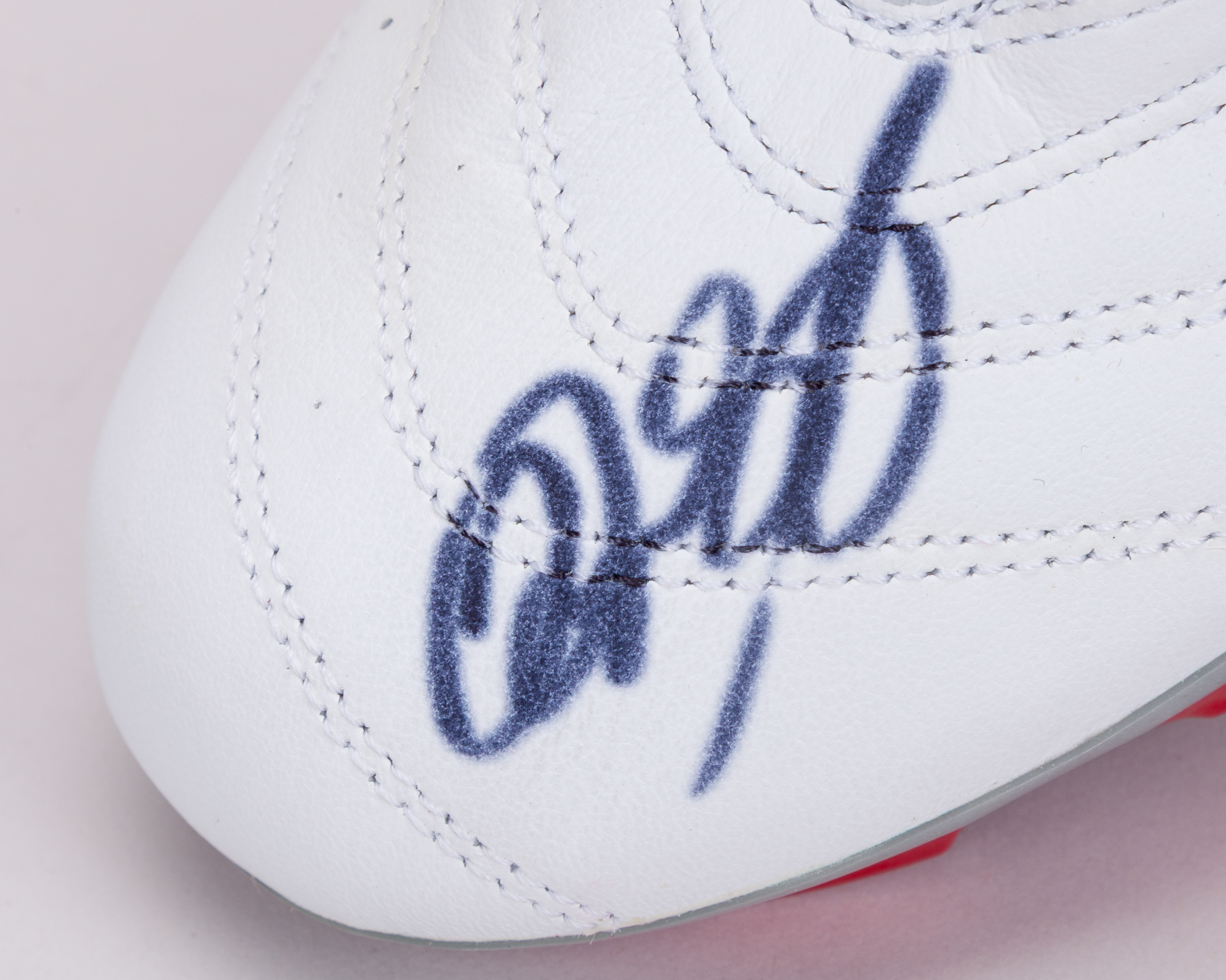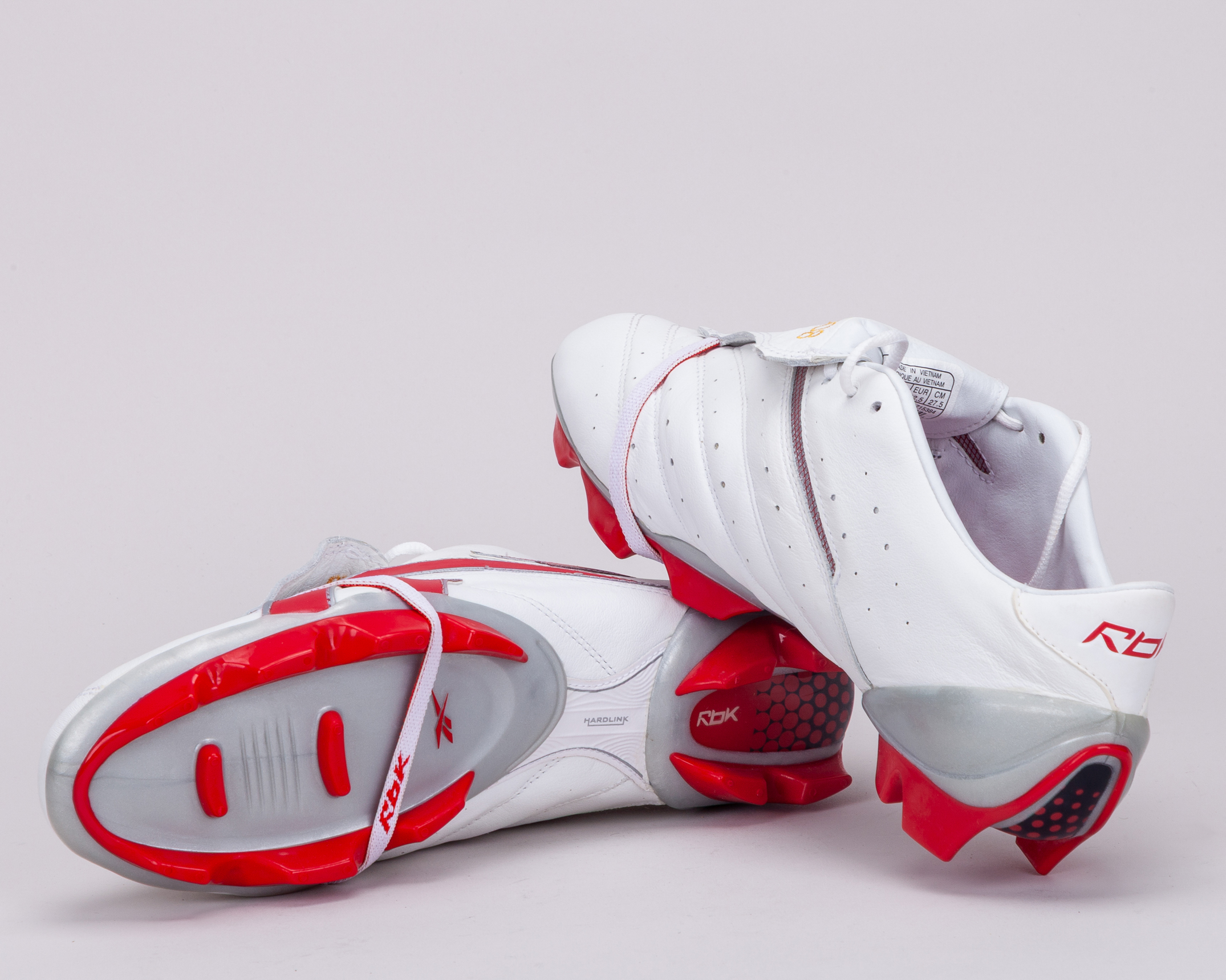 Ryan Giggs a pair of white and red Reebok 759 Sprintfit autographed football boots