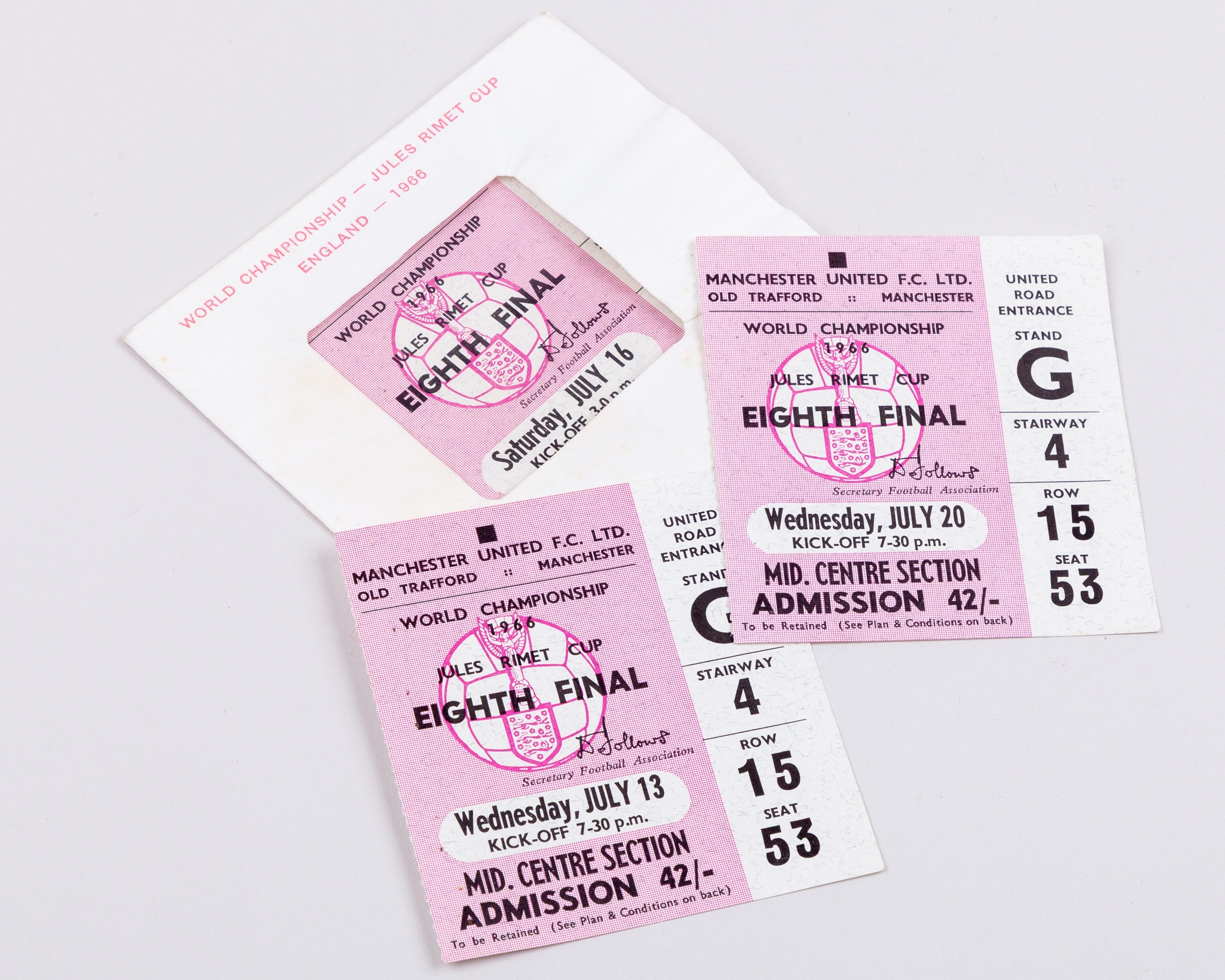 Three Old Trafford 1966 World Cup tickets